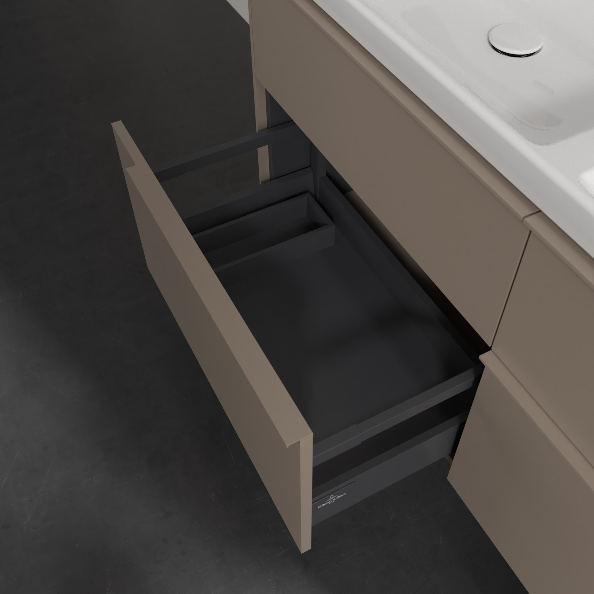 Subway 3.0 Waschbeckenunterschrank, mit Beleuchtung, 4 Auszüge, 1272x576x462mm, Korpus: Taupe, Front: Taupe