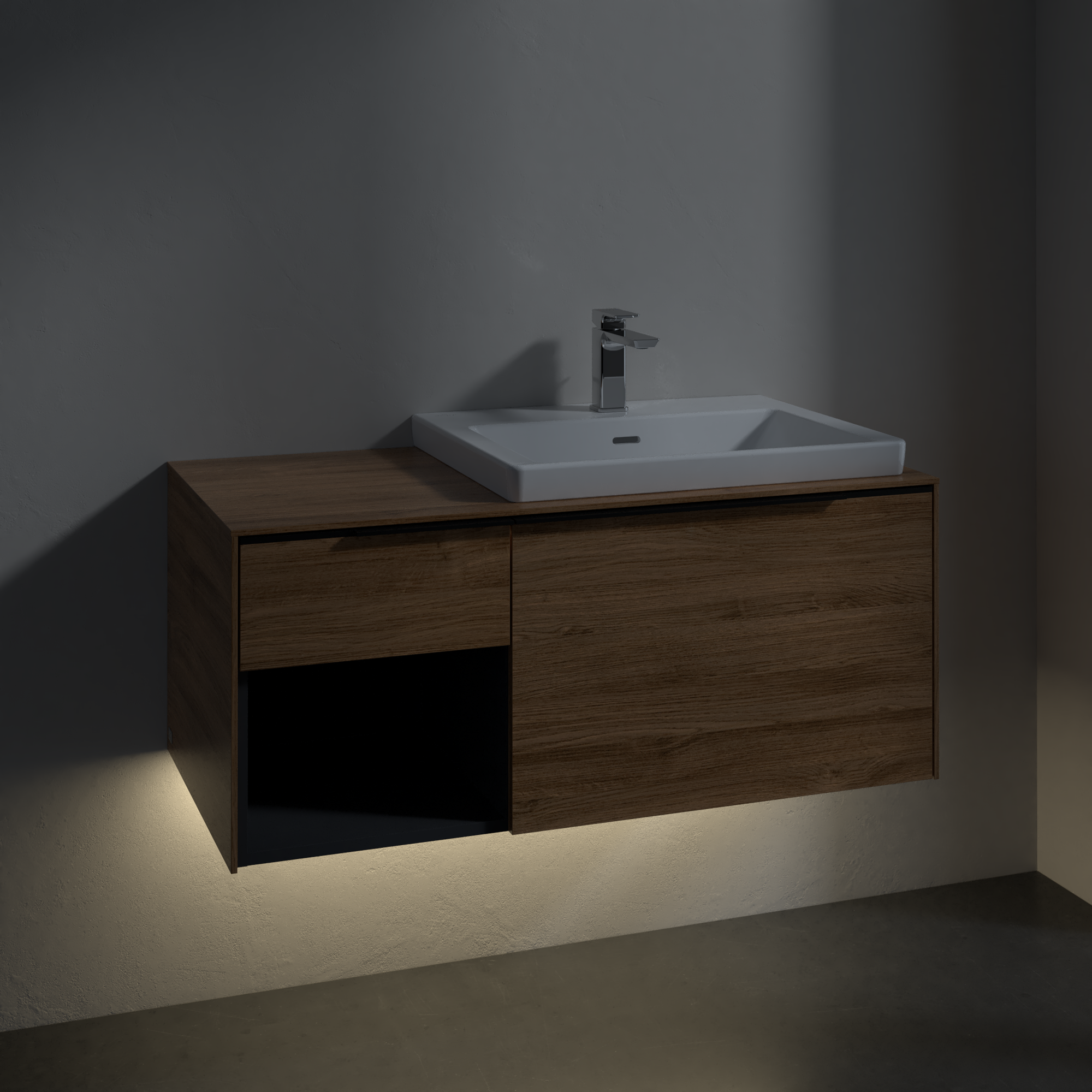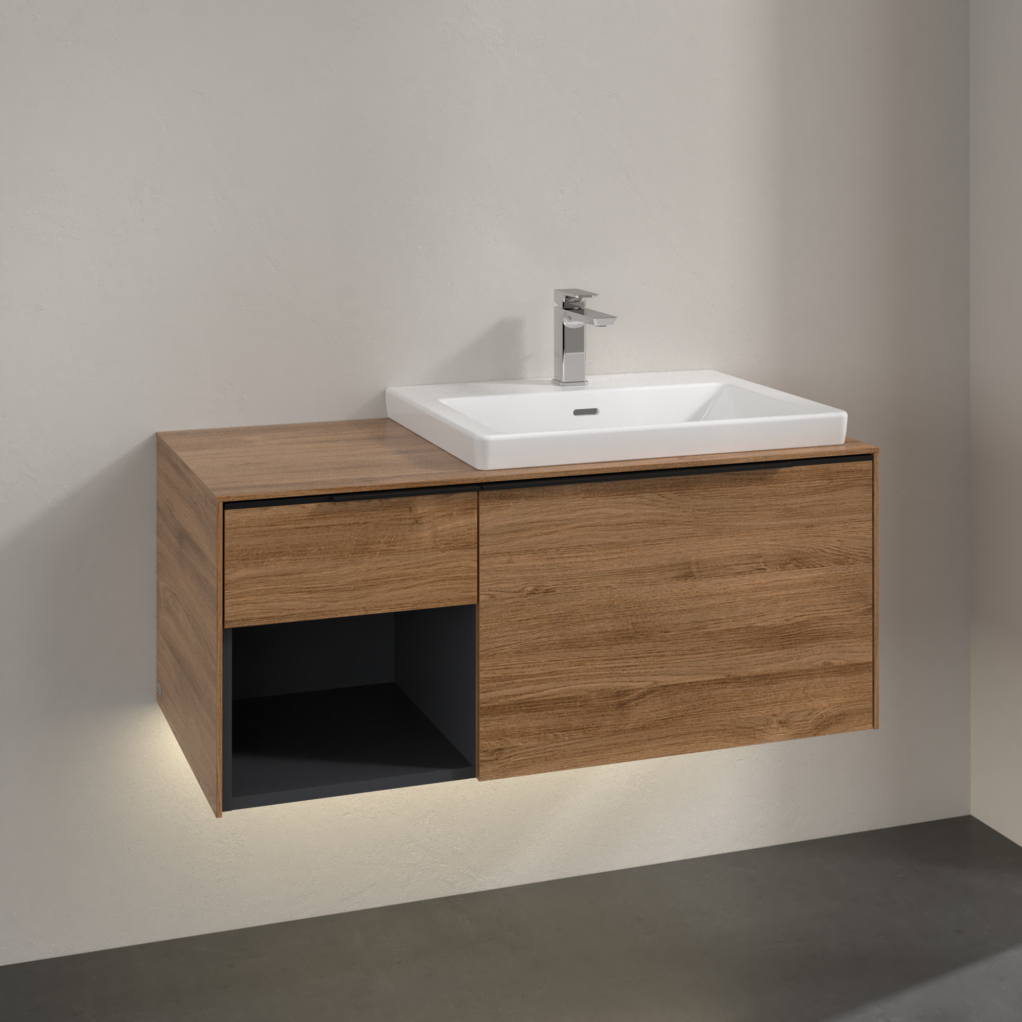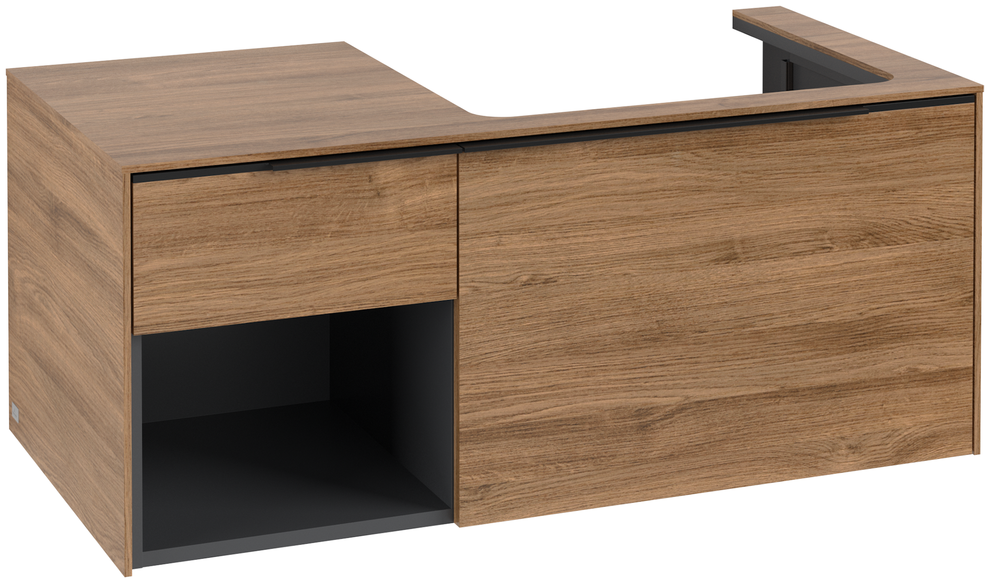 Subway 3.0 Waschbeckenunterschrank, mit Beleuchtung, 2 Auszüge, 1001x423x500mm, Korpus: Kansas Oak, Front: Kansas Oak