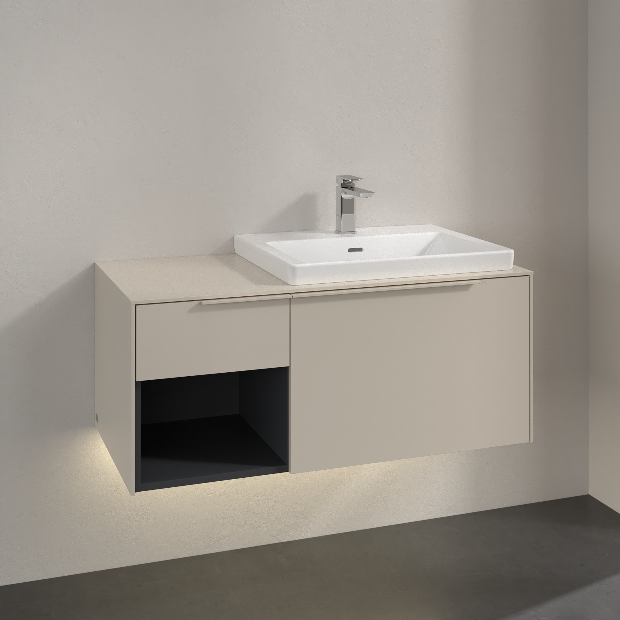 Subway 3.0 Waschbeckenunterschrank, mit Beleuchtung, 2 Auszüge, 1001x423x500mm, Korpus: Cashmere Grey, Front: Cashmere Grey