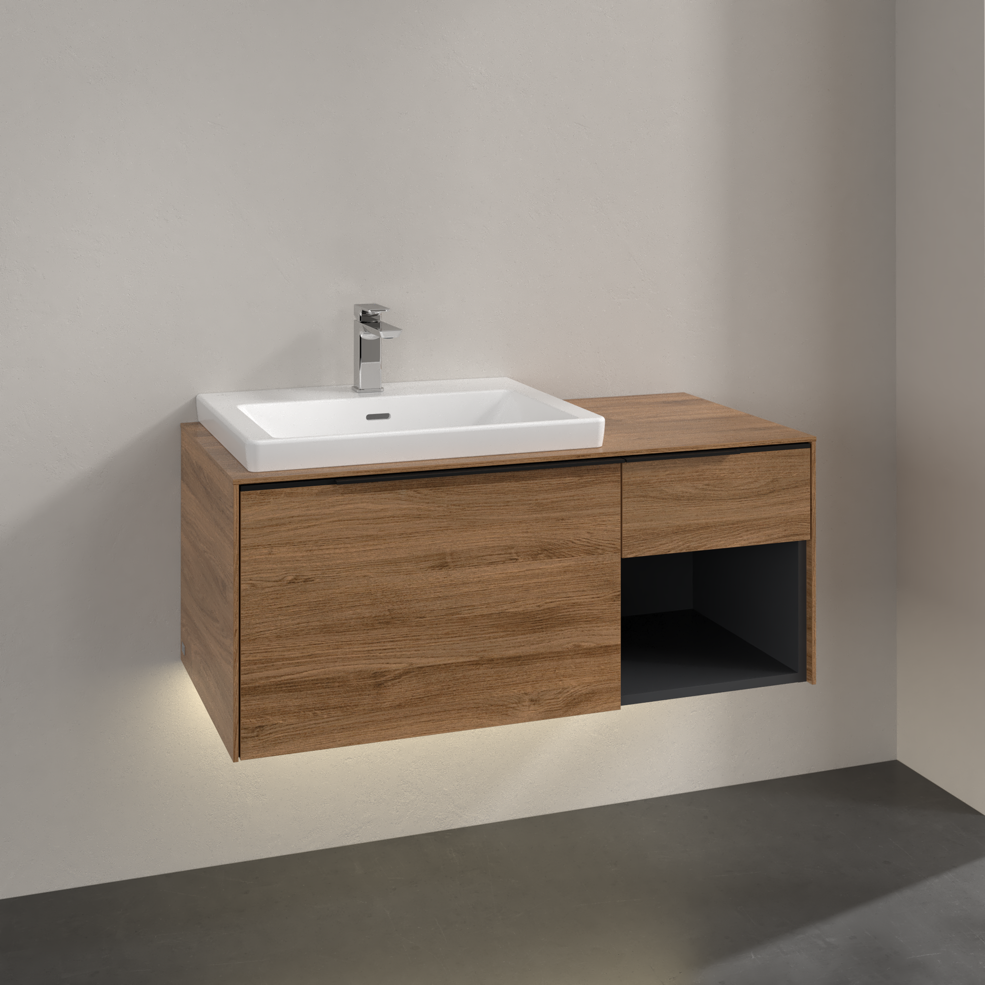 Subway 3.0 Waschbeckenunterschrank, mit Beleuchtung, 2 Auszüge, 1001x423x500mm, Korpus: Kansas Oak, Front: Kansas Oak