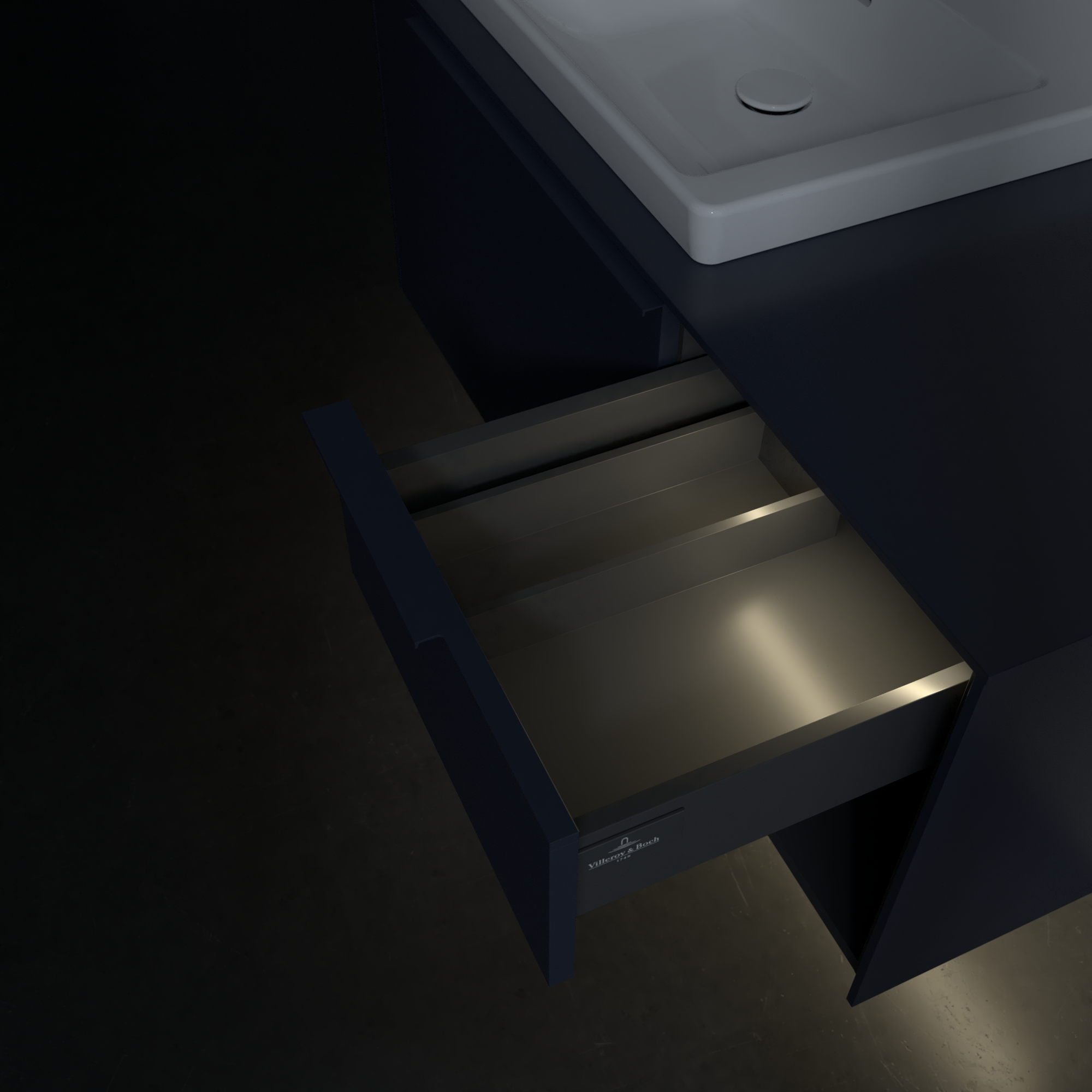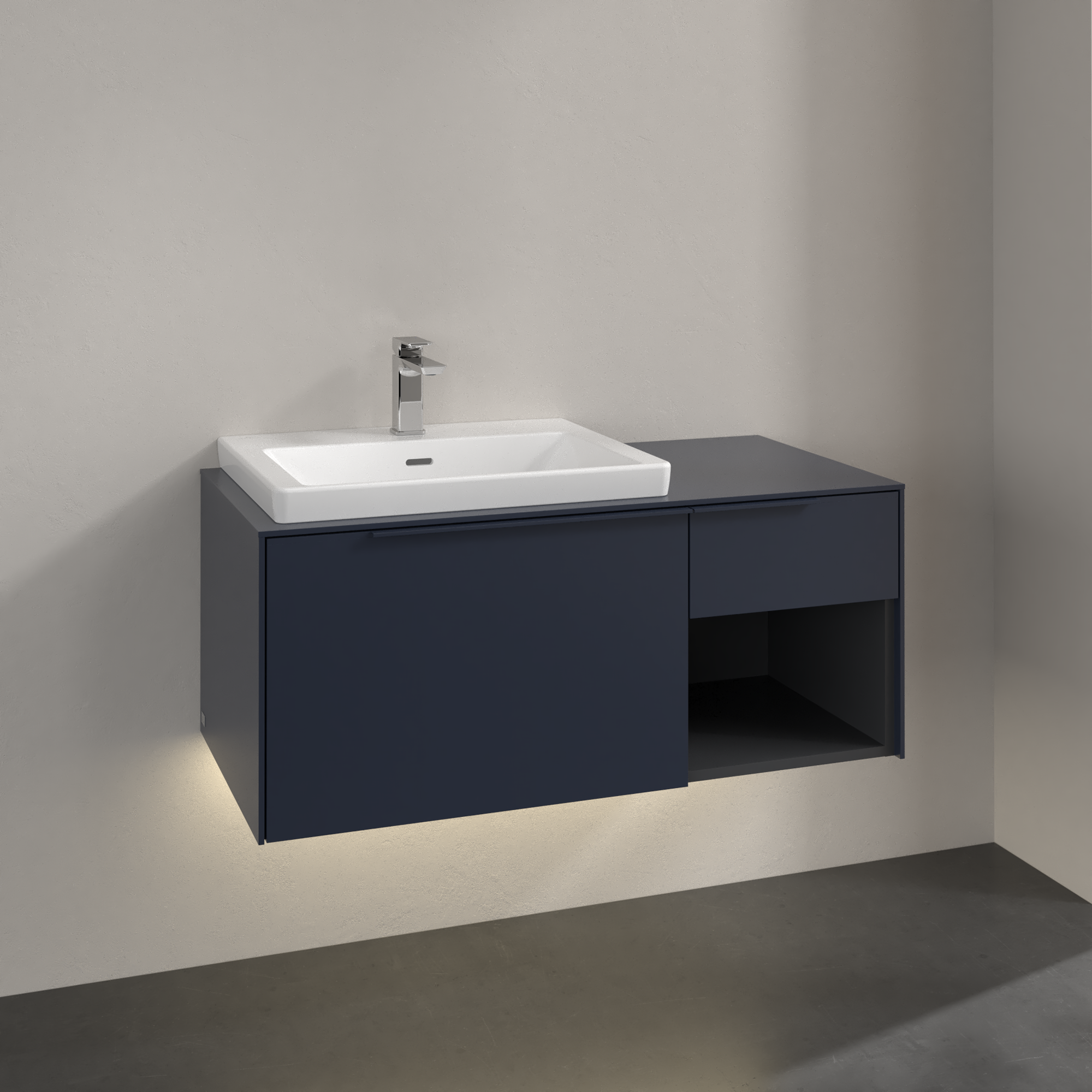 Subway 3.0 Waschbeckenunterschrank, mit Beleuchtung, 2 Auszüge, 1001x423x500mm, Korpus: Marine Blue, Front: Marine Blue