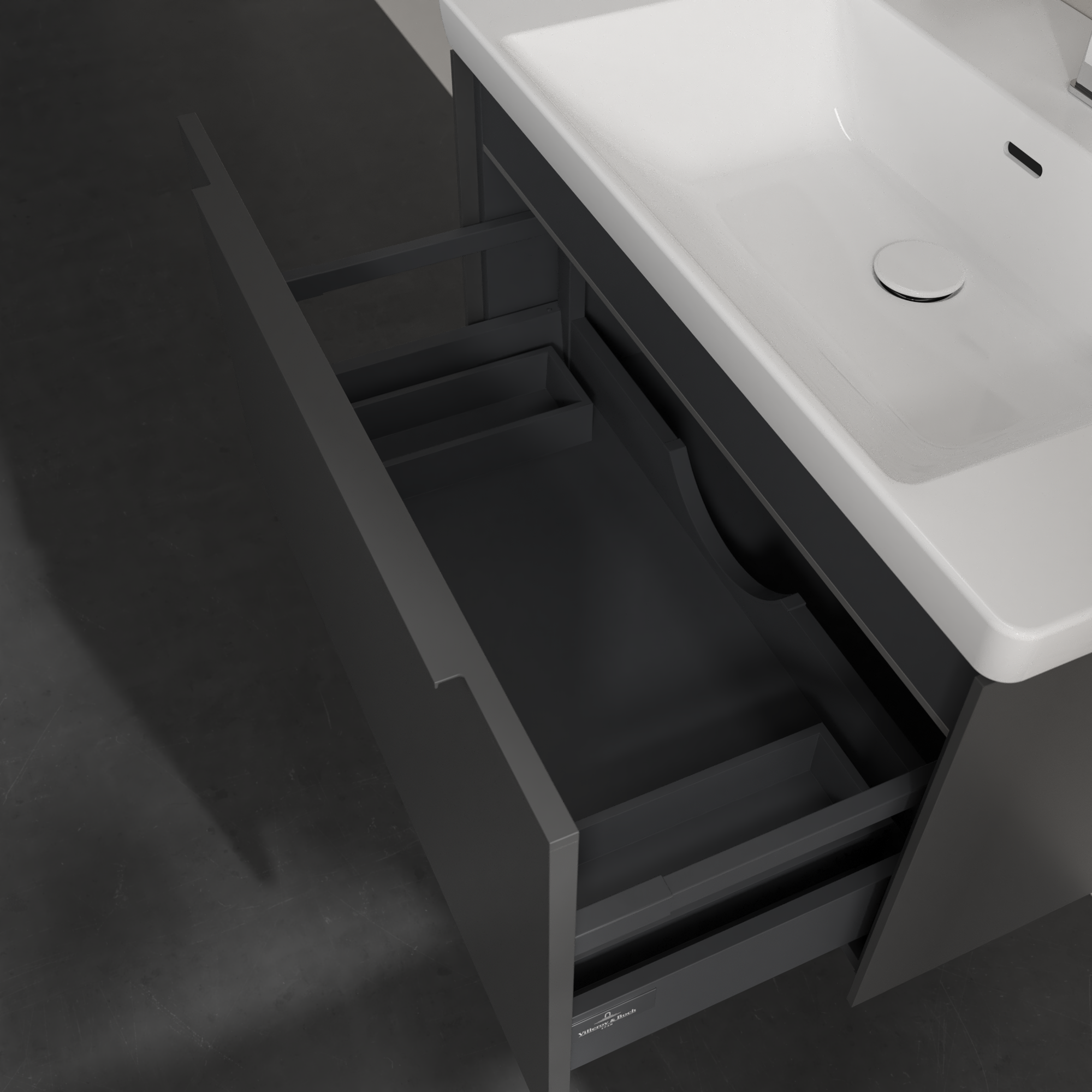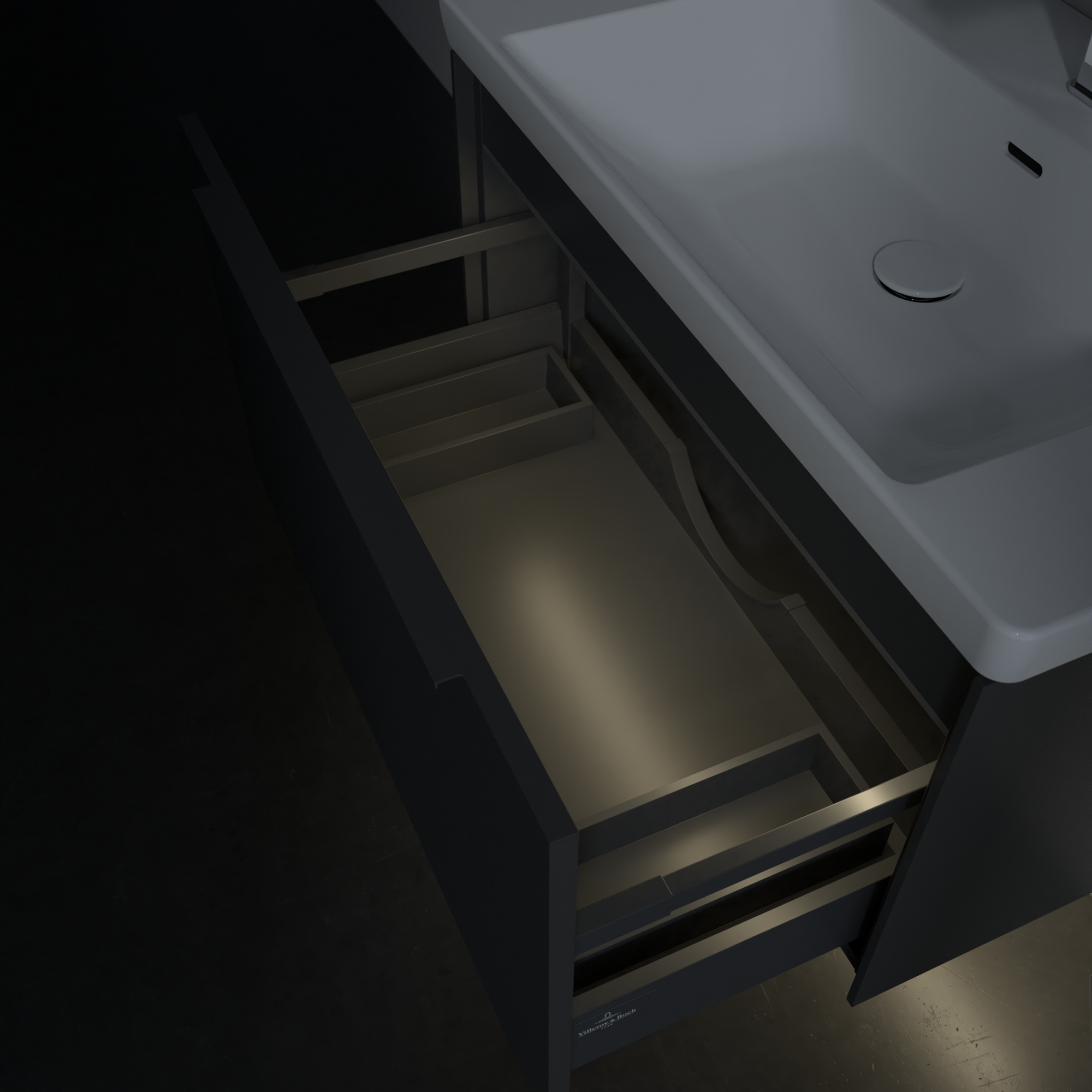 Subway 3.0 Waschbeckenunterschrank, mit Beleuchtung, 1 Auszug, 772x429x462mm, Korpus: Graphite, Front: Graphite
