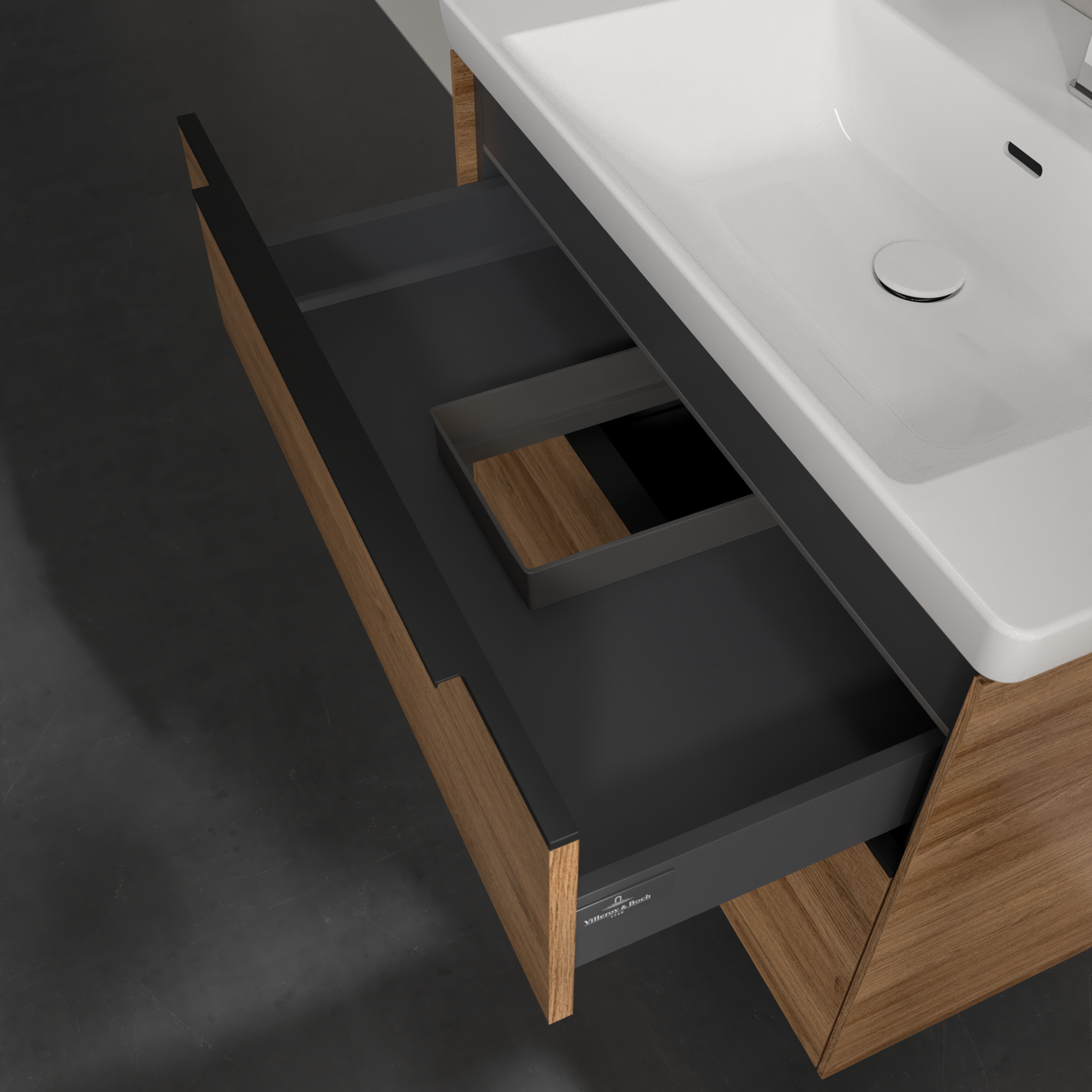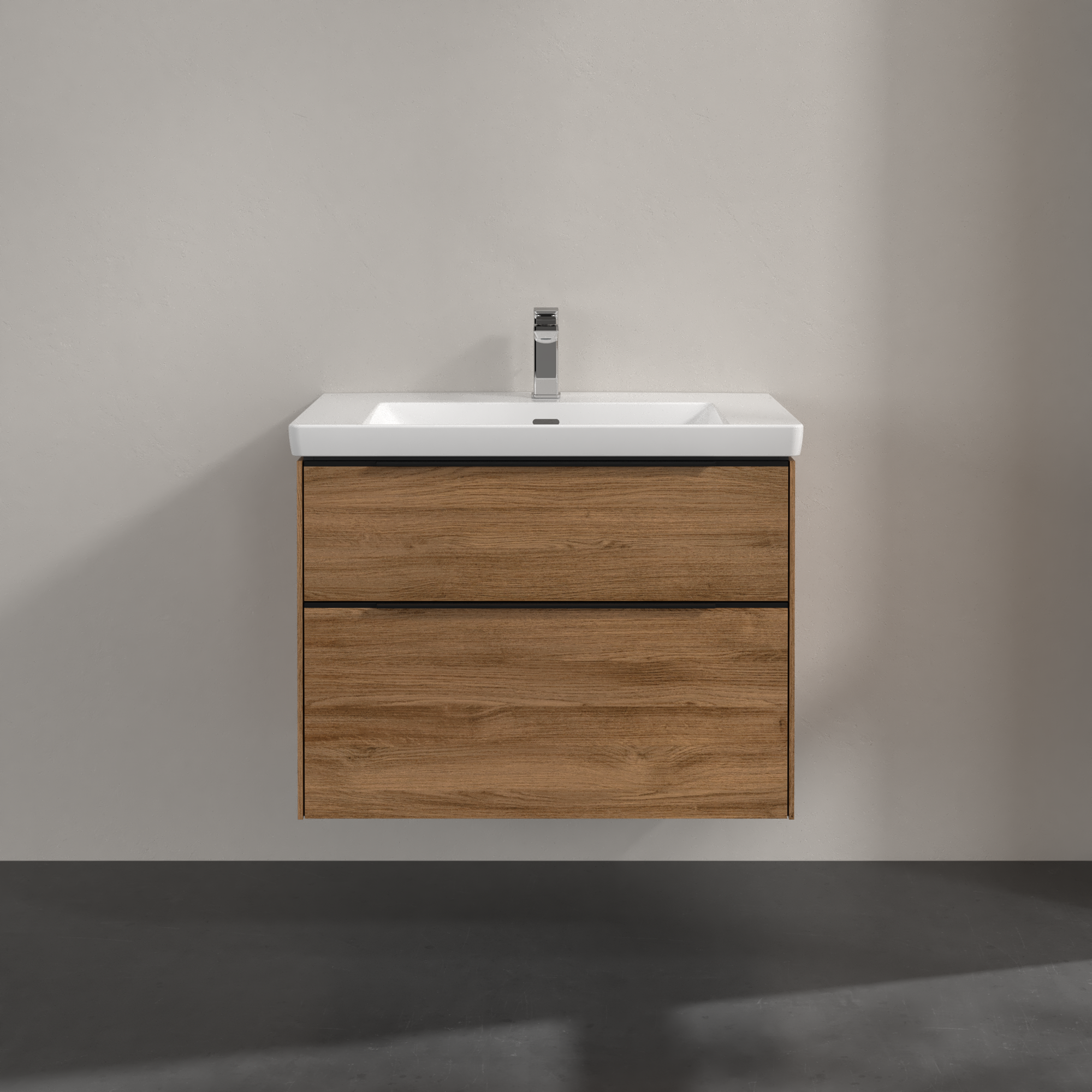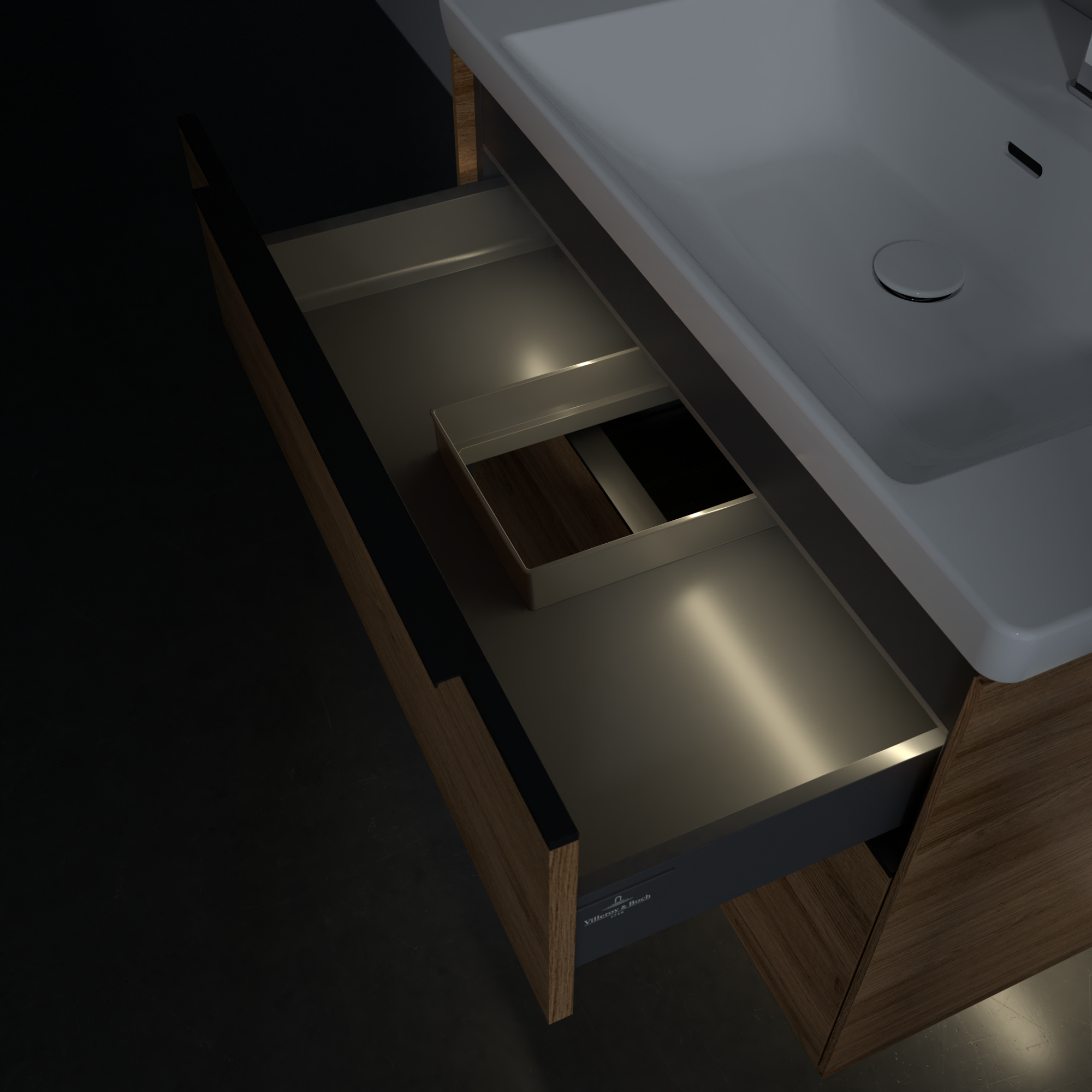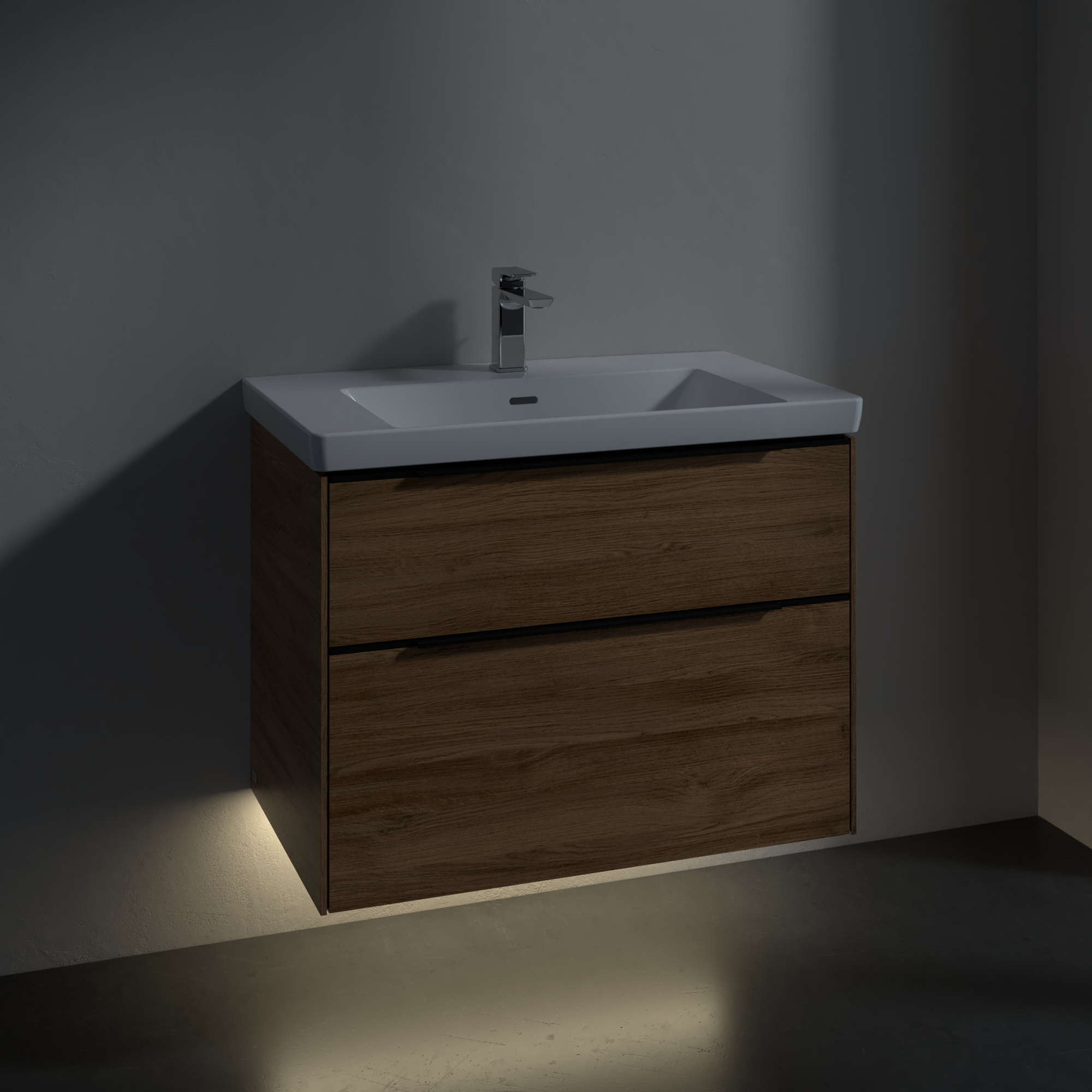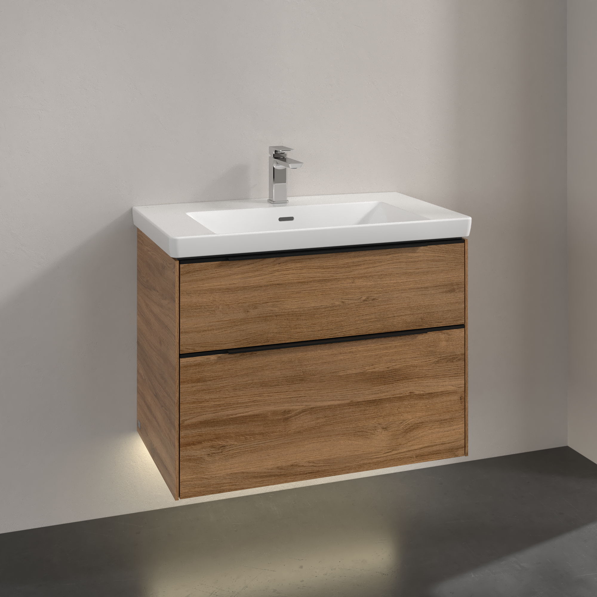 Subway 3.0 Waschbeckenunterschrank, mit Beleuchtung, 2 Auszüge, 772x576x462mm, Korpus: Kansas Oak, Front: Kansas Oak