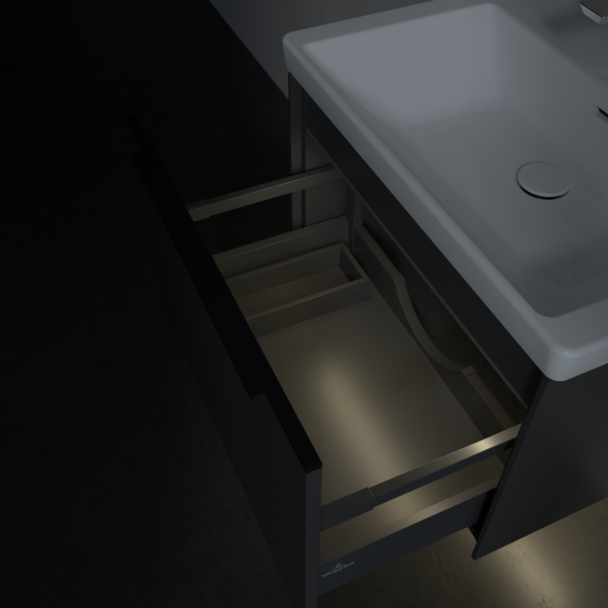 Subway 3.0 Waschbeckenunterschrank, mit Beleuchtung, 1 Auszug, 622x429x462mm, Korpus: Graphite, Front: Graphite