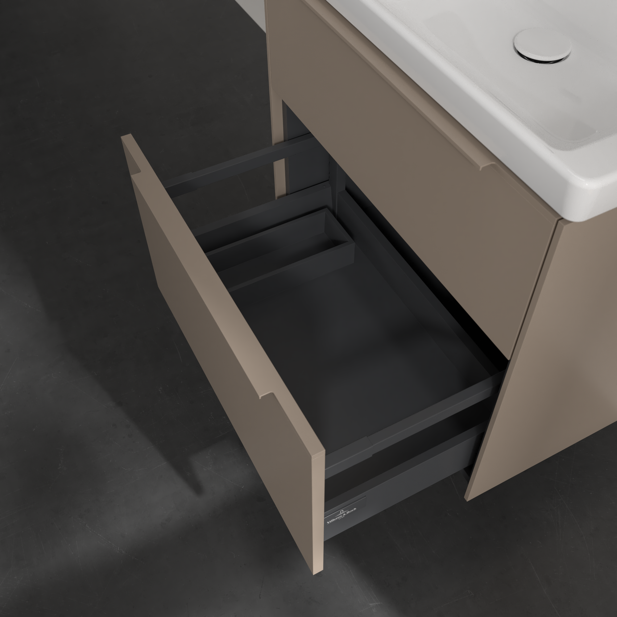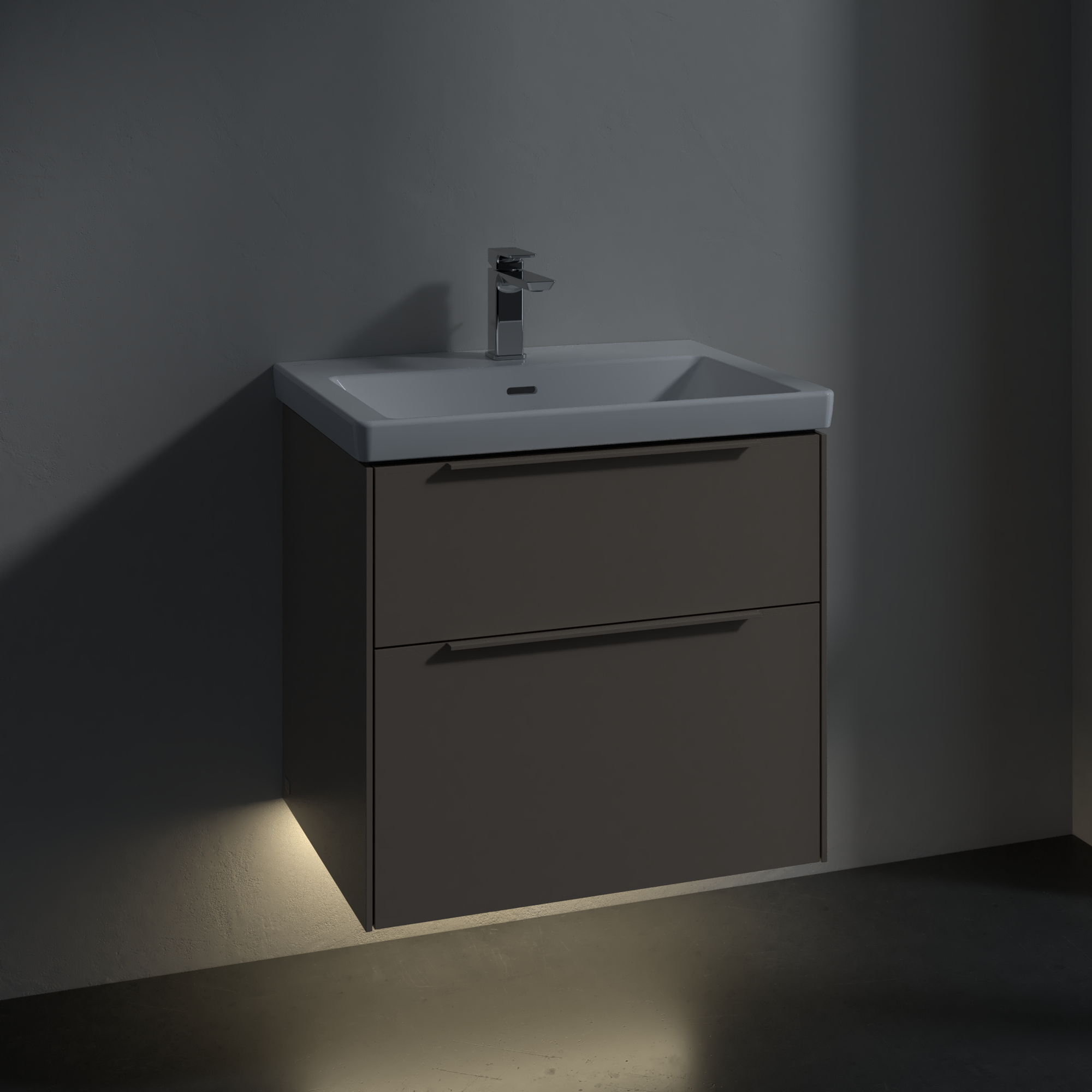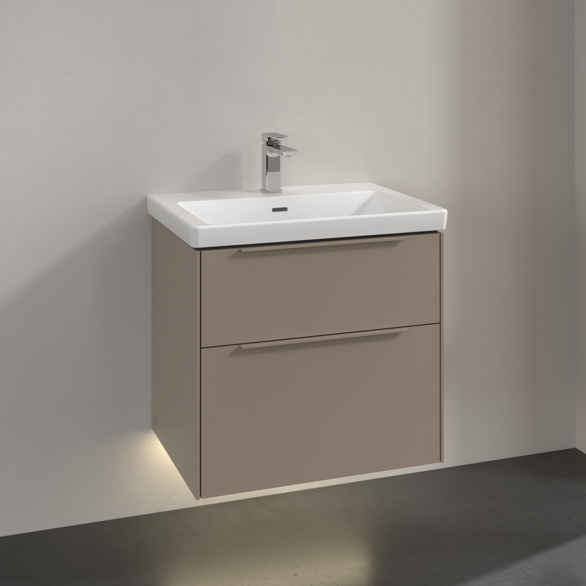 Subway 3.0 Waschbeckenunterschrank, mit Beleuchtung, 2 Auszüge, 622x576x462mm, Korpus: Taupe, Front: Taupe