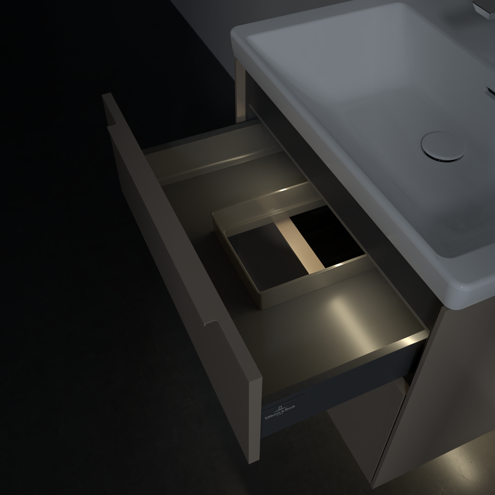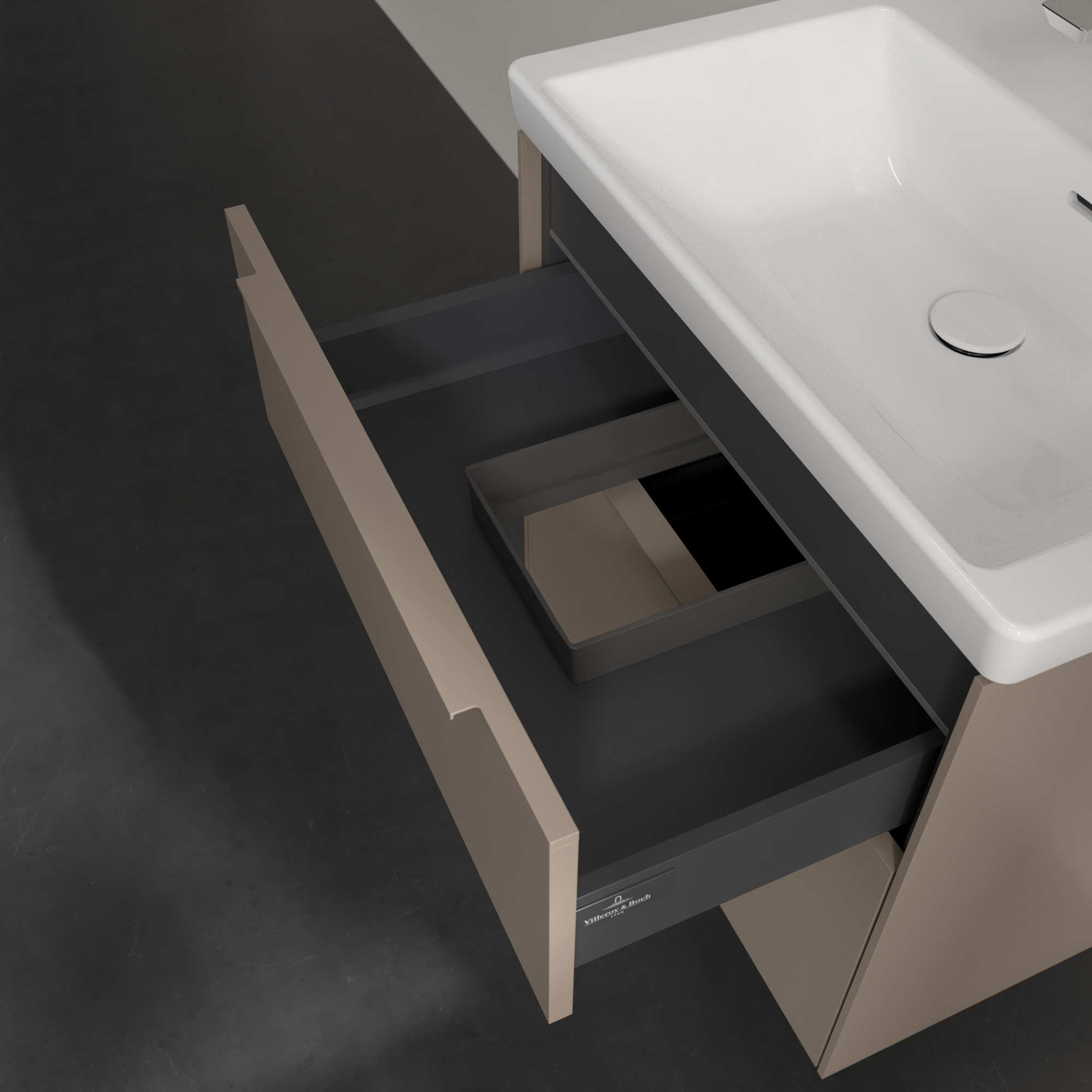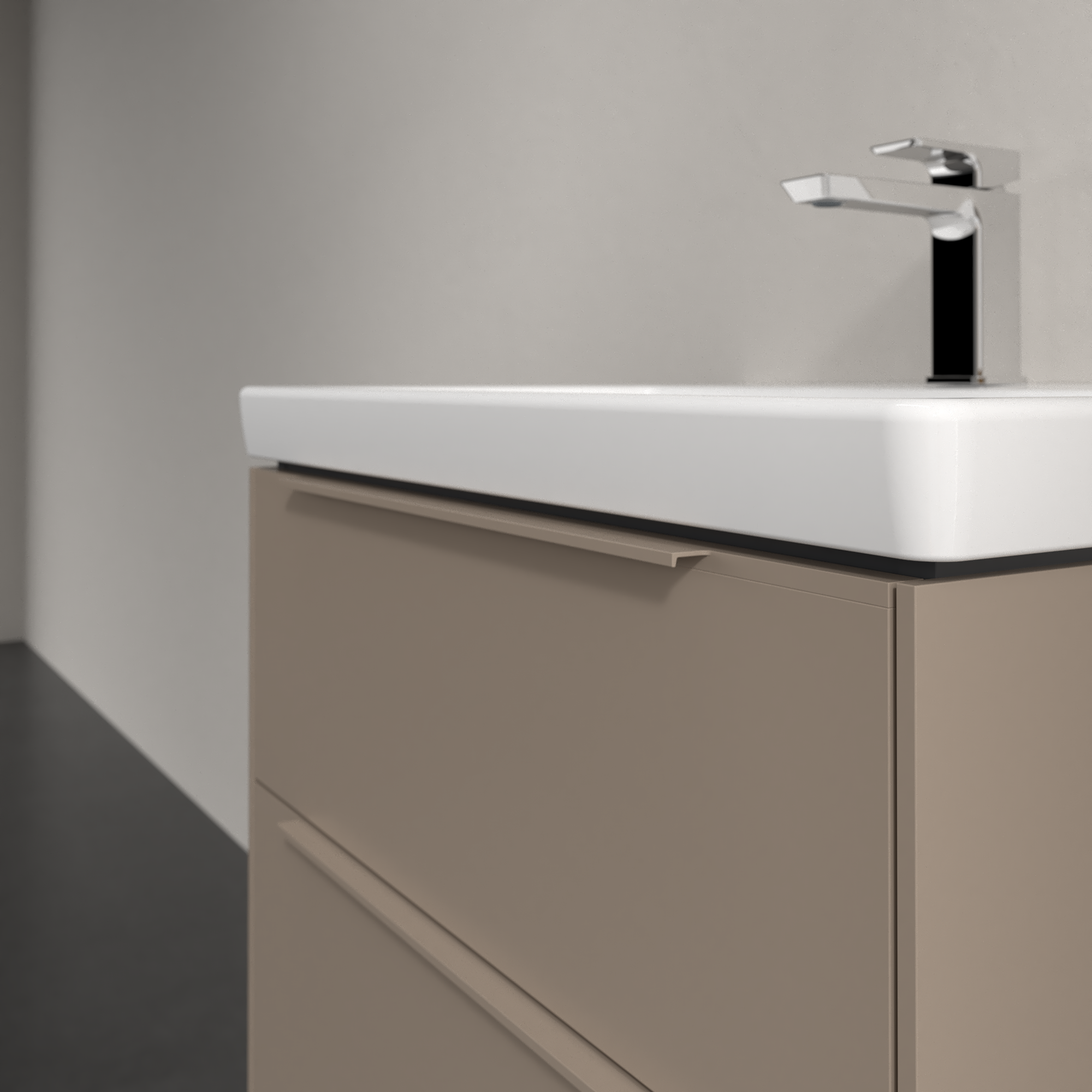 Subway 3.0 Waschbeckenunterschrank, mit Beleuchtung, 2 Auszüge, 622x576x462mm, Korpus: Taupe, Front: Taupe