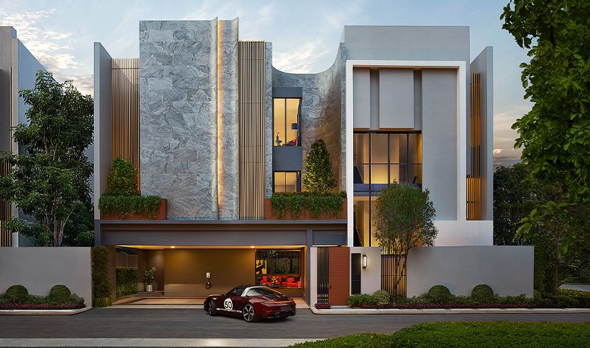 Für das Haus- und Villenprojekt BuGaan Krungthep Kreetha zeichnet sich das Bangkoker Unternehmen Sansiri, das als Thailands führender Projektentwickler für hochwertige Wohnhäuser und Eigentumswohnungen gilt, verantwortlich. Das familien- und haustierfreundliche Objekt wird selbst den Bedürfnissen anspruchsvollster Bewohner:innen gerecht. So gehören zur Ausstattung Swimmingpool, Fitnesscenter, Garten und Bibliothek sowie ein 24-Stunden-Sicherheitssystem. Imposantes Highlight im Außenbereich: Die riesige Skulptur „Dots Dog“, die der thailändische Künstler Wasinburee inspiriert von den Straßenhunden seiner Heimatstadt Ratchaburi geschaffen hat – weltweit wurden davon lediglich zehn Exemplare produziert.