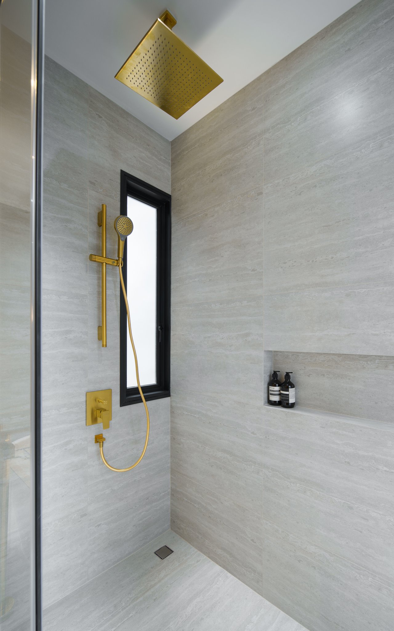 Die Architektur des Gebäudekomplexes spricht eine klare, streng-reduzierte Sprache, die durch organische und naturnahe Elemente aufgelockert wird. Im Außenbereich sorgen vertikale Spiegel für interessante Lichteffekte und optische Täuschungen, die zusätzliche Weite vermitteln. Die strenge Geometrie der Fassade und Fensterflächen wird durch schwungvolle Bögen aufgebrochen und mit ausdrucksvollen Marmorflächen und Holzpalisaden belebt – durchgängig in einem ruhigen Farbkonzept aus diversen Grautönen und hellem Holz.