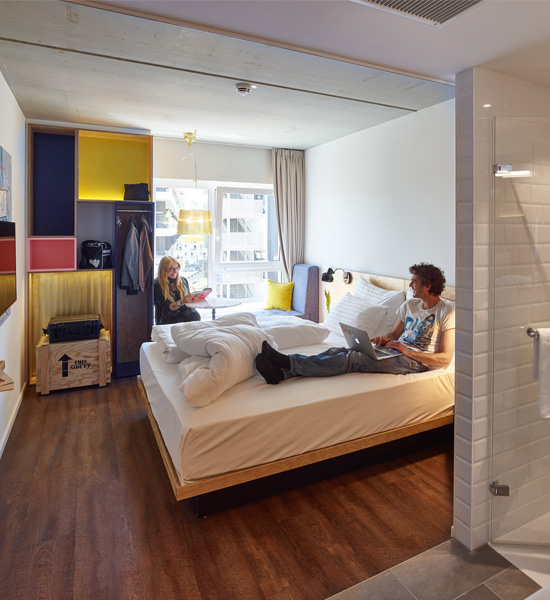 Trotz modernen Designs, nach dem Entwurf des Hotelarchitekten Gabriel Kacerovsky von archisphere, vermittelt das Hotel Schani eine gemütliche Atmosphäre mit Elementen, die man mit dem typischen Wiener Charme verbindet. Wie aus einer FutureHotel-Gästebefragung hervor ging, wünschen sich Gäste mehr Platz und Freiraum in ihrem Zimmer. Demnach wurde im Hotel Schani eine offene Raumkonstruktion umgesetzt. Eine XL-Regendusche, großzügige Ablagen, optimiertes Raumlicht, USB-Anschlüsse zur Stromversorgung mobiler Elektronik und Smart-TV gehören zur Standardausstattung. Bei der Badplanung entschied sich das Architektenteam unter anderem für die designorientierte Sanitärkeramik von Villeroy & Boch. Die spülrandlosen DirectFlush-WCs in den Zimmern stammen aus der Kollektion Architectura. Das Systemkonzept Architectura ist mit seinem umfassenden, systematischen Portfolio speziell auf das Objektgeschäft abgestimmt und bietet innovative Lösungen bei hoher Qualität.