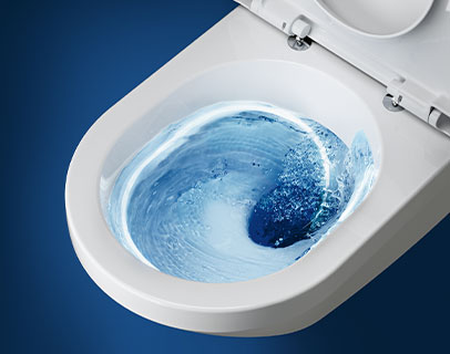 Die TwistFlush[e³]-WCs überzeugen mit ihrer kraftvollen Wirbelspülung und lassen sich durch das spülrandlose Design schnell reinigen.