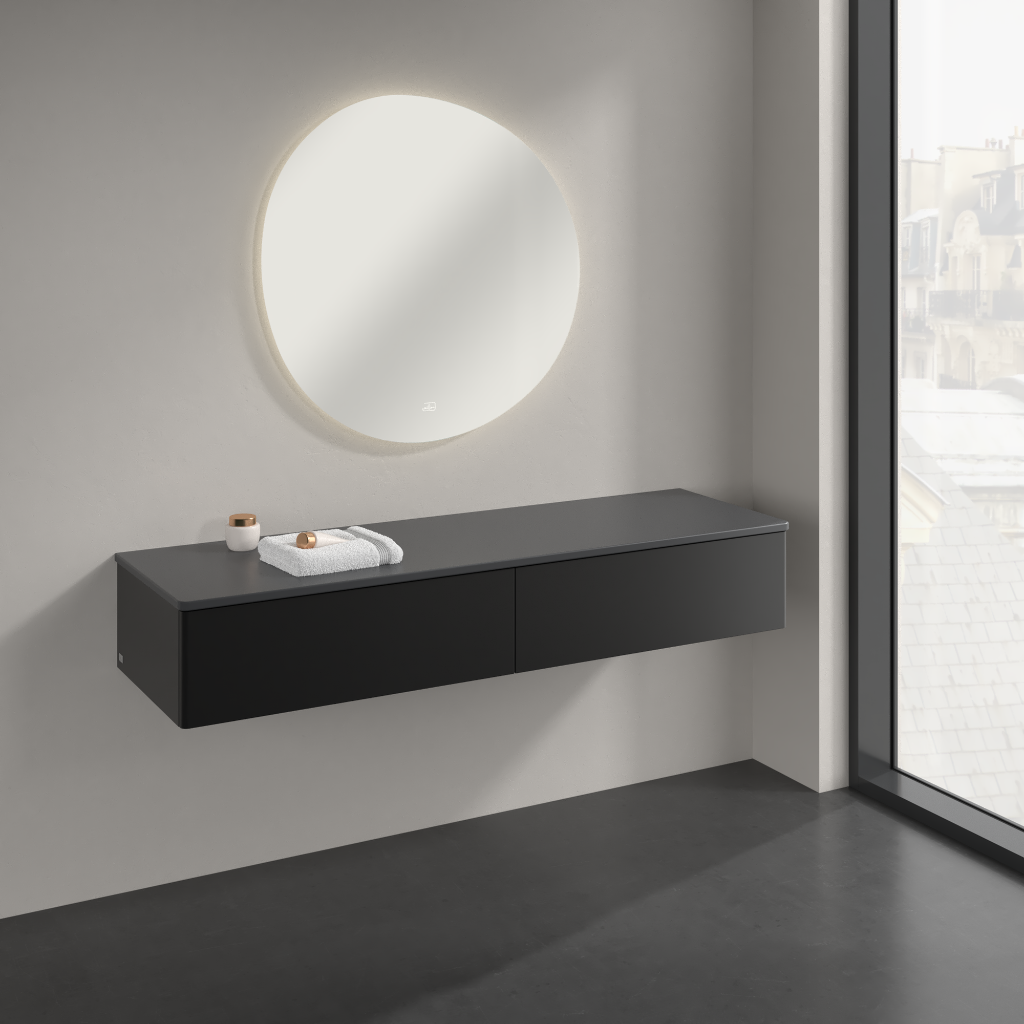 Antao Sideboard, 2 Auszüge, 1600x268x500mm, Front ohne Struktur, Korpus: Black Matt Lacquer, Front: Black Matt Lacquer, Abdeckplatte: Black Matt Lacquer