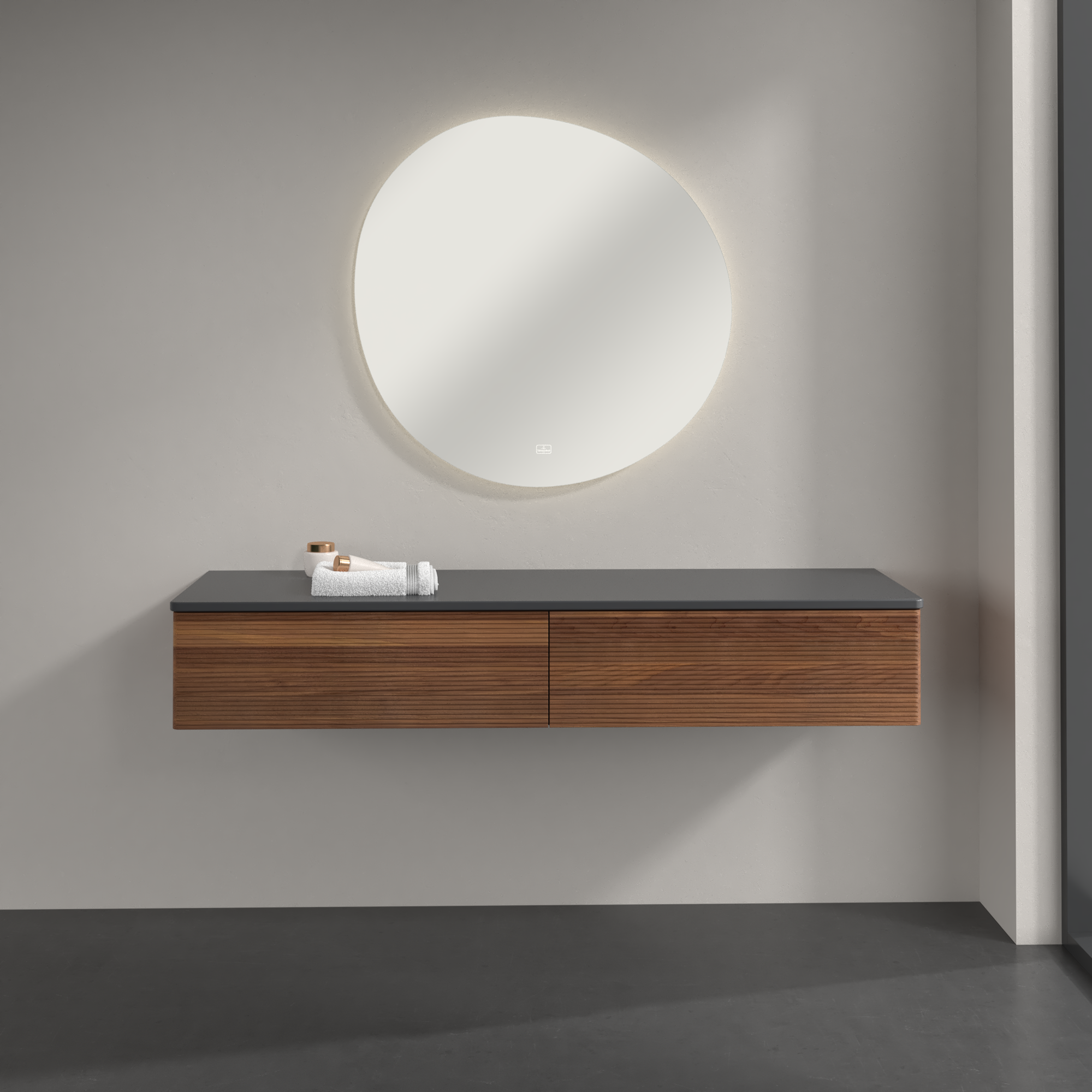 Antao Sideboard, 2 Auszüge, 1600x268x500mm, Front mit Struktur, Korpus: Warm Walnut, Front: Warm Walnut, Abdeckplatte: Honey Oak