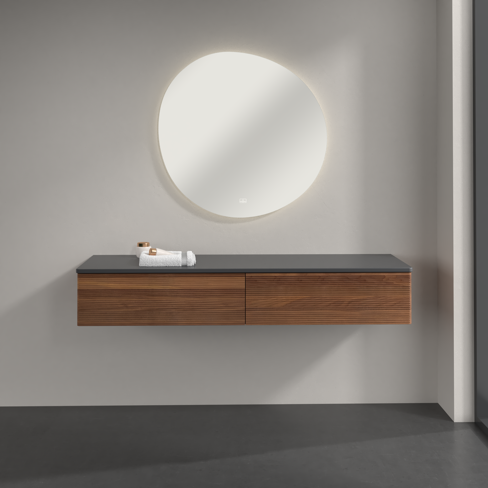 Antao Sideboard, 2 Auszüge, 1600x268x500mm, Front mit Struktur, Korpus: Warm Walnut, Front: Warm Walnut, Abdeckplatte: Warm Walnut