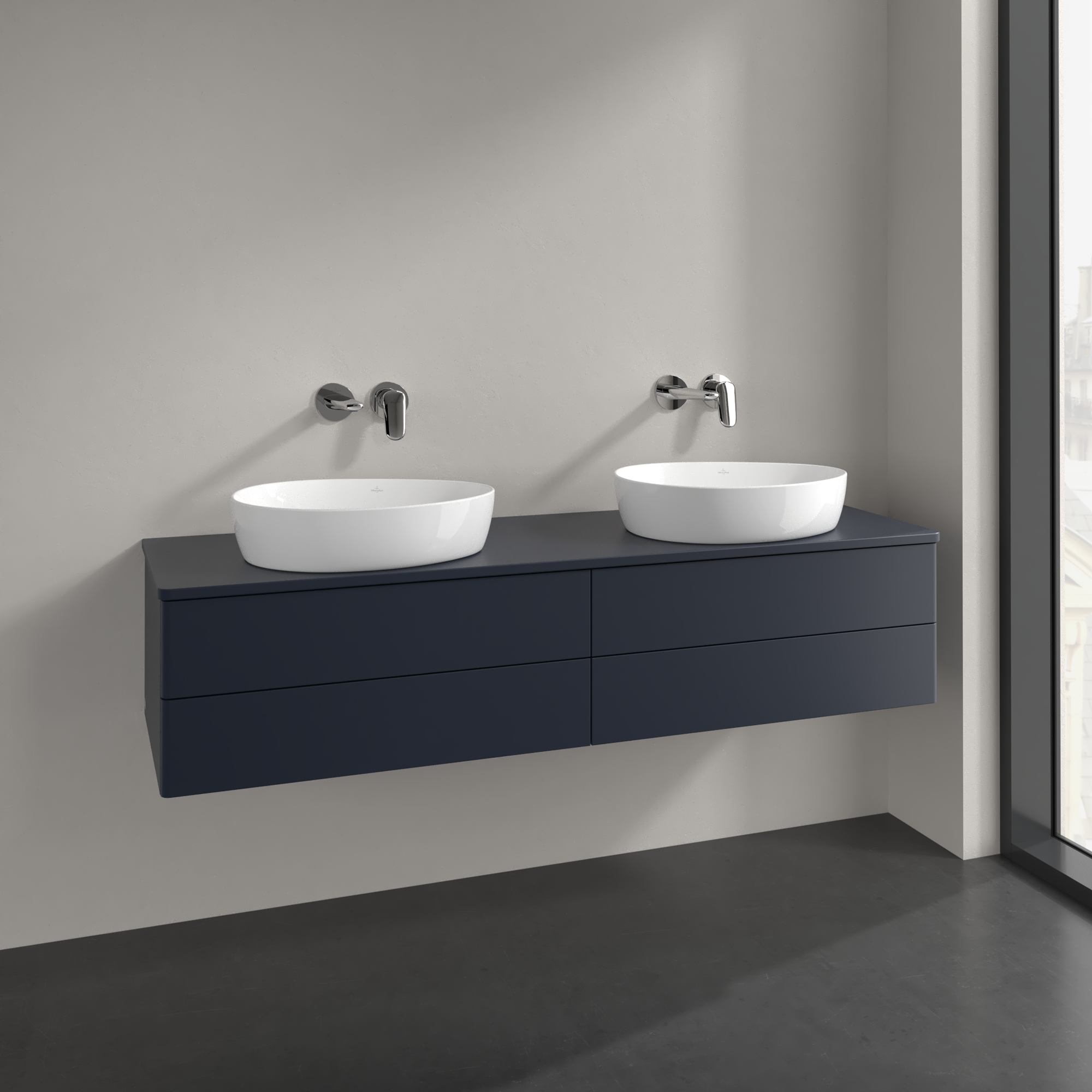 Antao Waschbeckenunterschrank, 4 Auszüge, 1600x360x500mm, Front ohne Struktur, Korpus: Midnight Blue Matt Lacquer, Front: Midnight Blue Matt Lacquer, Abdeckplatte: Midnight Blue Matt Lacquer