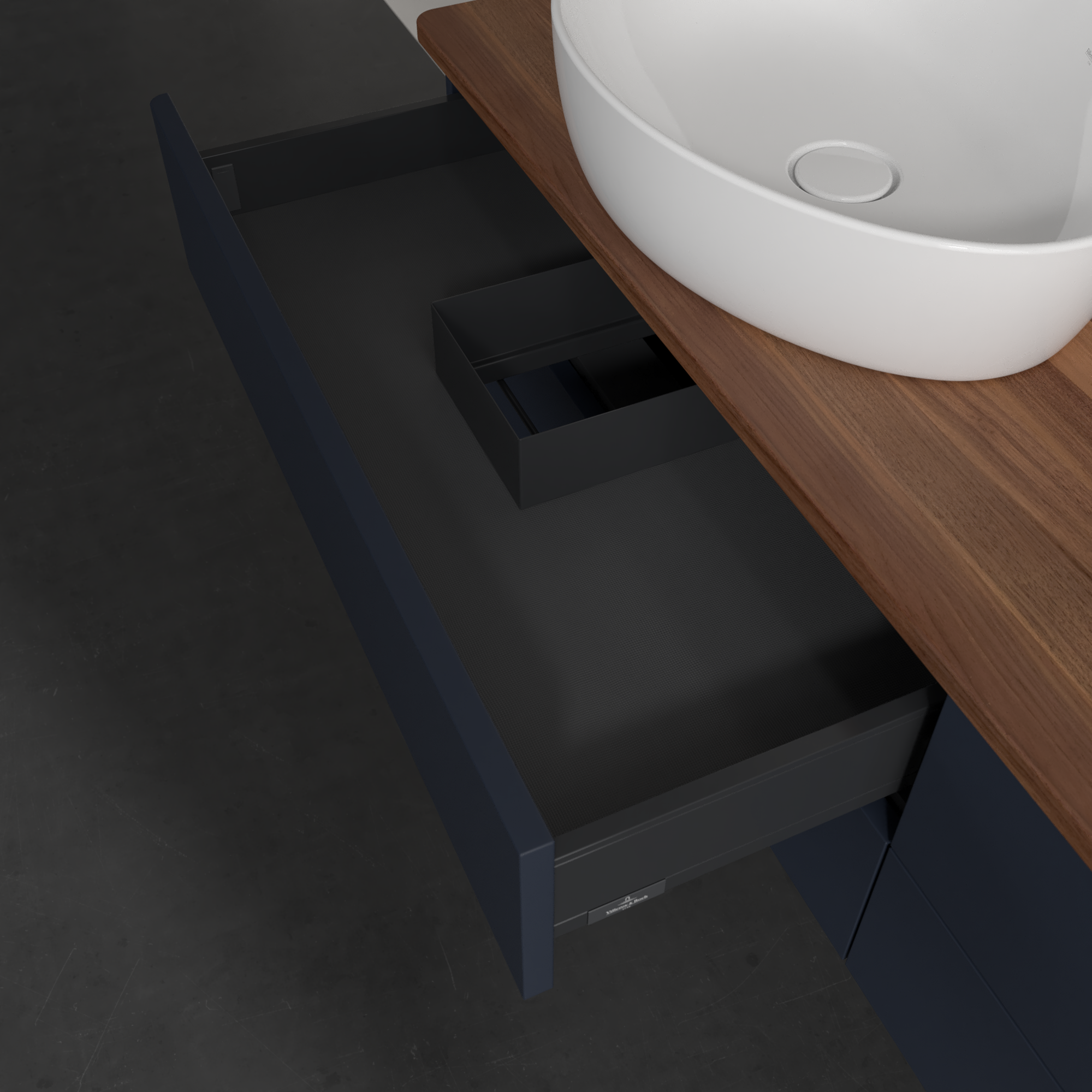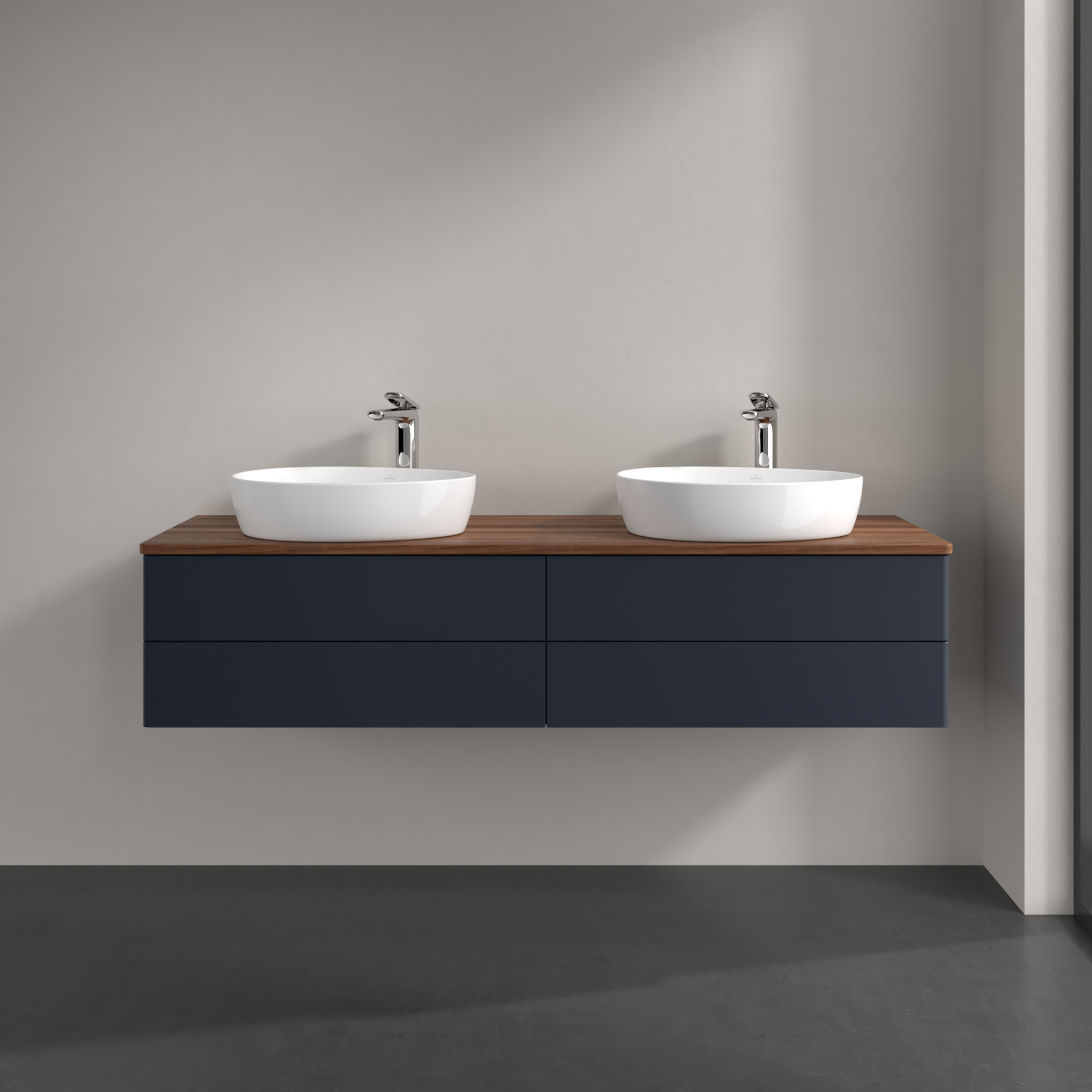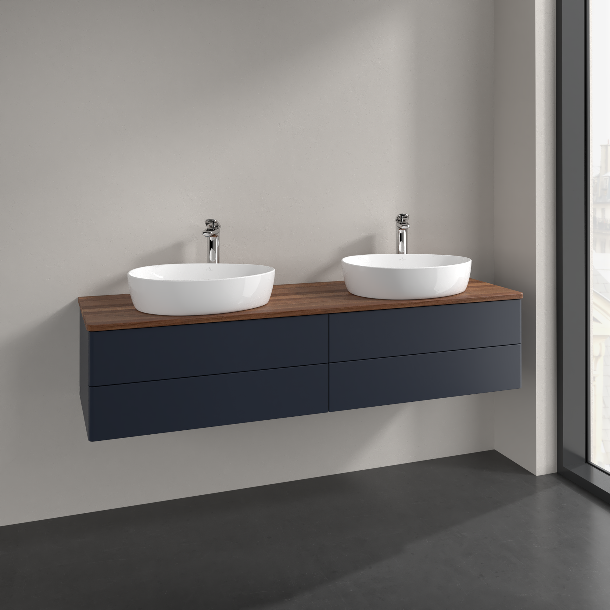 Antao Waschbeckenunterschrank, 4 Auszüge, 1600x360x500mm, Front ohne Struktur, Korpus: Midnight Blue Matt Lacquer, Front: Midnight Blue Matt Lacquer, Abdeckplatte: Warm Walnut