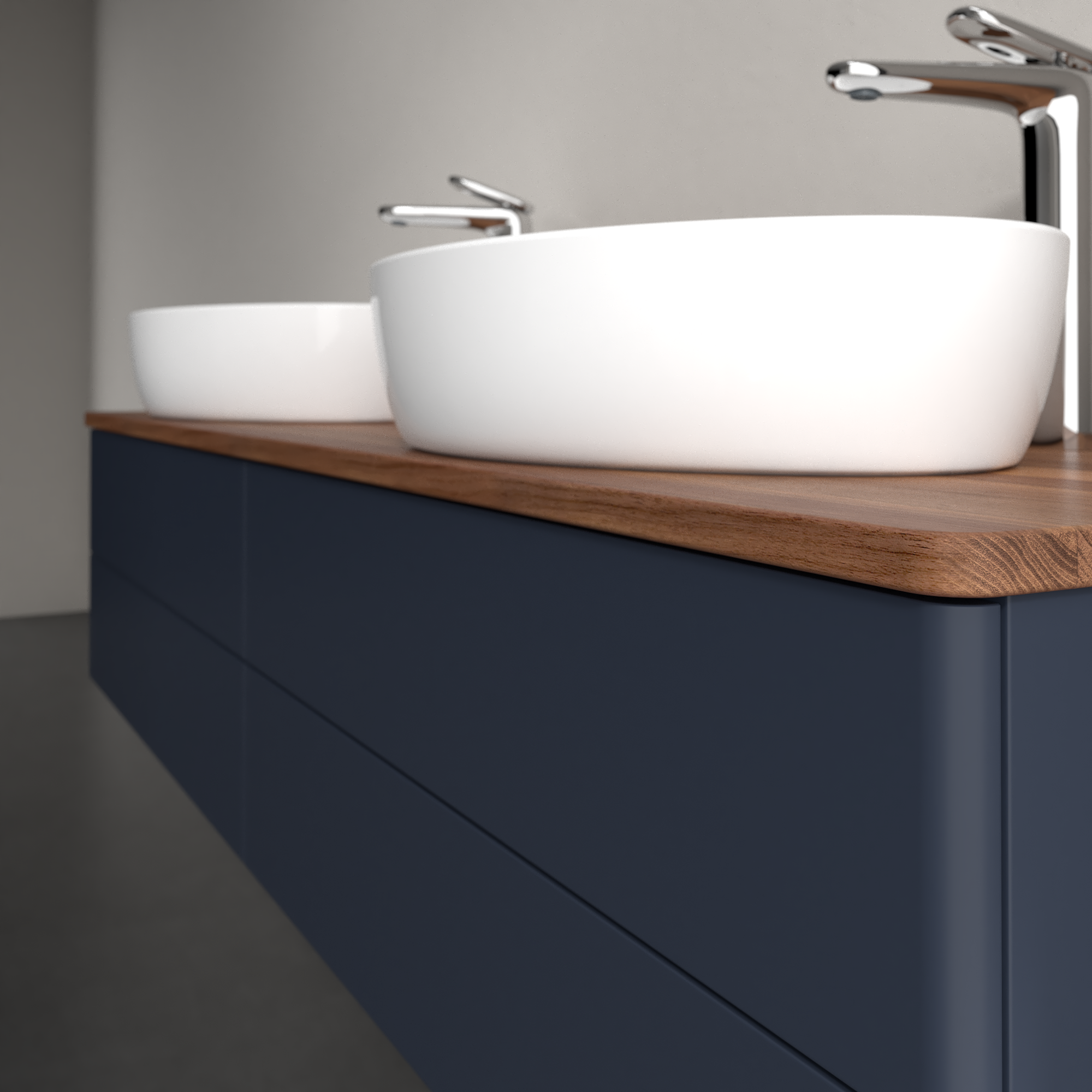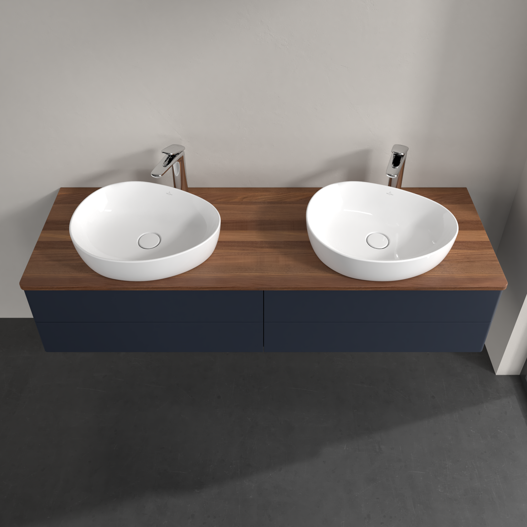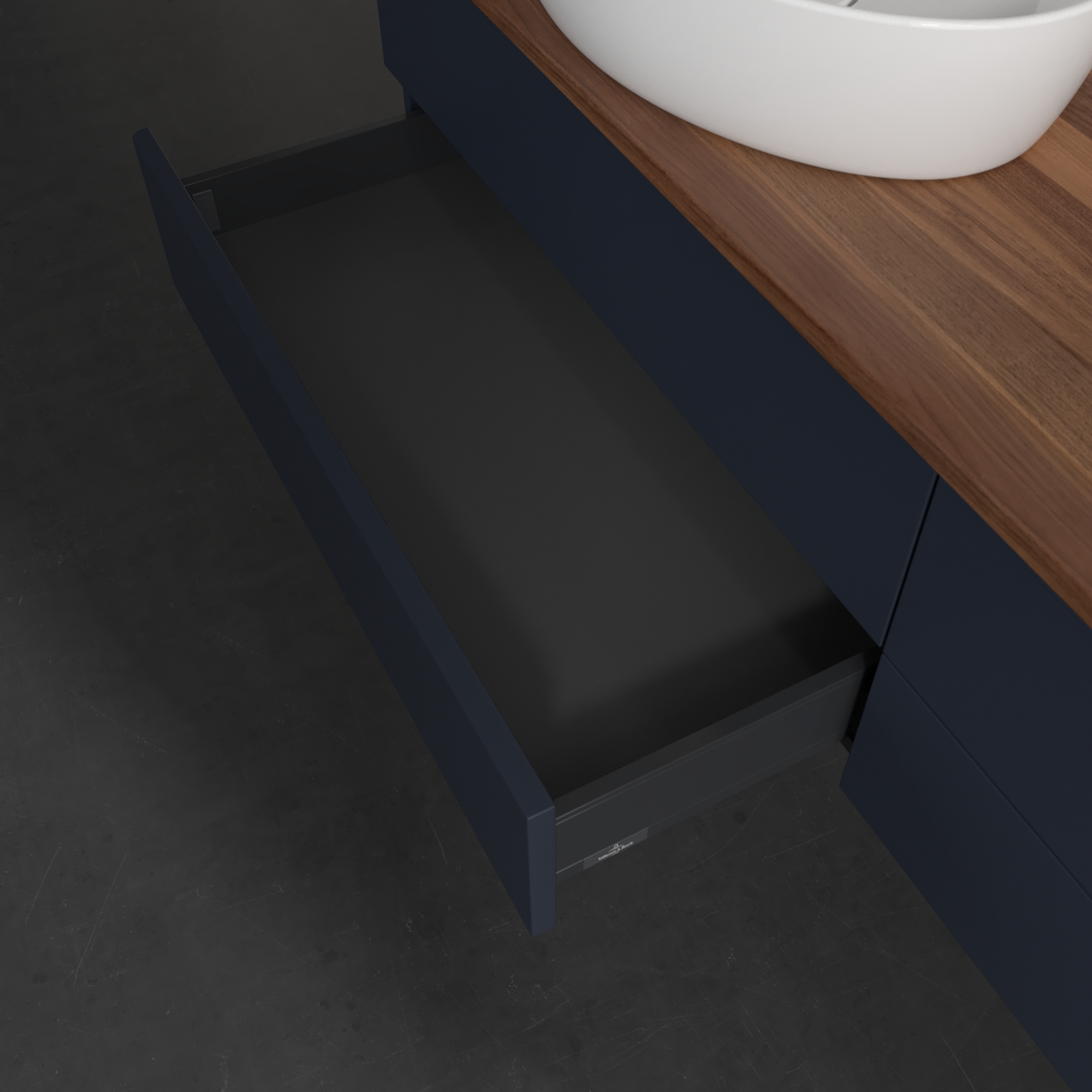 Antao Waschbeckenunterschrank, 4 Auszüge, 1600x360x500mm, Front ohne Struktur, Korpus: Midnight Blue Matt Lacquer, Front: Midnight Blue Matt Lacquer, Abdeckplatte: Warm Walnut