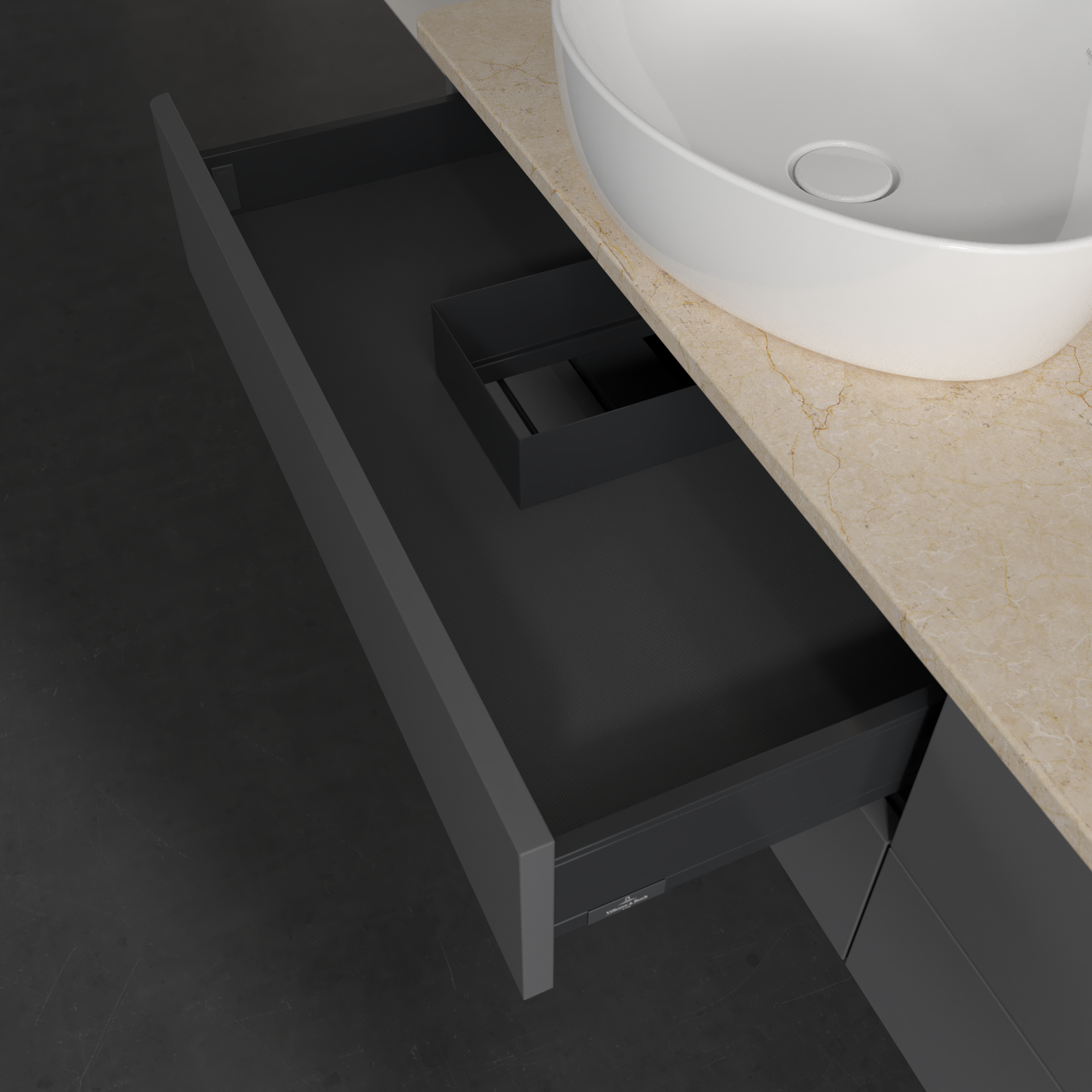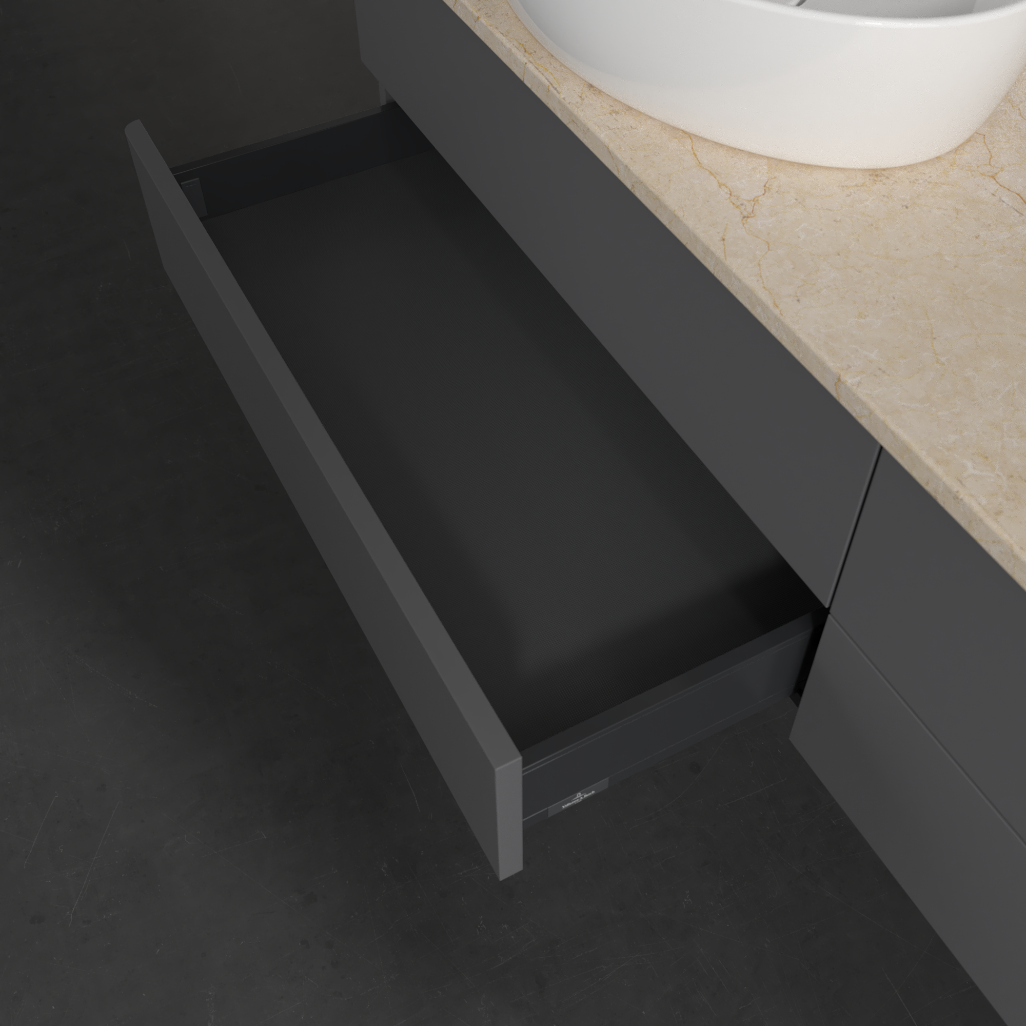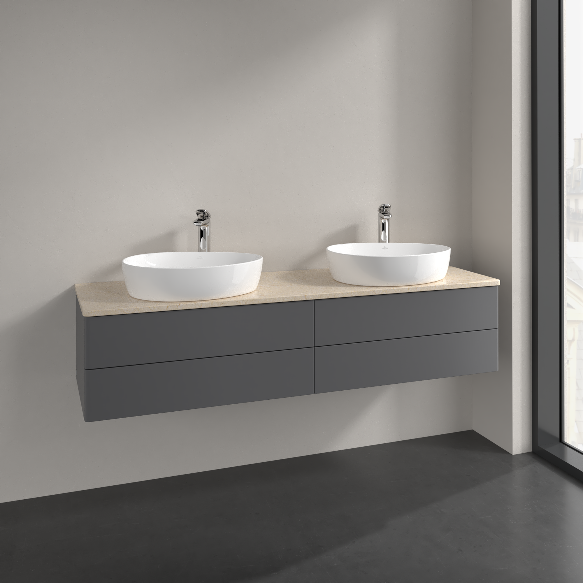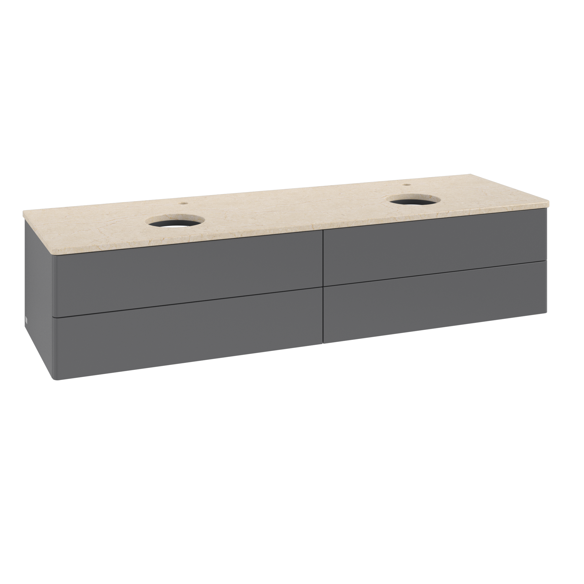 Antao Waschbeckenunterschrank, 4 Auszüge, 1600x360x500mm, Front ohne Struktur, Korpus: Anthracite Matt Lacquer, Front: Anthracite Matt Lacquer, Abdeckplatte: Botticino