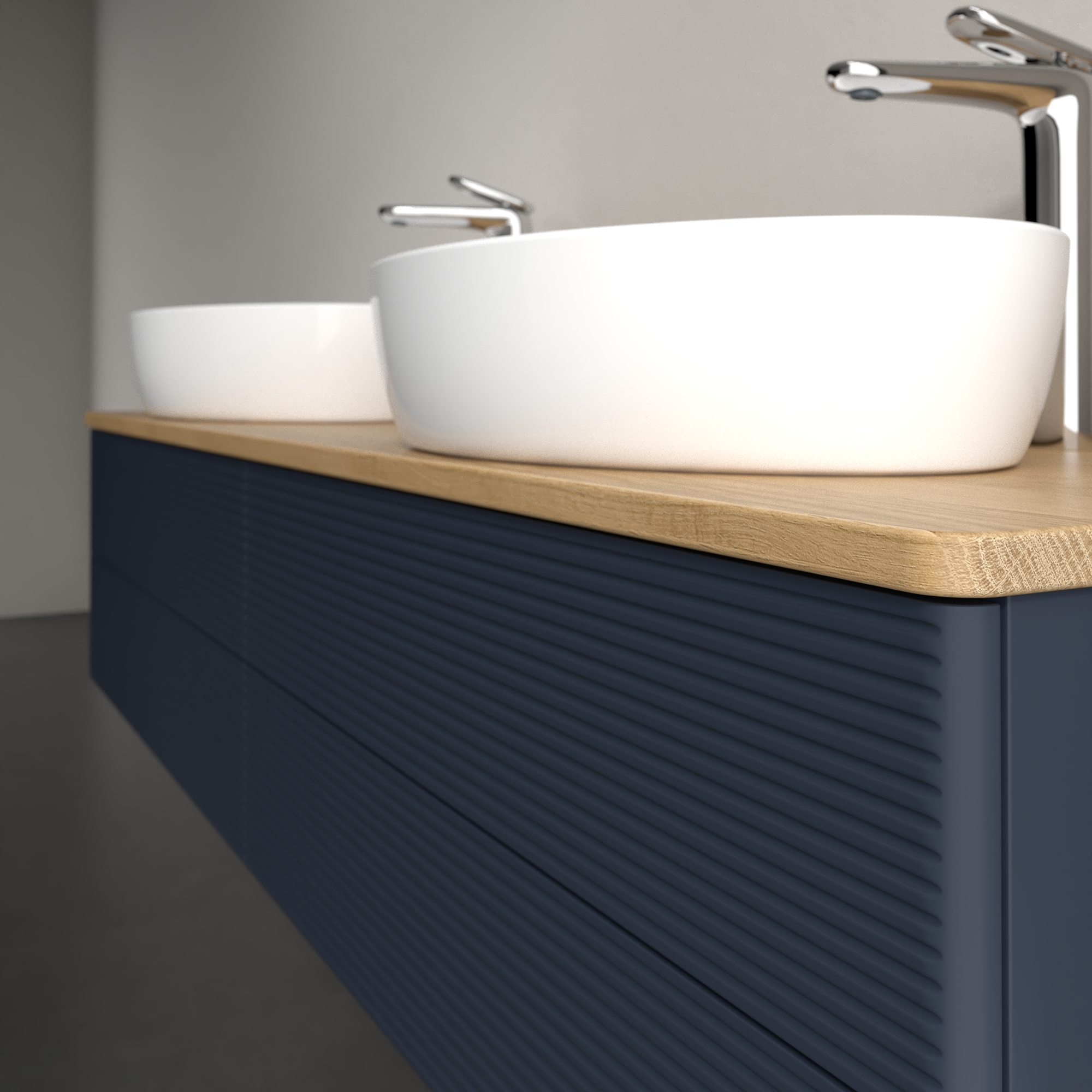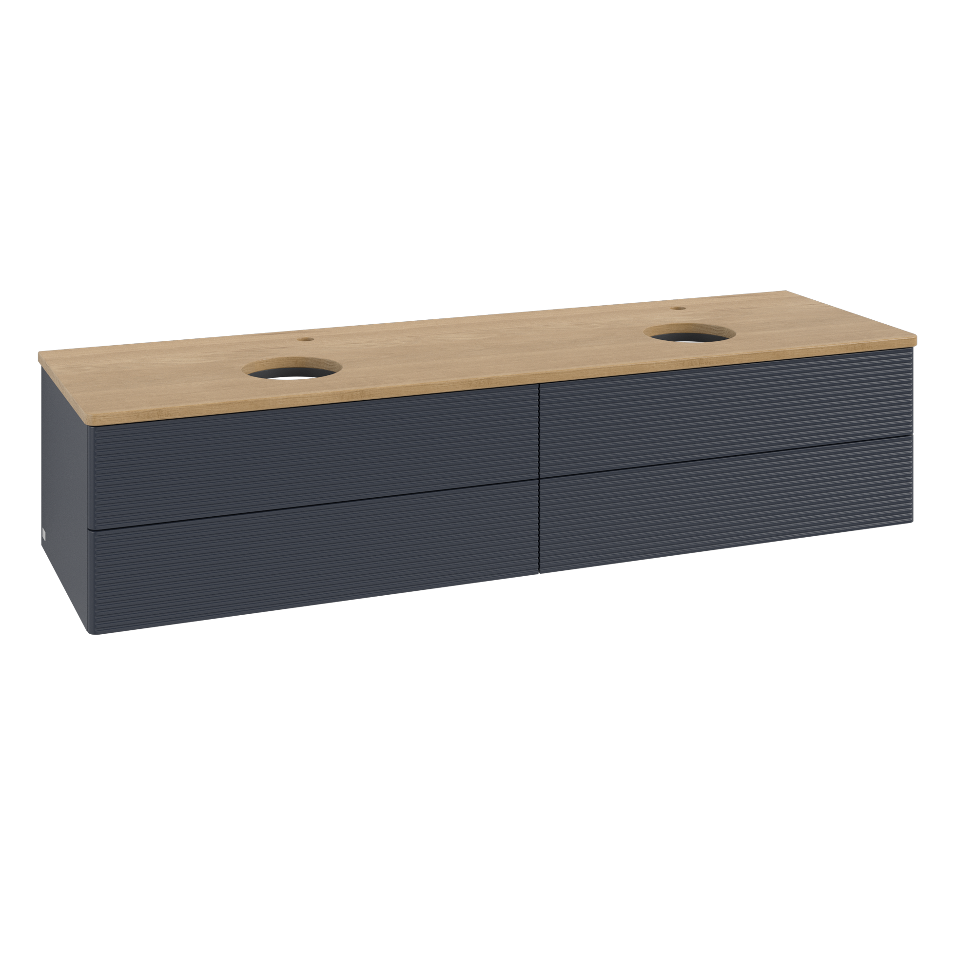 Antao Waschbeckenunterschrank, 4 Auszüge, 1600x360x500mm, Front mit Struktur, Korpus: Midnight Blue Matt Lacquer, Front: Midnight Blue Matt Lacquer, Abdeckplatte: Honey Oak