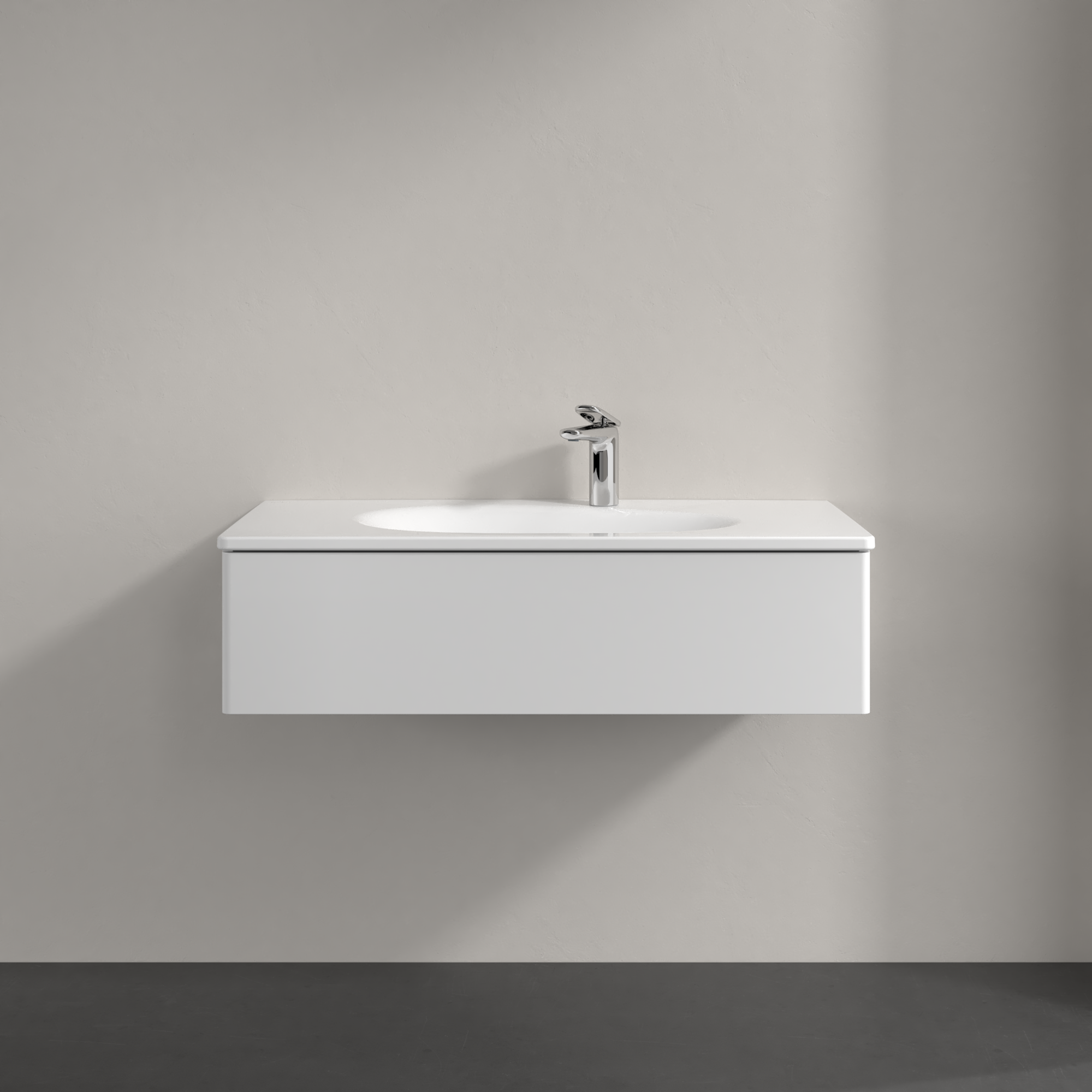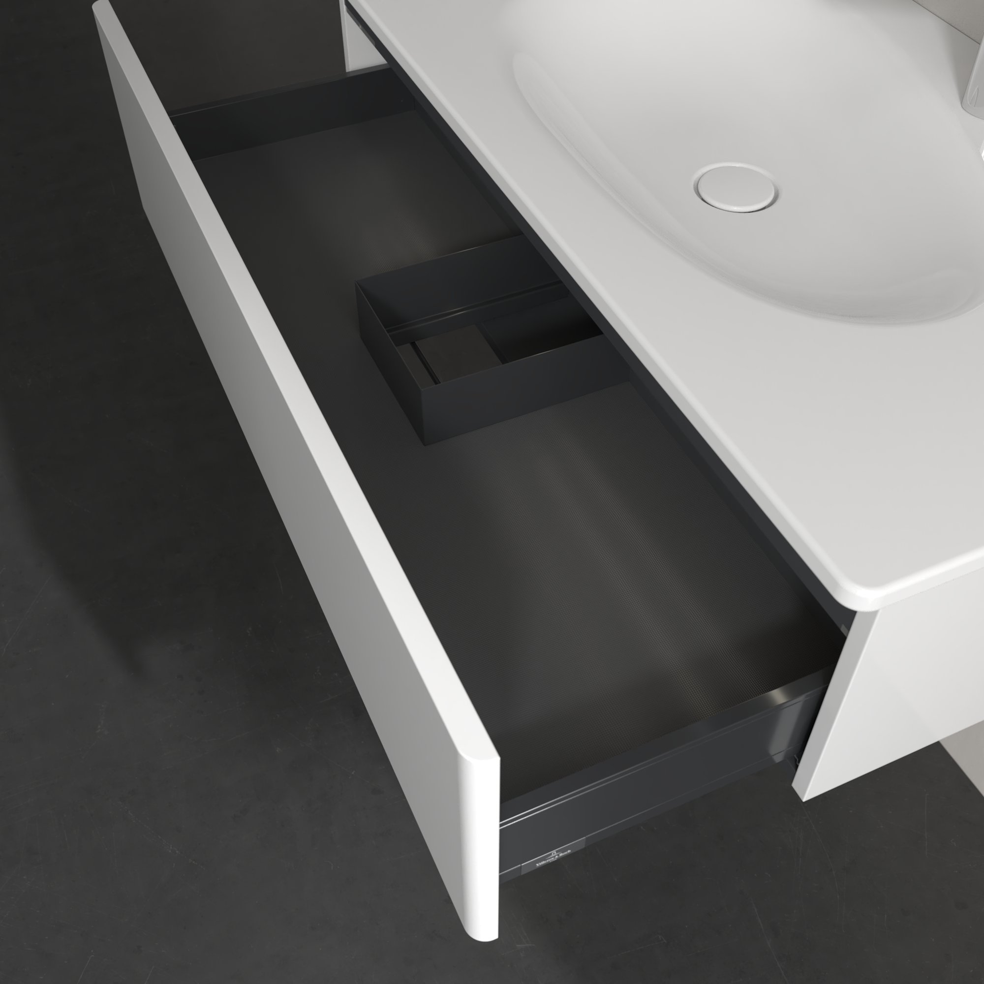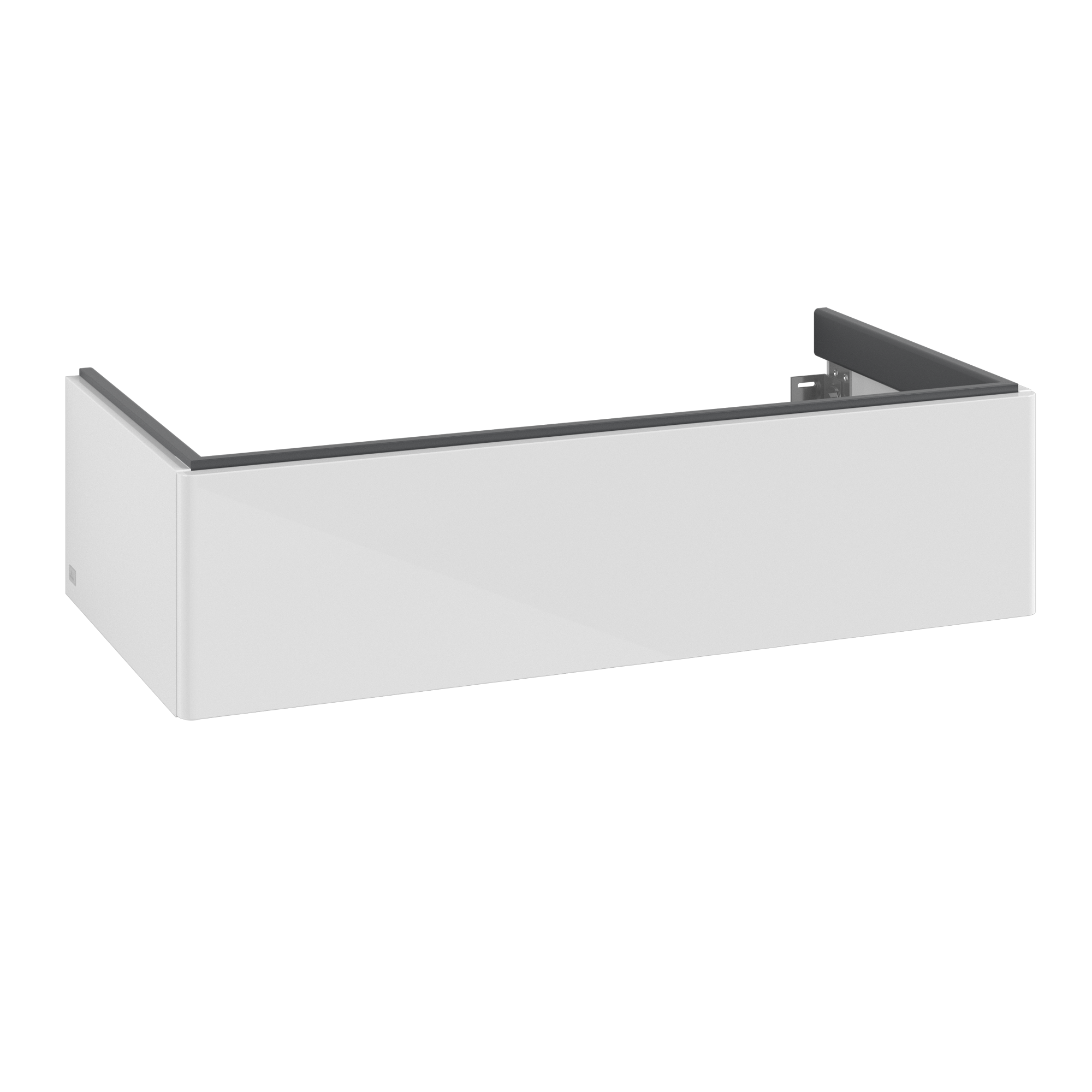 Antao Waschbeckenunterschrank, mit Beleuchtung, 1 Auszug, 988x256x493mm, Front ohne Struktur, Korpus: Glossy White Lacquer, Front: Glossy White Lacquer