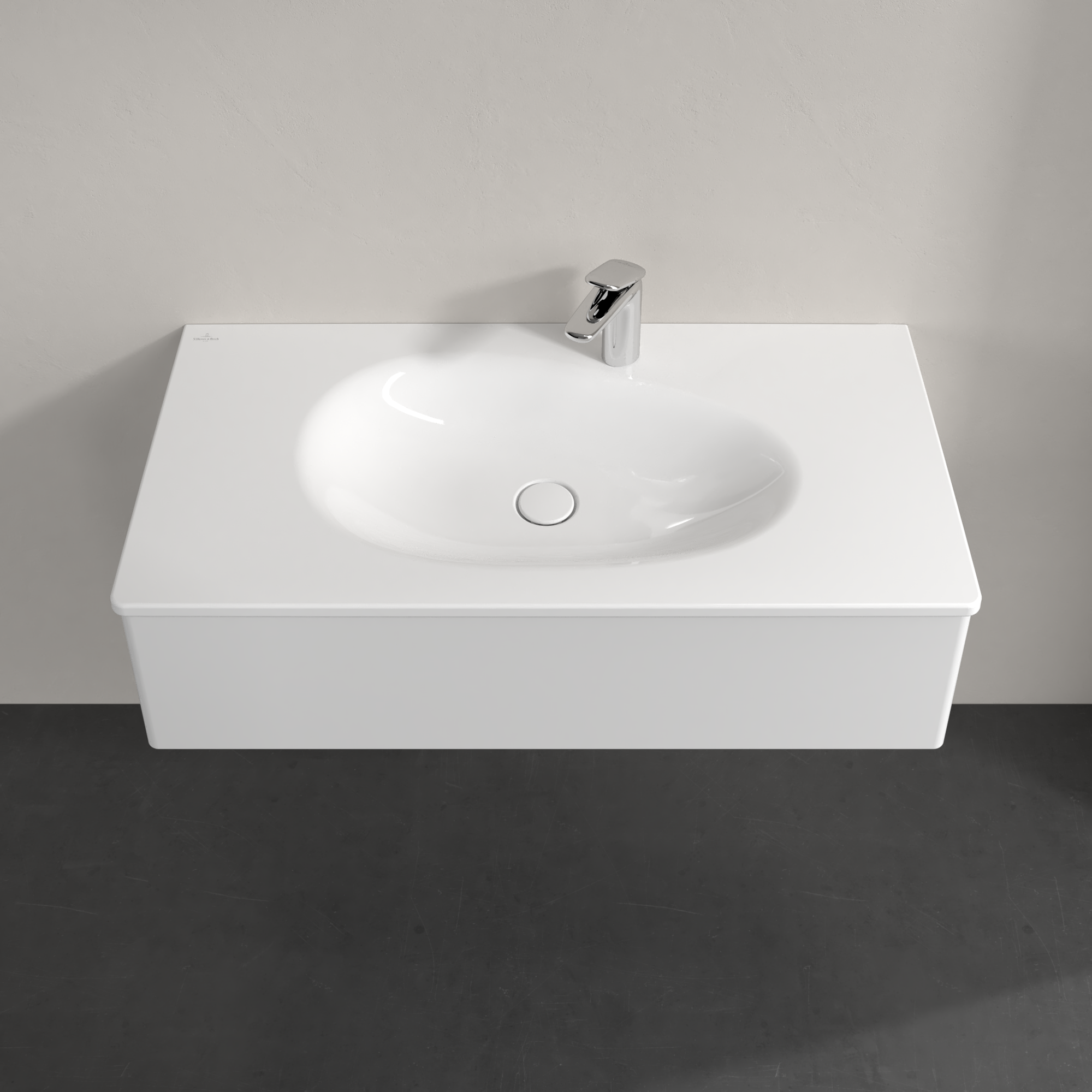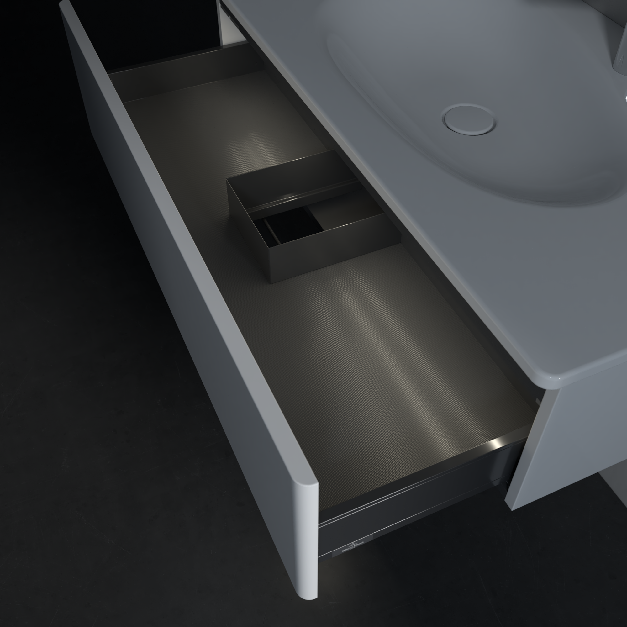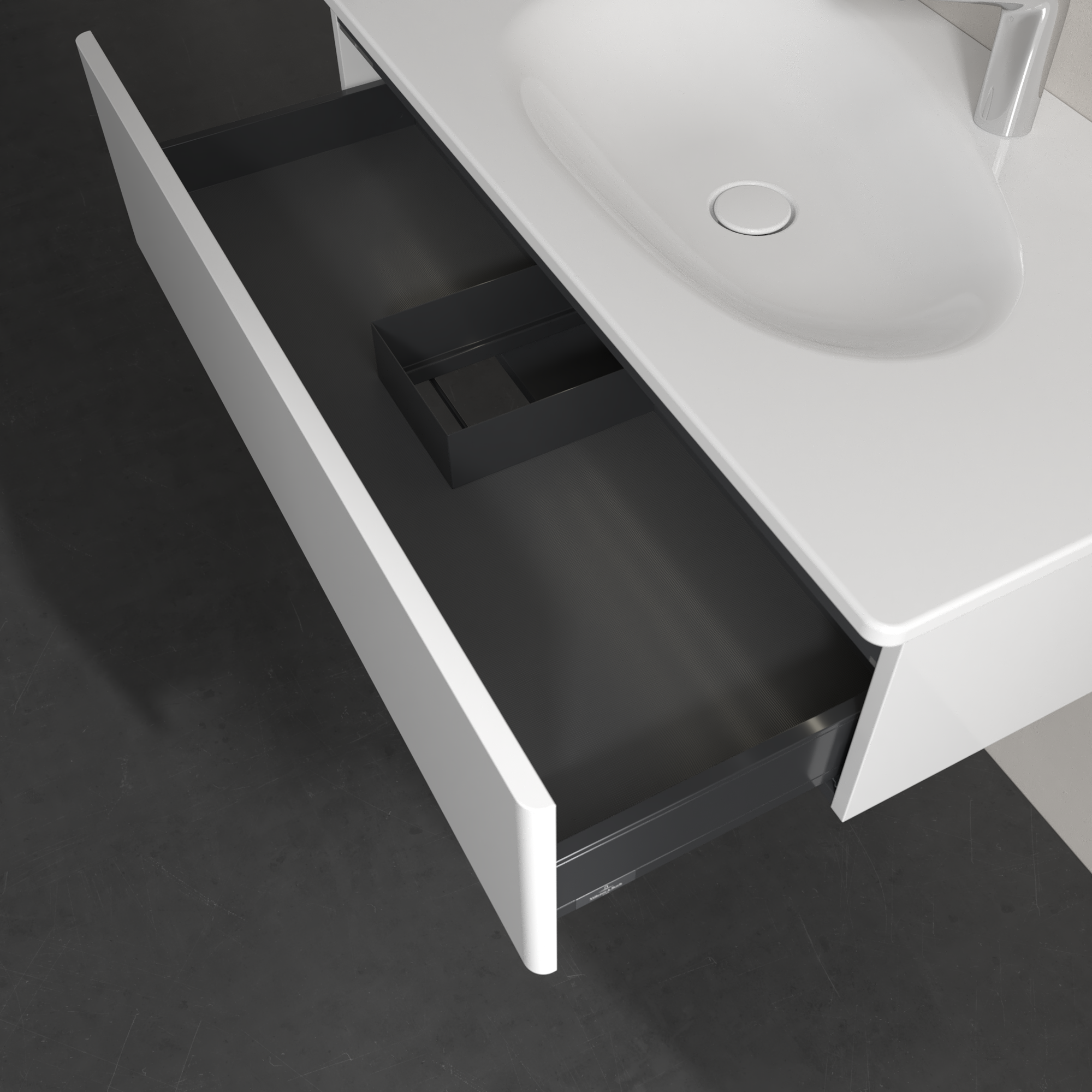 Antao Waschbeckenunterschrank, mit Beleuchtung, 1 Auszug, 988x256x493mm, Front ohne Struktur, Korpus: Glossy White Lacquer, Front: Glossy White Lacquer