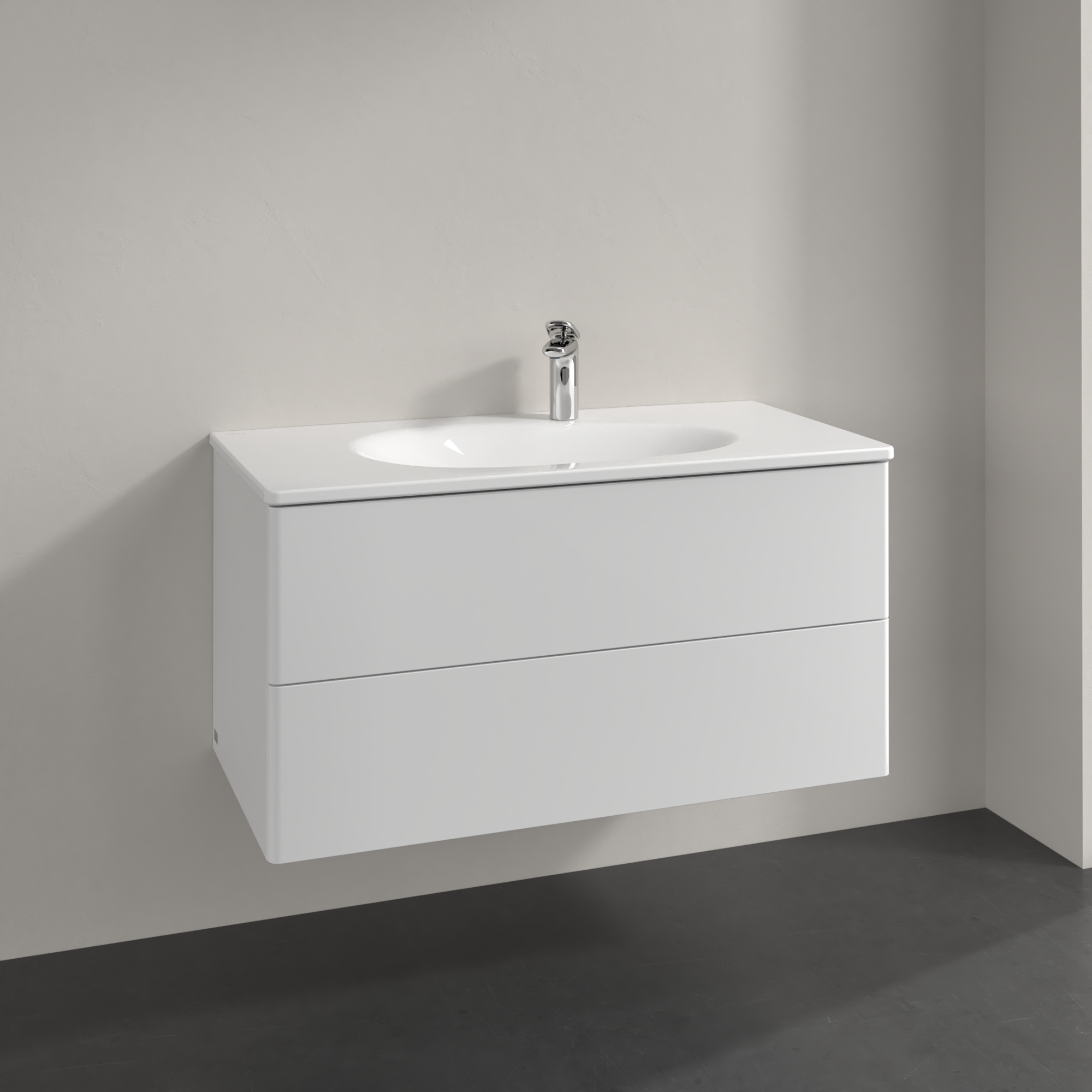 Antao Waschbeckenunterschrank, mit Beleuchtung, 2 Auszüge, 988x504x496mm, Front ohne Struktur, Korpus: Glossy White Lacquer, Front: Glossy White Lacquer