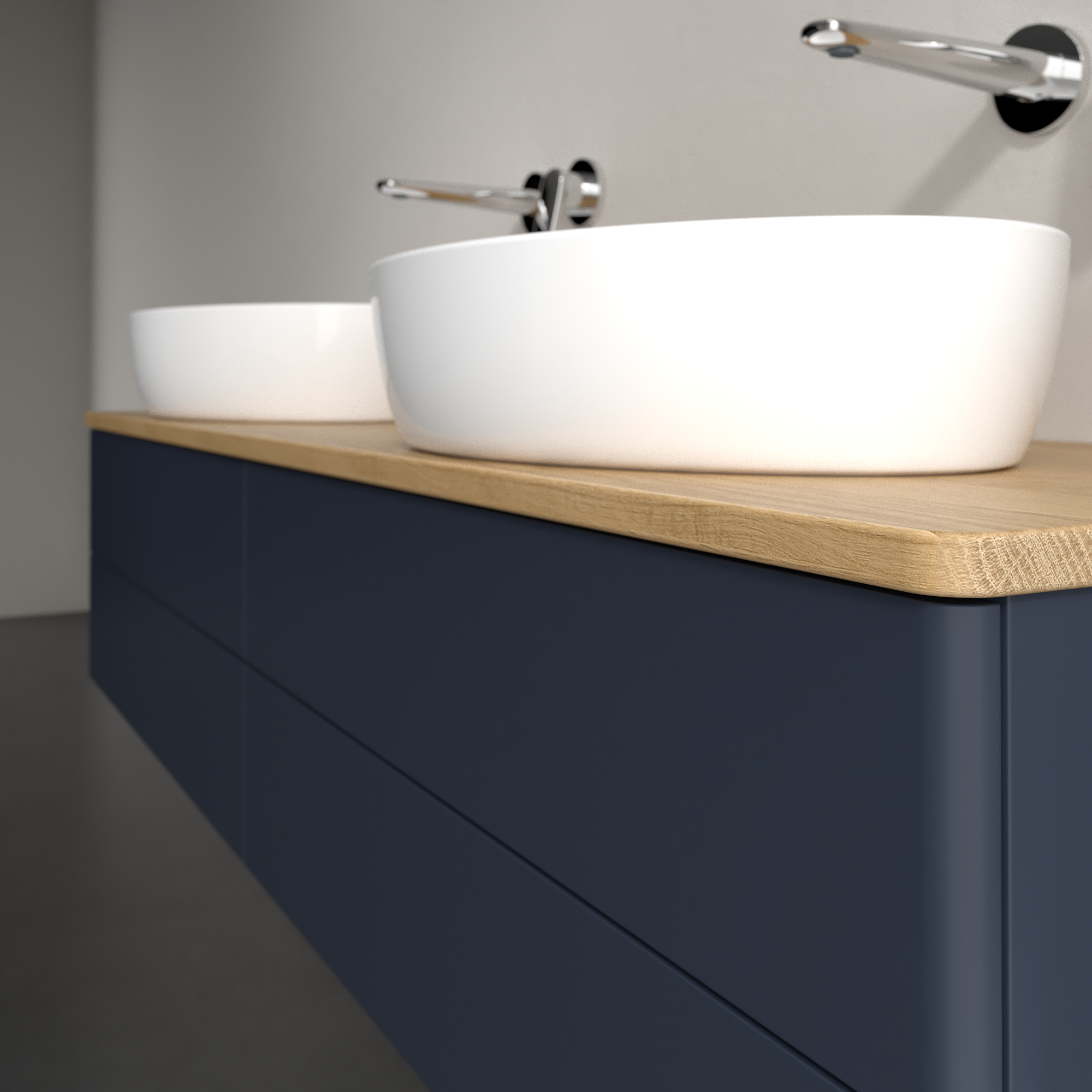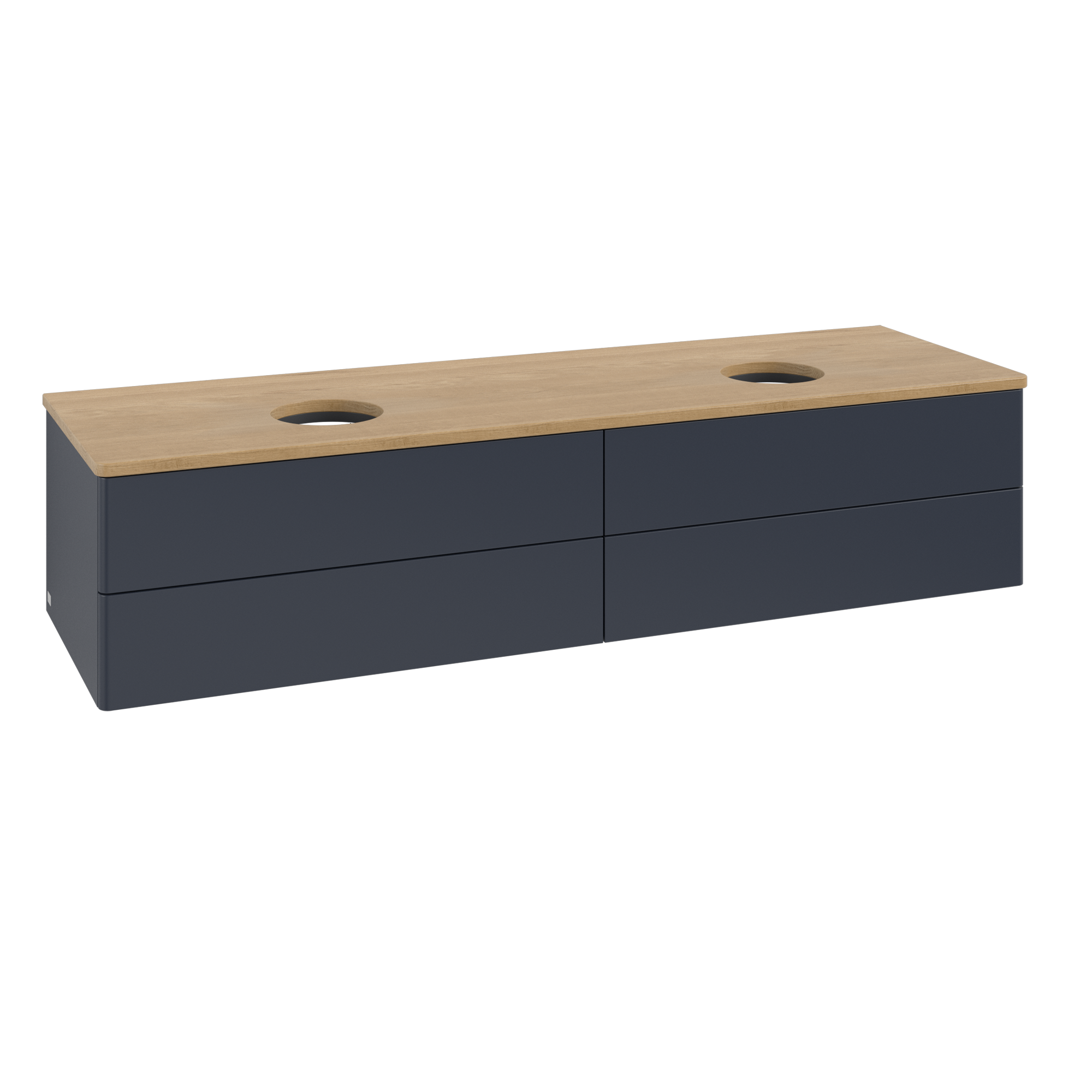 Antao Waschbeckenunterschrank, mit Beleuchtung, 4 Auszüge, 1600x360x500mm, Front ohne Struktur, Korpus: Midnight Blue Matt Lacquer, Front: Midnight Blue Matt Lacquer, Abdeckplatte: Honey Oak