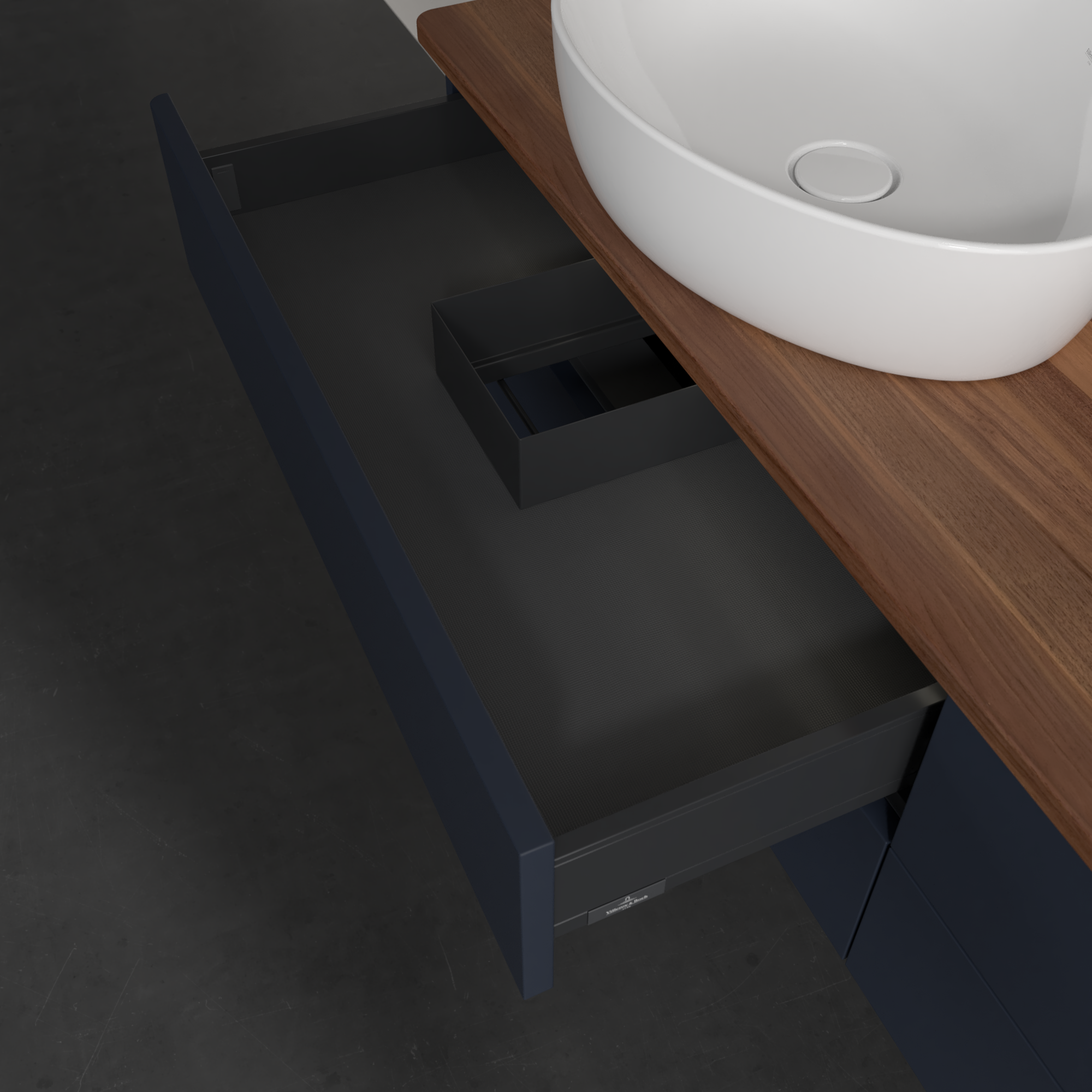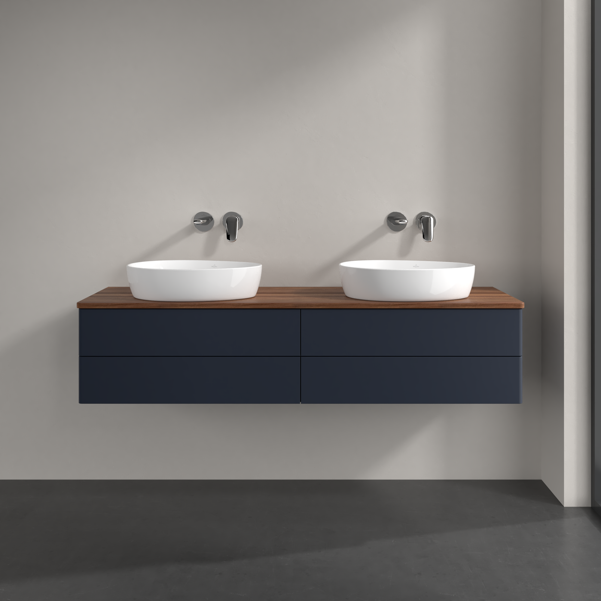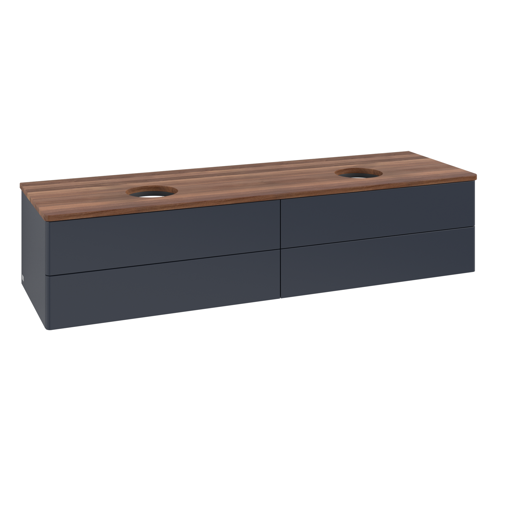 Antao Waschbeckenunterschrank, mit Beleuchtung, 4 Auszüge, 1600x360x500mm, Front ohne Struktur, Korpus: Midnight Blue Matt Lacquer, Front: Midnight Blue Matt Lacquer, Abdeckplatte: Warm Walnut