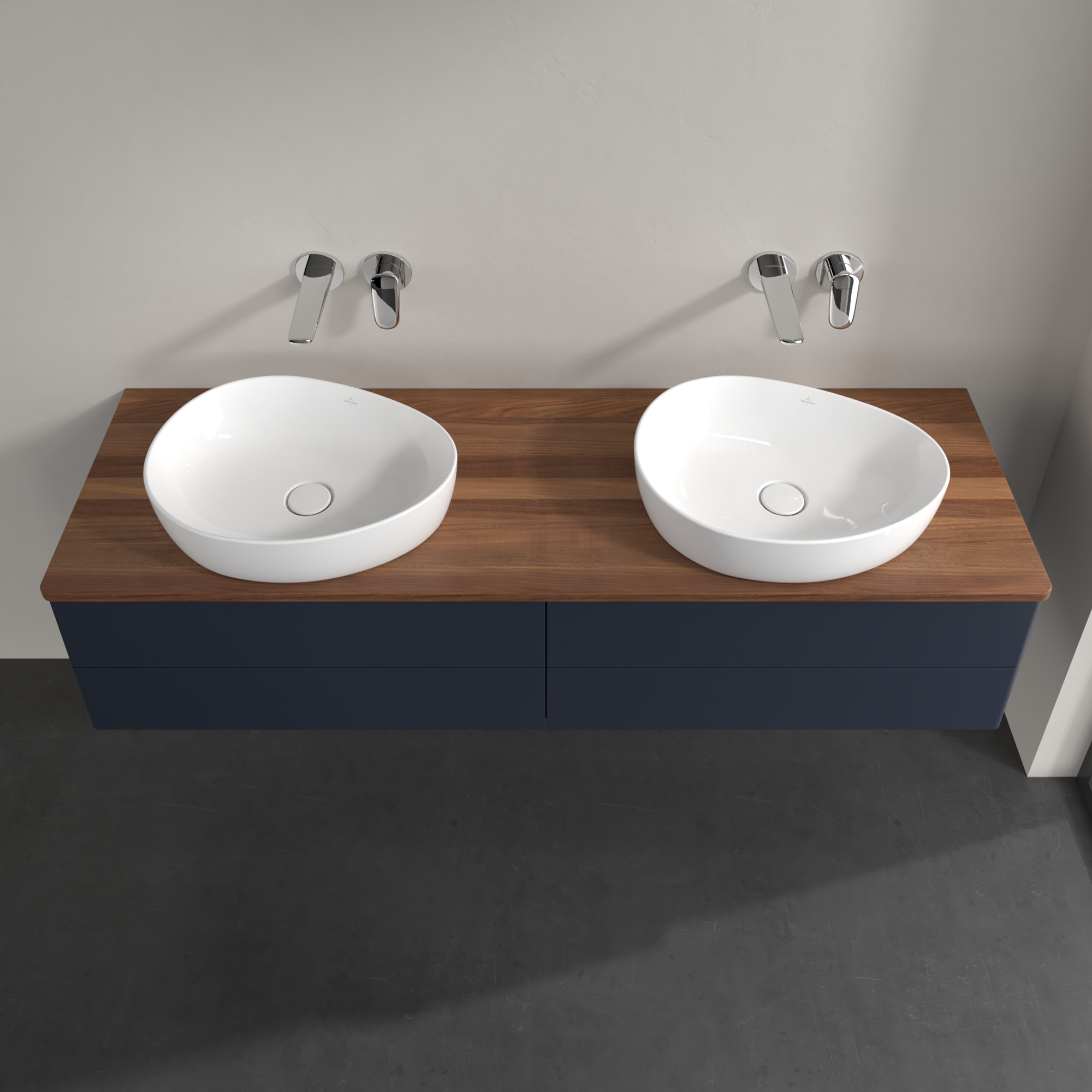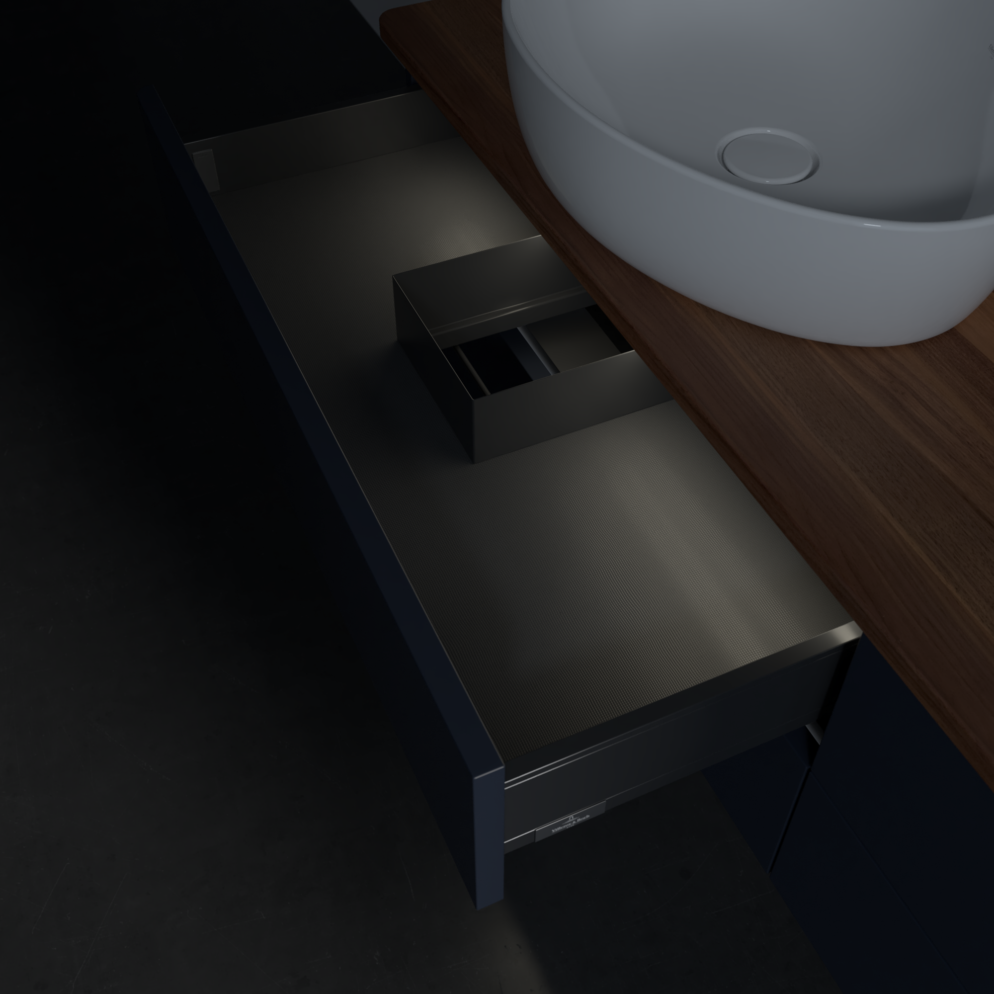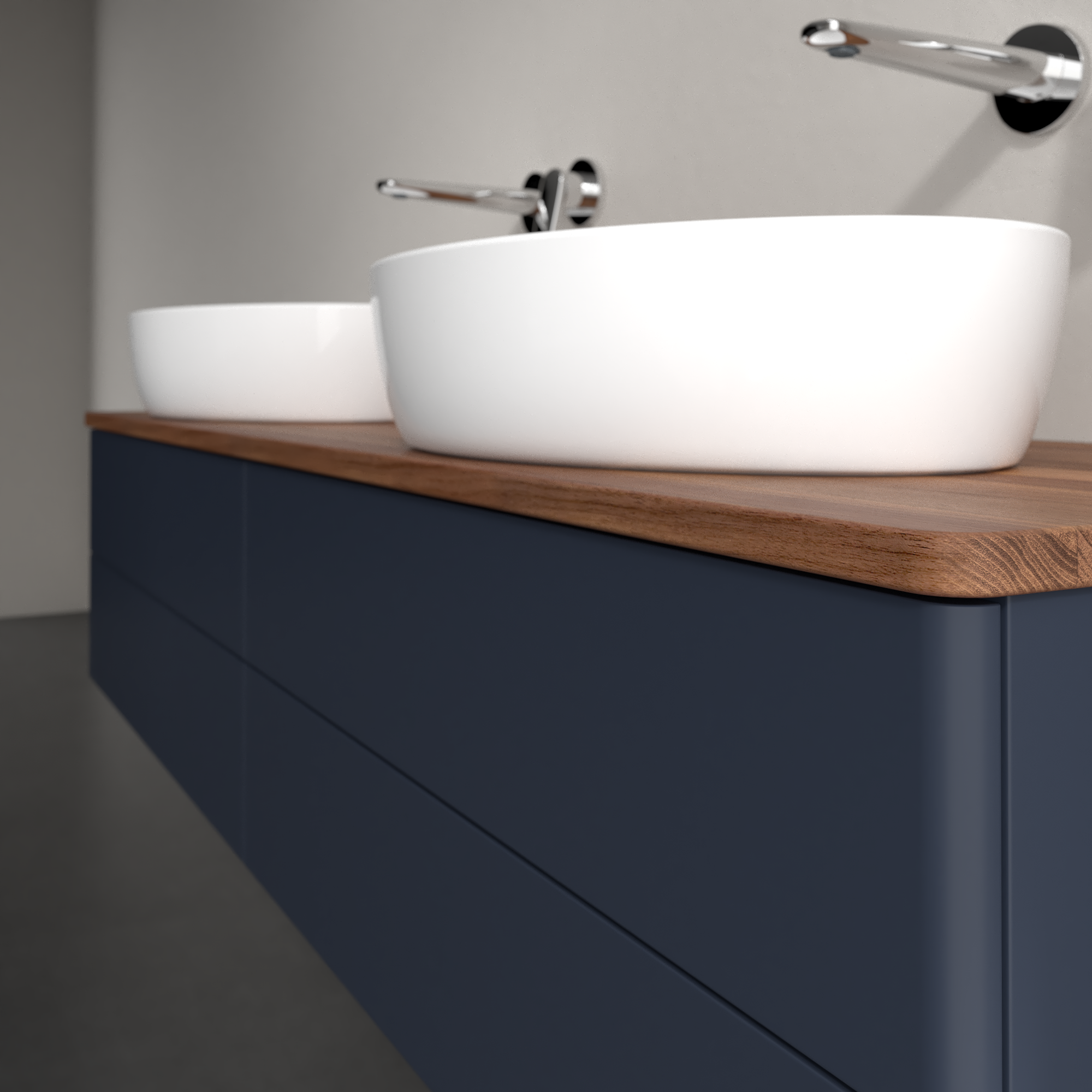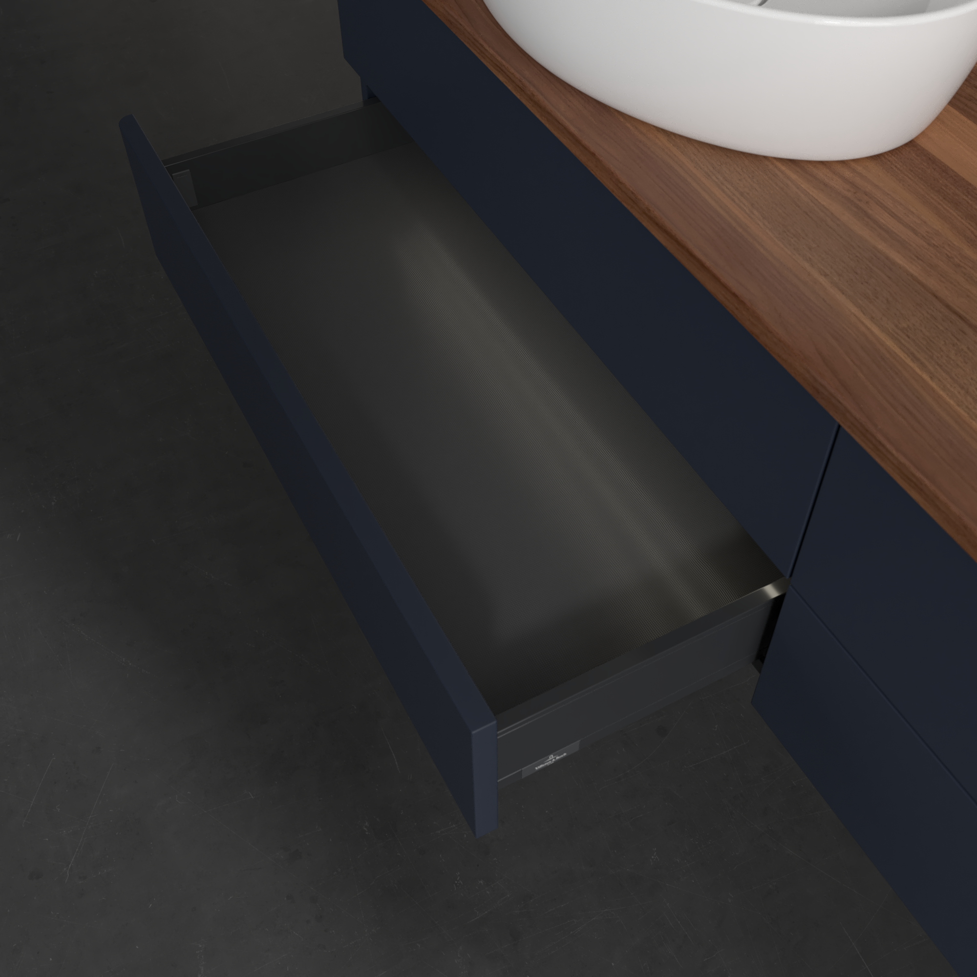 Antao Waschbeckenunterschrank, mit Beleuchtung, 4 Auszüge, 1600x360x500mm, Front ohne Struktur, Korpus: Midnight Blue Matt Lacquer, Front: Midnight Blue Matt Lacquer, Abdeckplatte: Warm Walnut