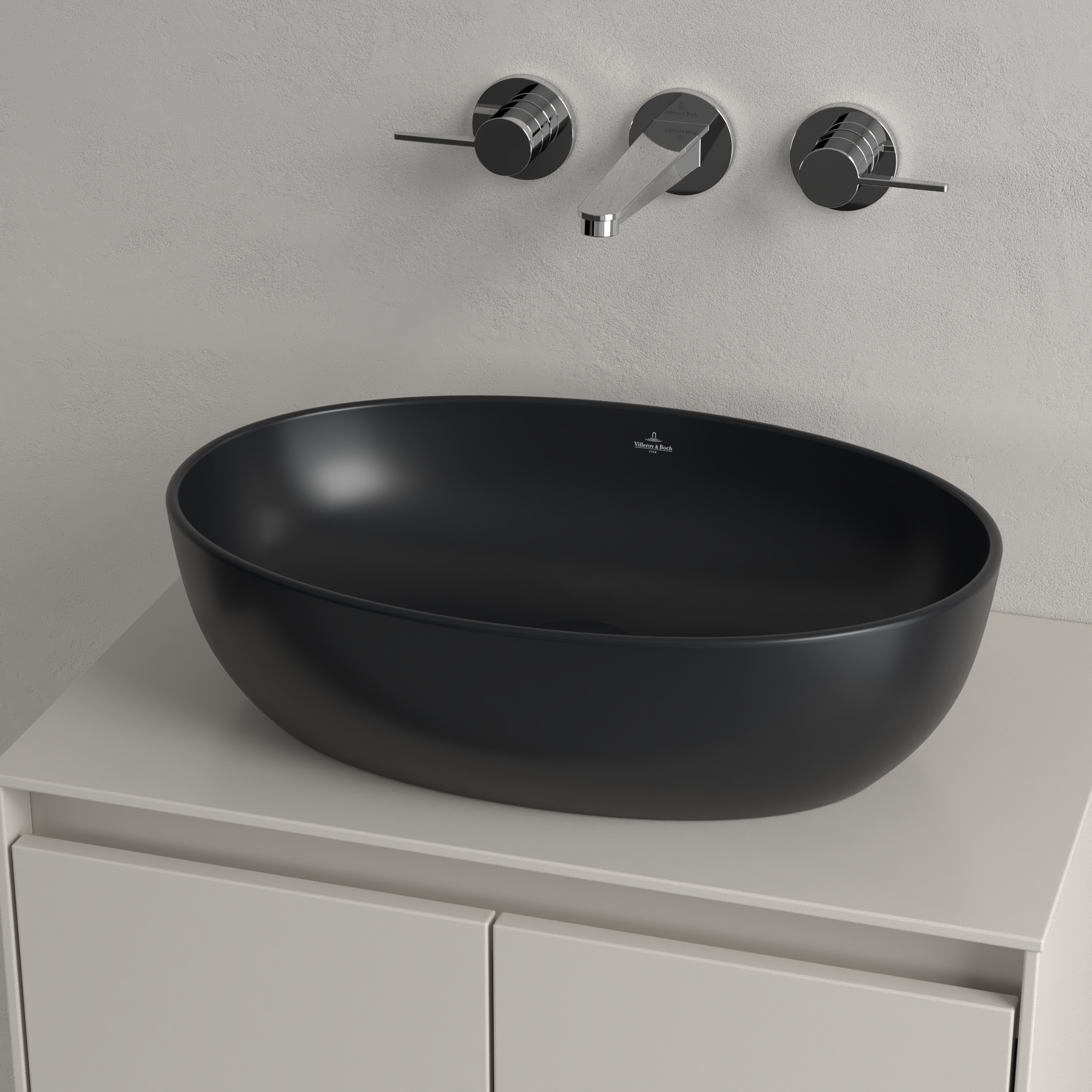 Artis Aufsatzwaschbecken, 480x325x135mm, ohne Überlauf, Pure Black CeramicPlus