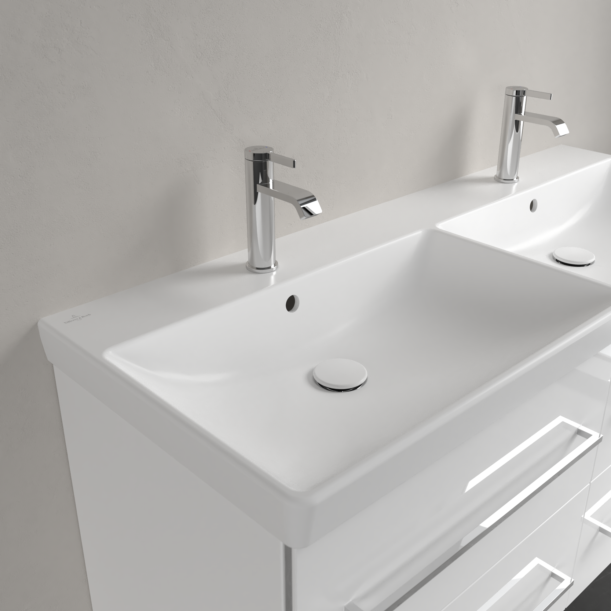 Avento Schrank-Doppelwaschtisch, 1200x470x160mm, mit Überlauf, Stone White CeramicPlus
