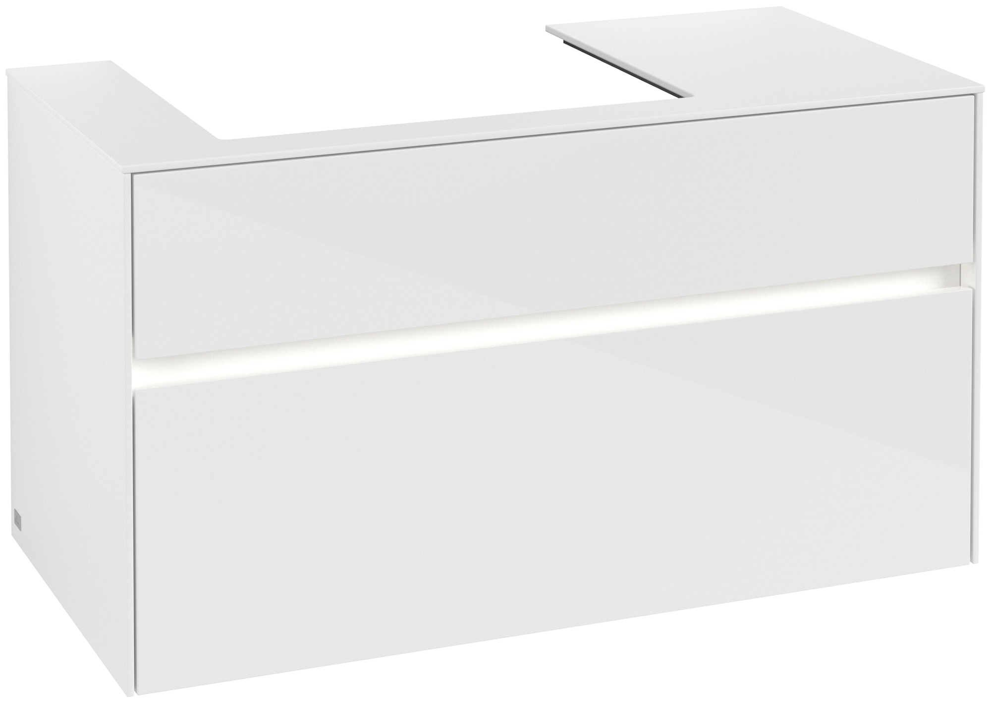 Collaro Waschbeckenunterschrank, mit Beleuchtung, 2 Auszüge, 1000x548x500mm, Korpus: Glossy White, Front: Glossy White