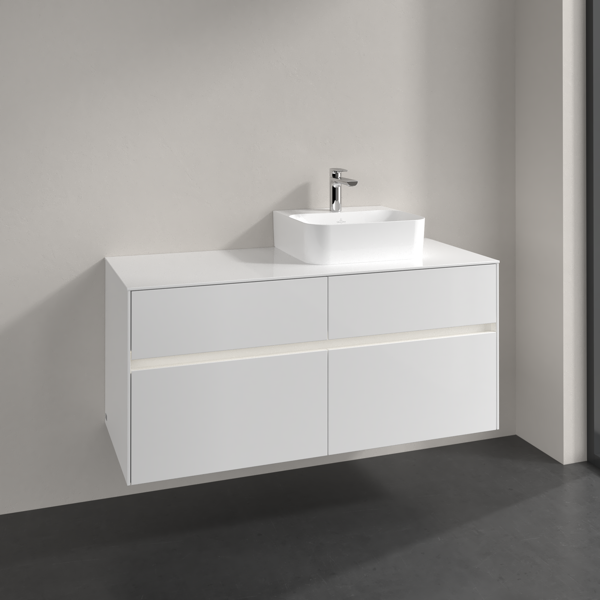 Collaro Waschbeckenunterschrank, mit Beleuchtung, 4 Auszüge, 1200x548x500mm, Korpus: Glossy White, Front: Glossy White