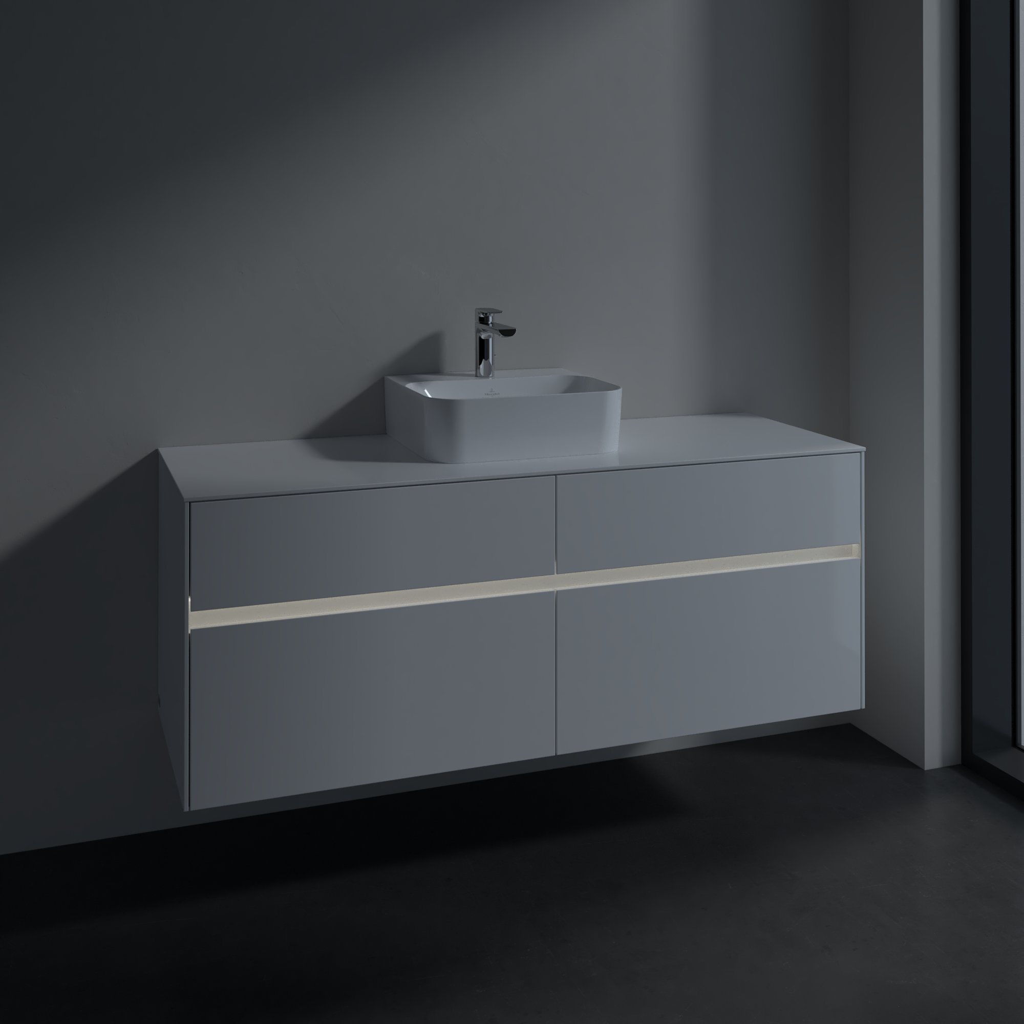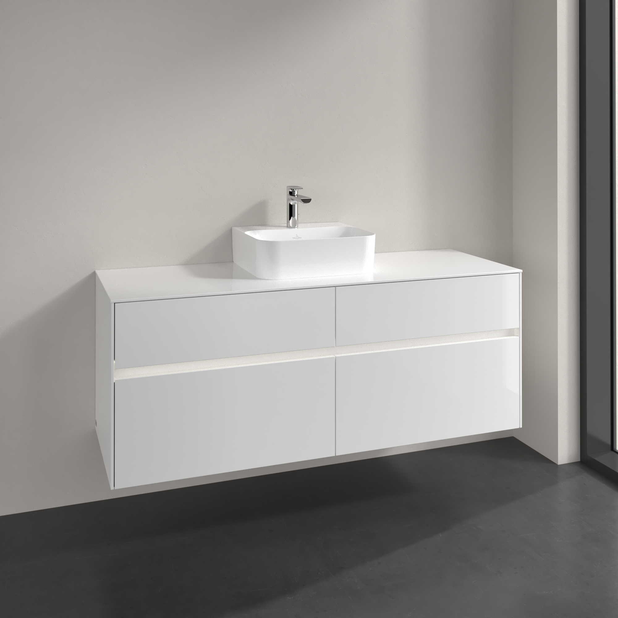 Collaro Waschbeckenunterschrank, mit Beleuchtung, 4 Auszüge, 1400x548x500mm, Korpus: Glossy White, Front: Glossy White