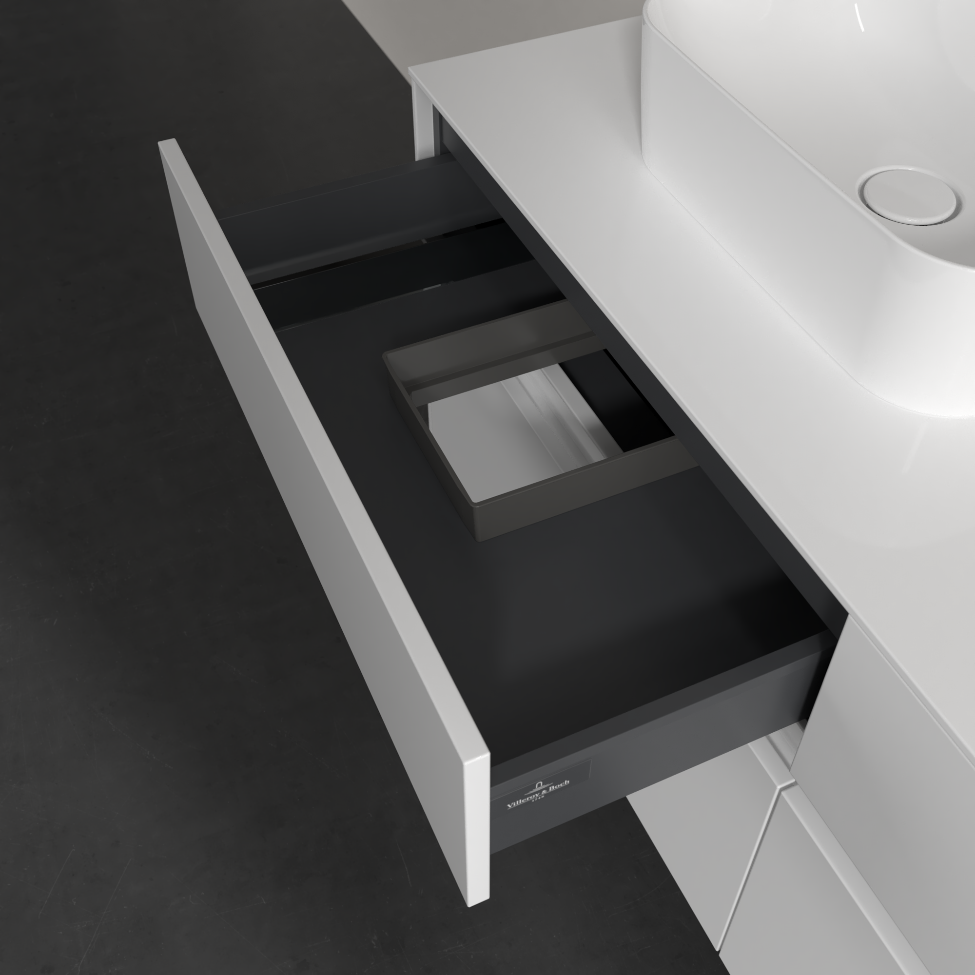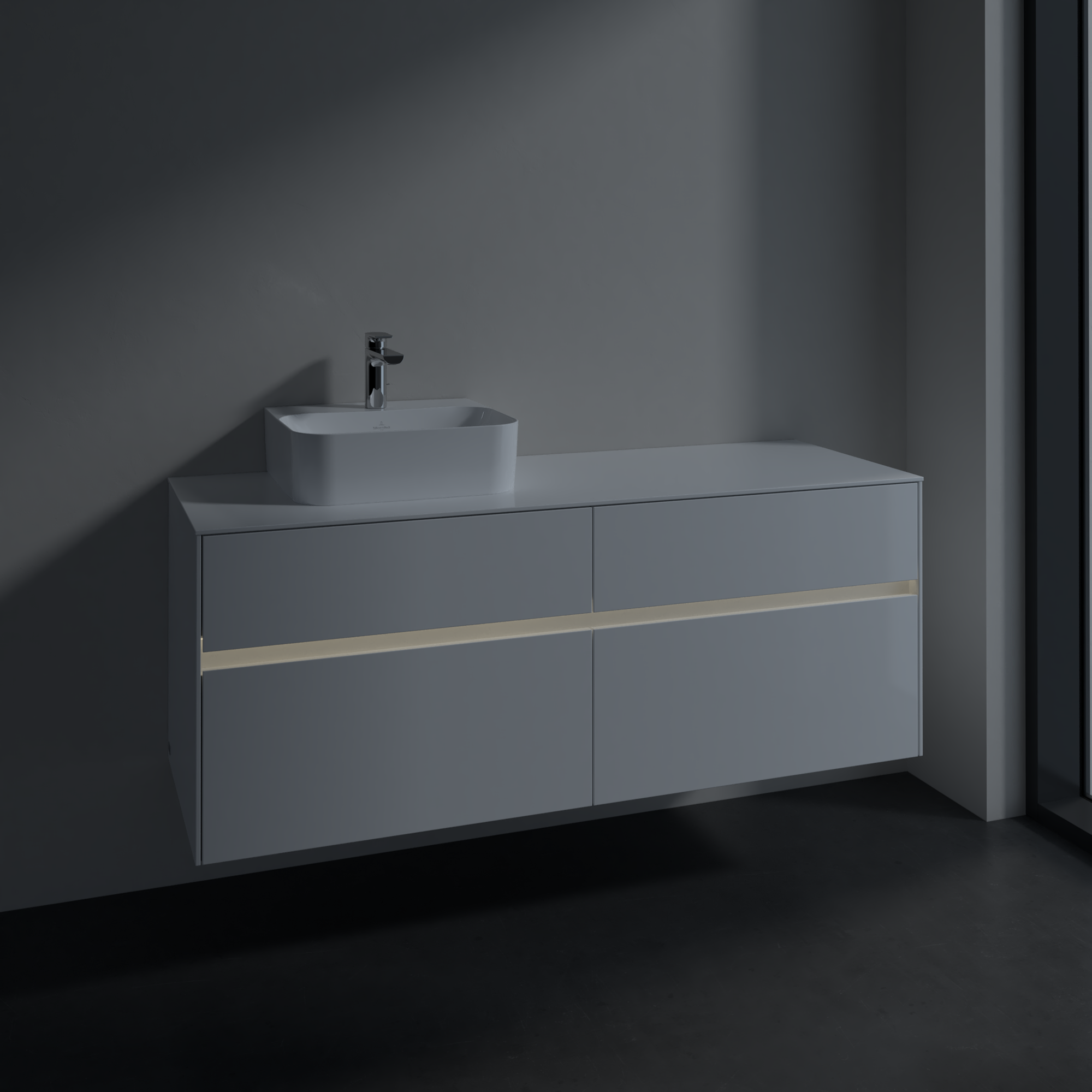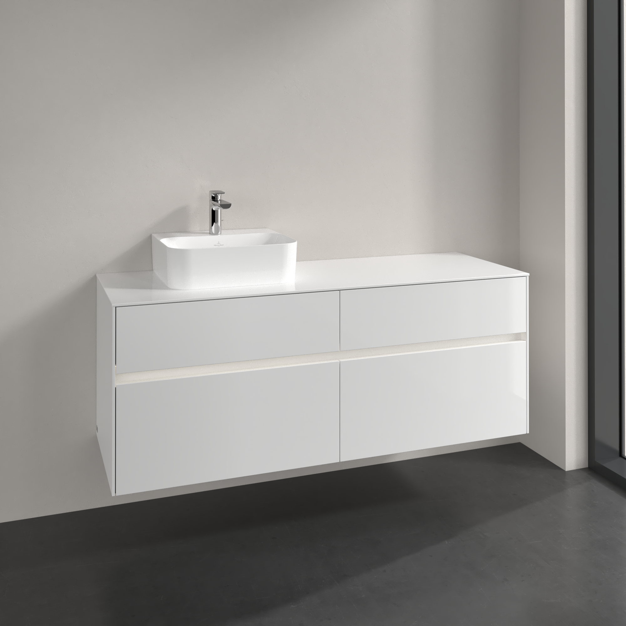 Collaro Waschbeckenunterschrank, mit Beleuchtung, 4 Auszüge, 1400x548x500mm, Korpus: Glossy White, Front: Glossy White
