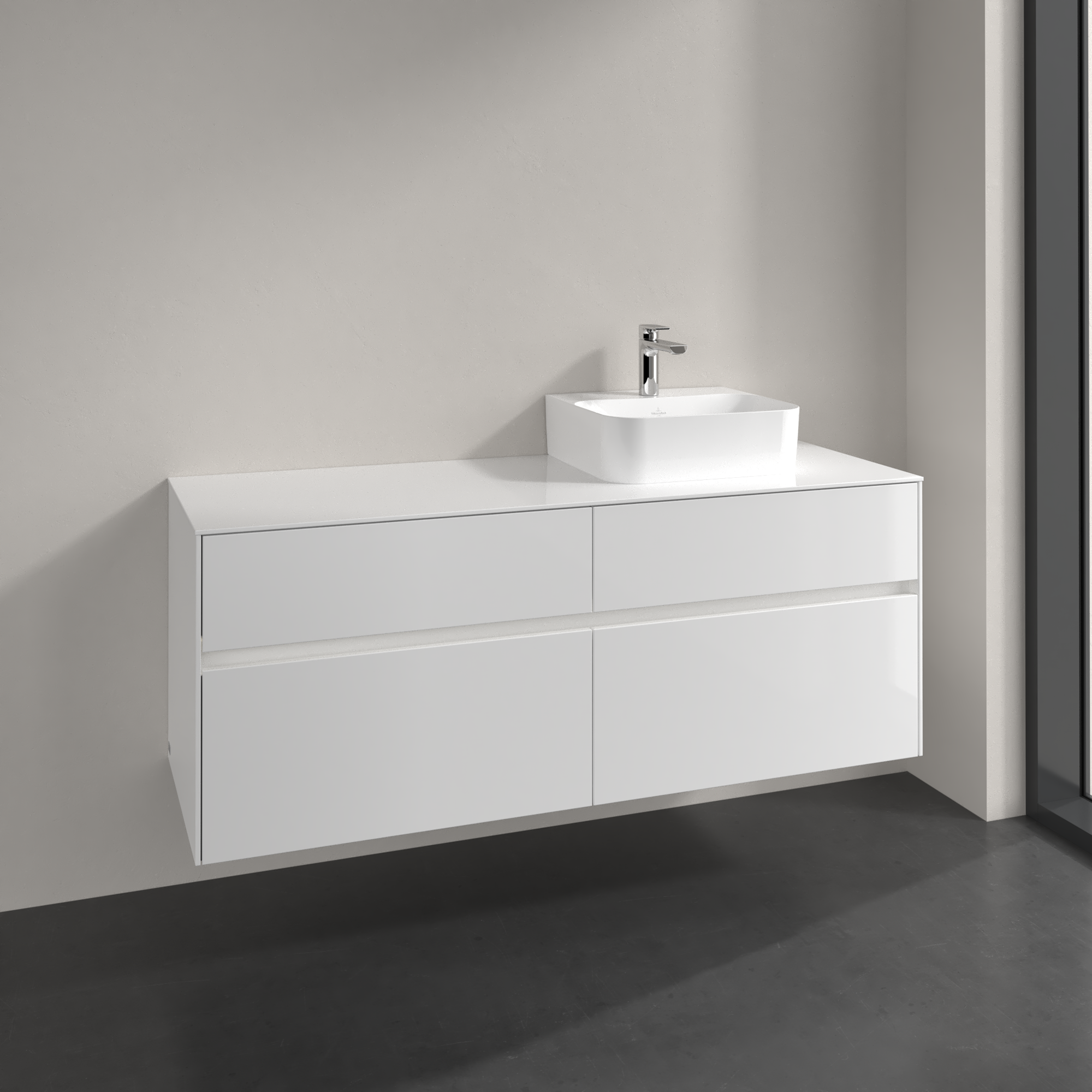 Collaro Waschbeckenunterschrank, mit Beleuchtung, 4 Auszüge, 1400x548x500mm, Korpus: Glossy White, Front: Glossy White