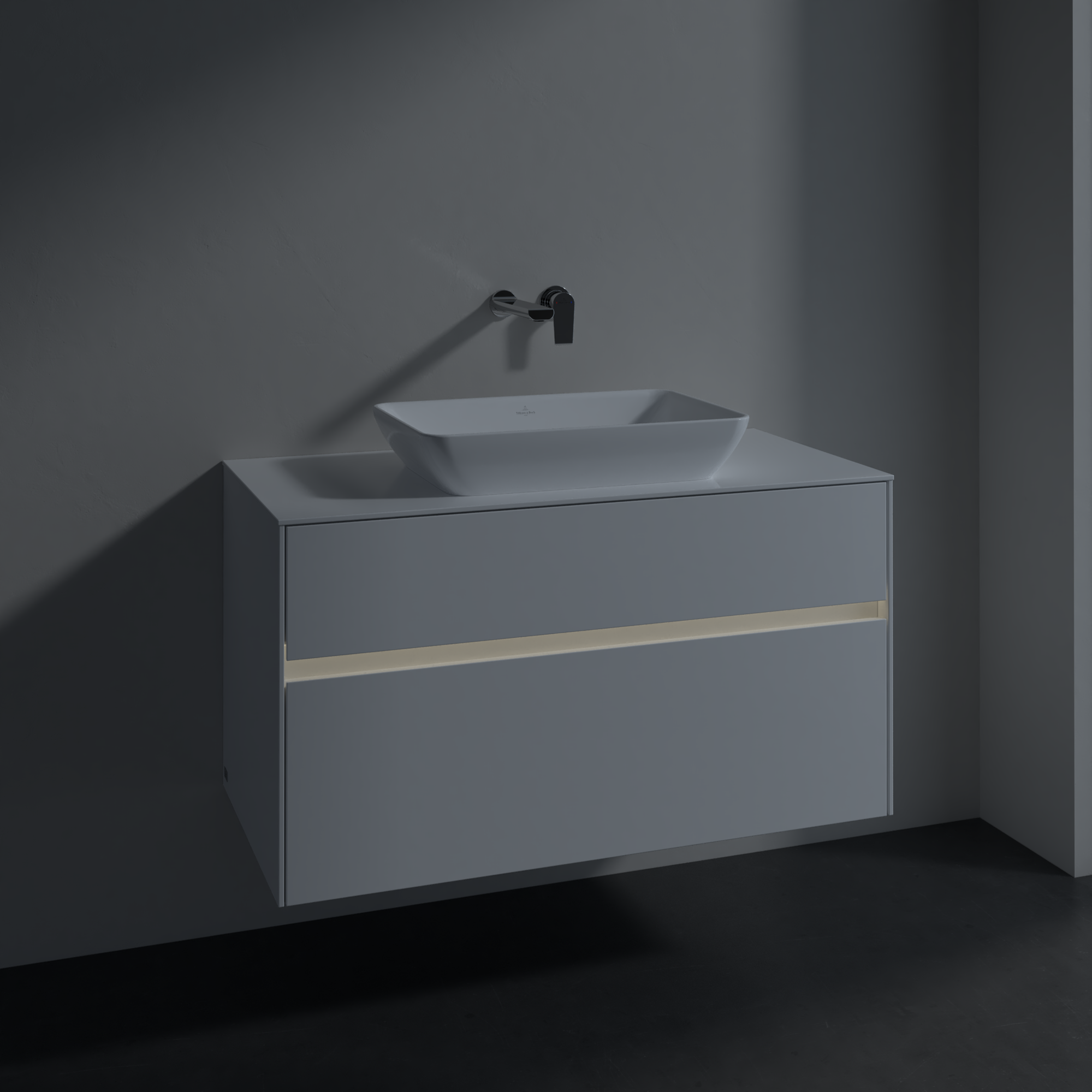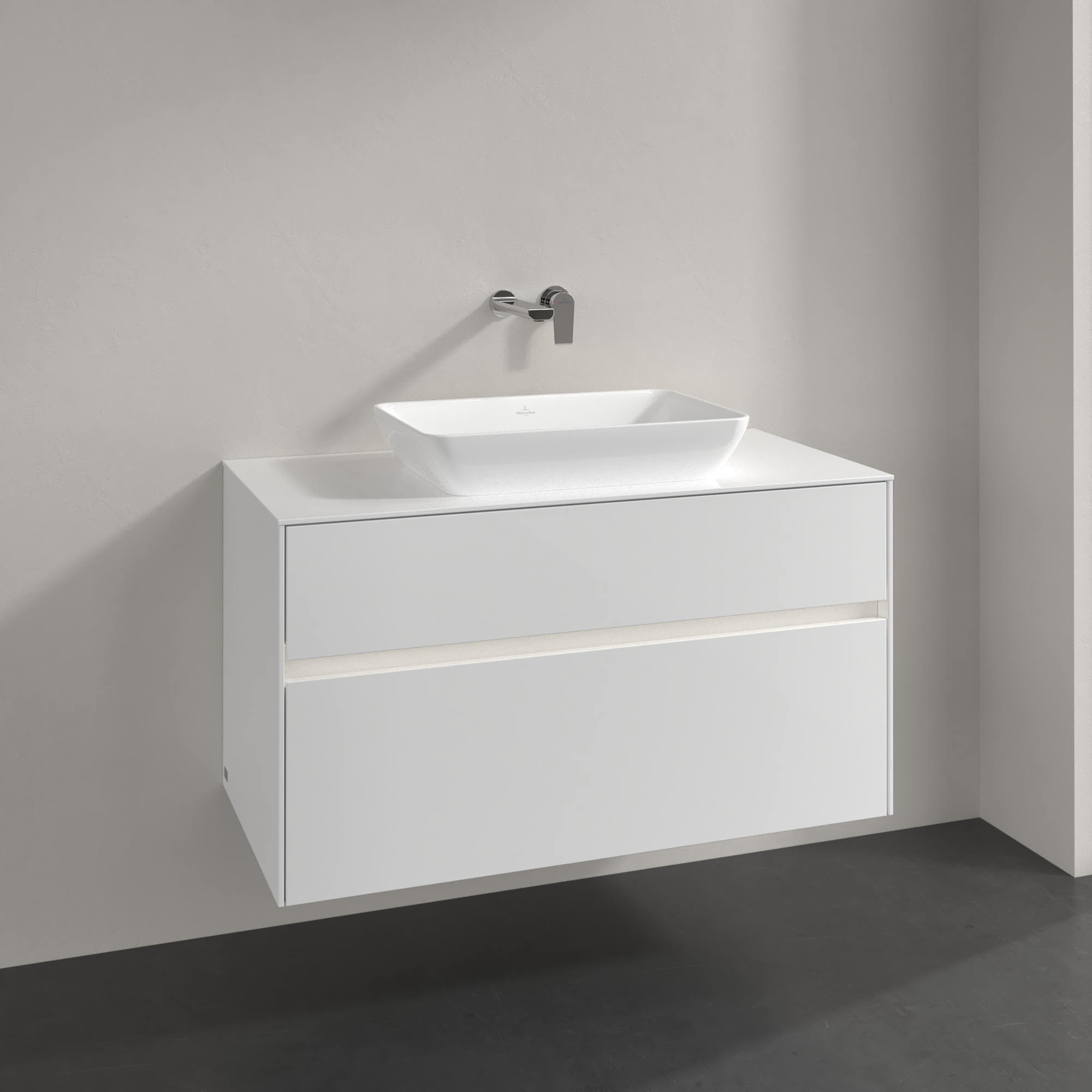 Collaro Waschbeckenunterschrank, mit Beleuchtung, 2 Auszüge, 1000x548x500mm, Korpus: Glossy White, Front: Glossy White