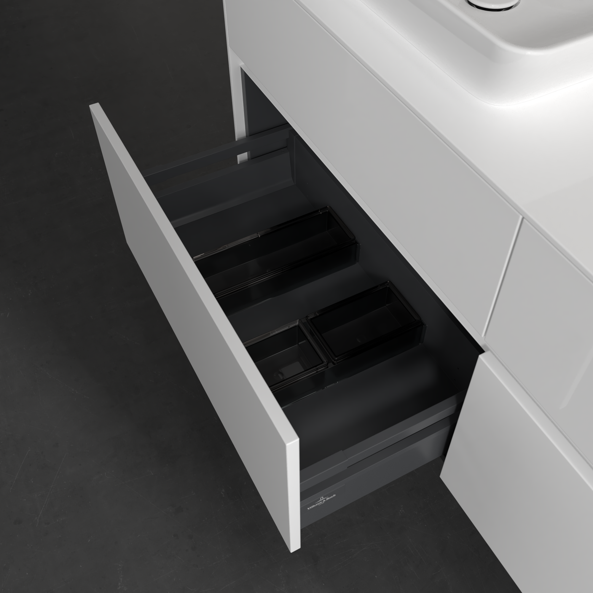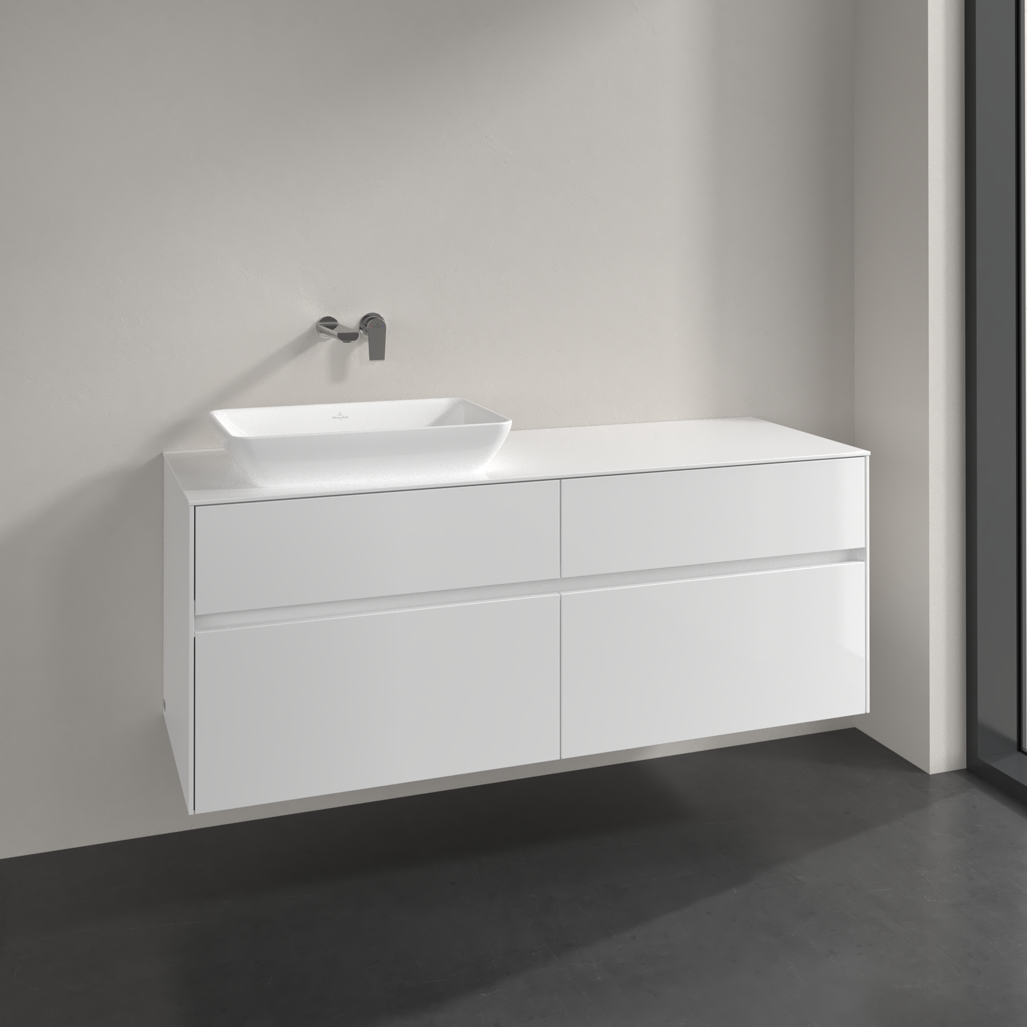 Collaro Waschbeckenunterschrank, 4 Auszüge, 1400x548x500mm, Korpus: Glossy White, Front: Glossy White