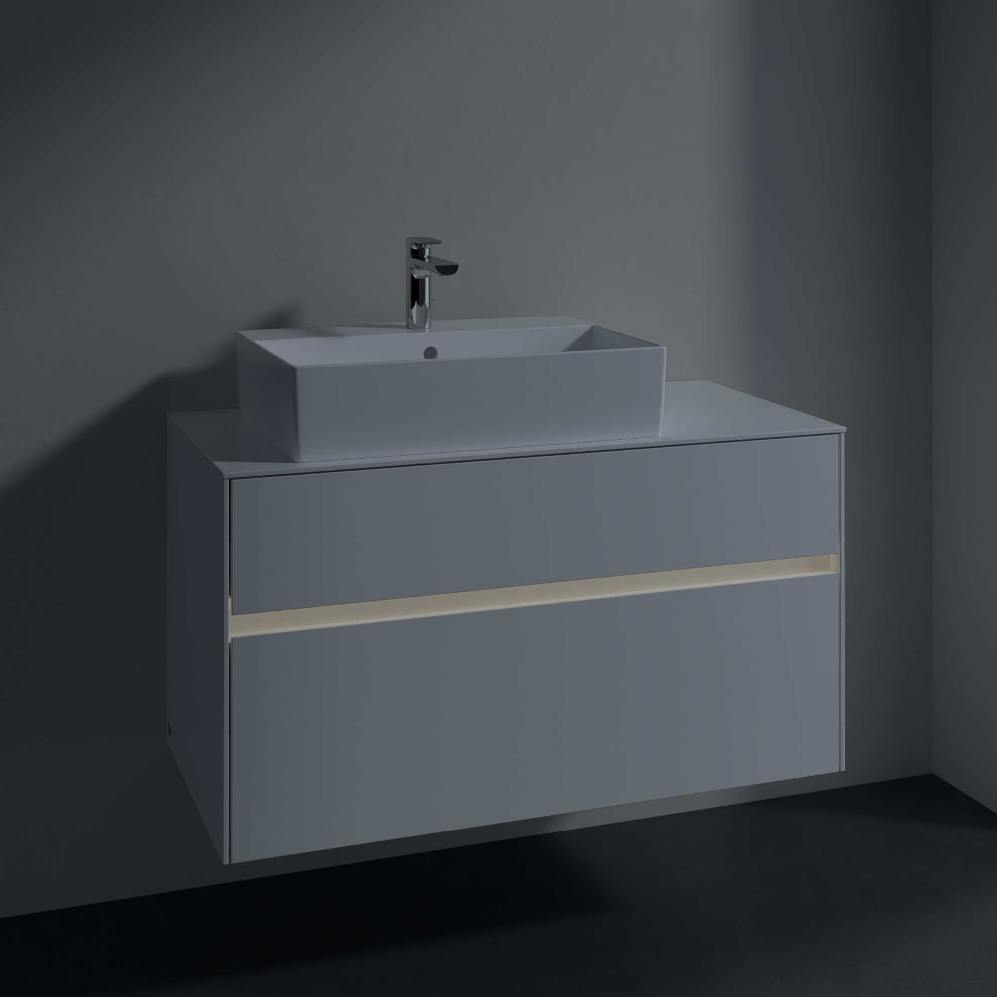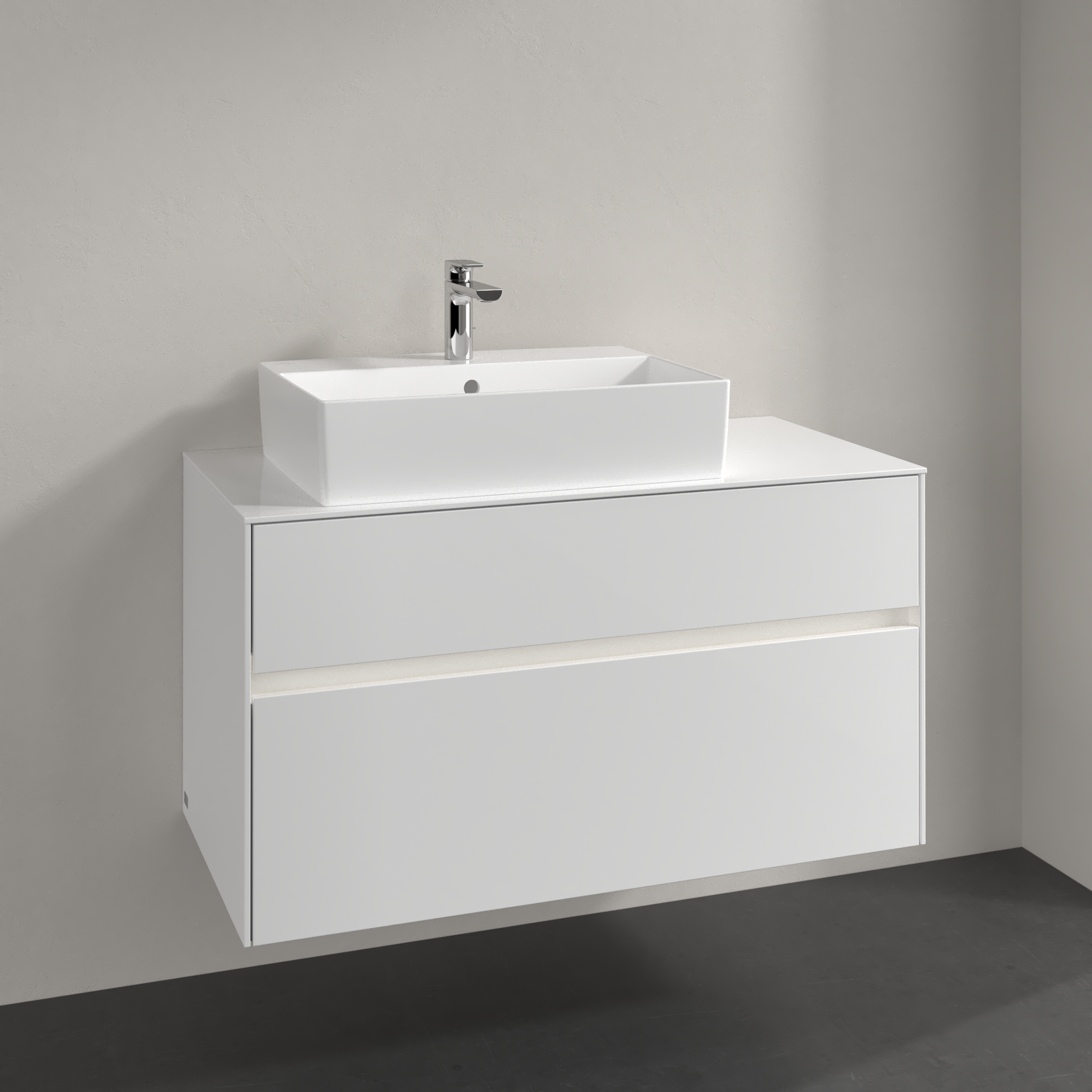 Collaro Waschbeckenunterschrank, mit Beleuchtung, 2 Auszüge, 1000x548x500mm, Korpus: Glossy White, Front: Glossy White