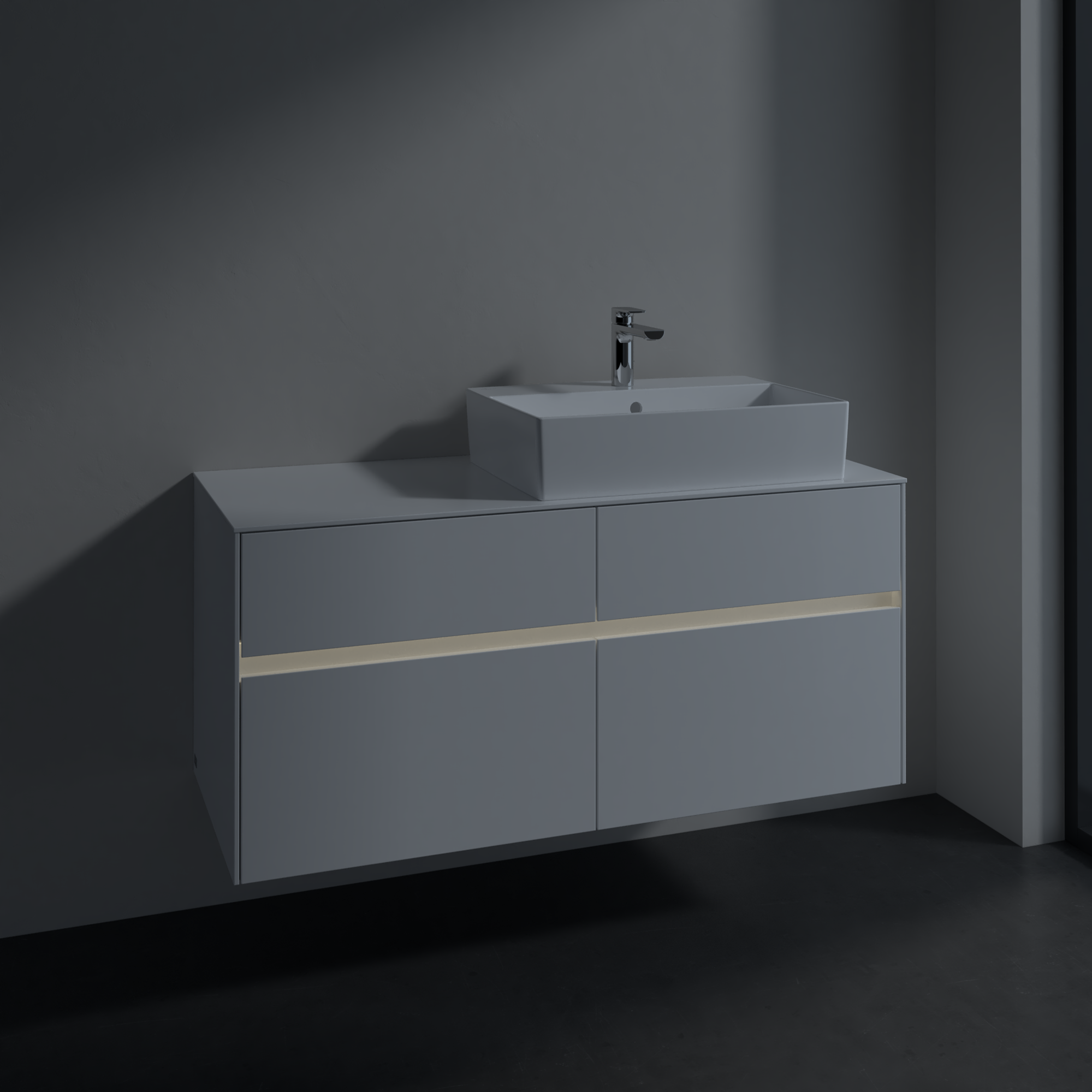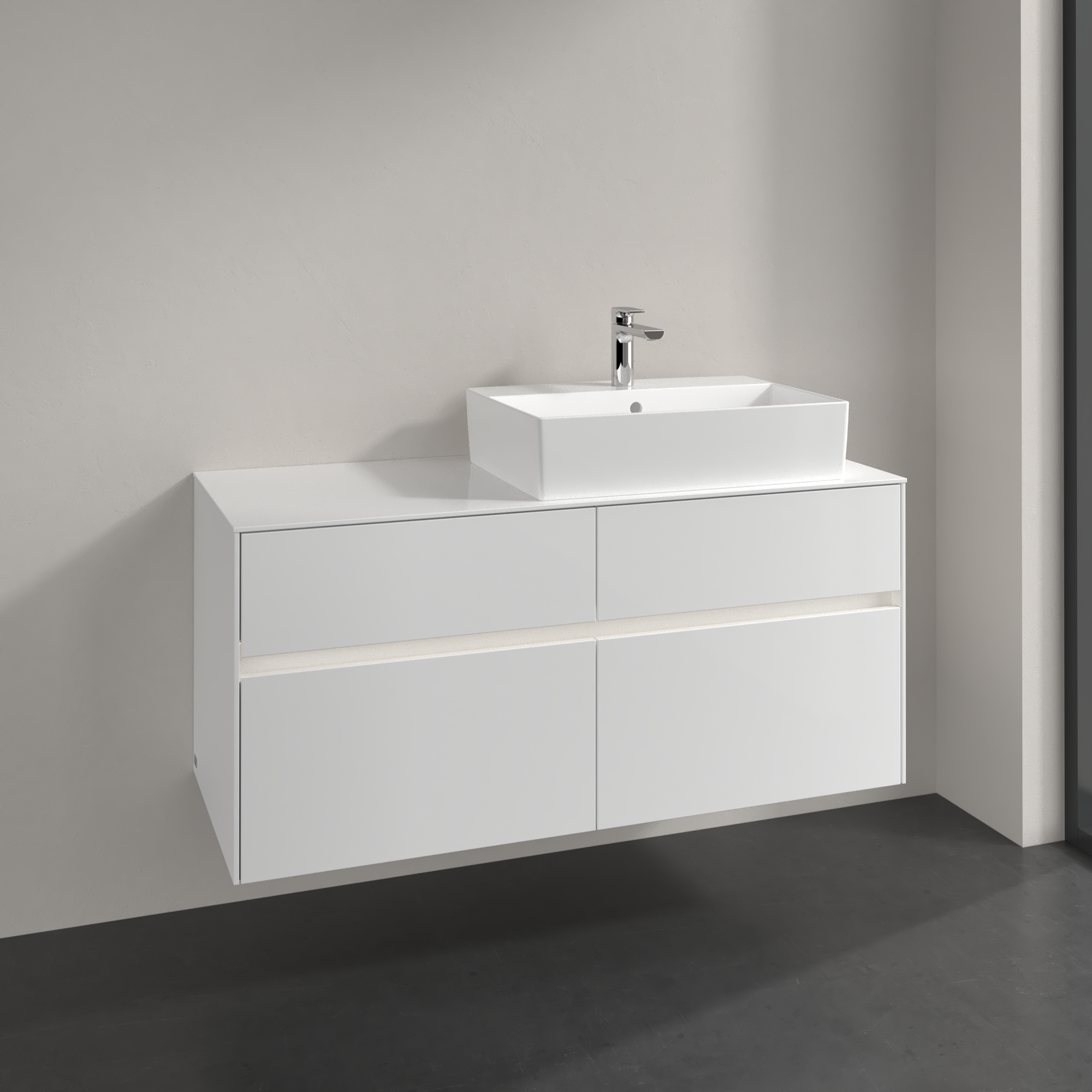 Collaro Waschbeckenunterschrank, mit Beleuchtung, 4 Auszüge, 1200x548x500mm, Korpus: Glossy White, Front: Glossy White