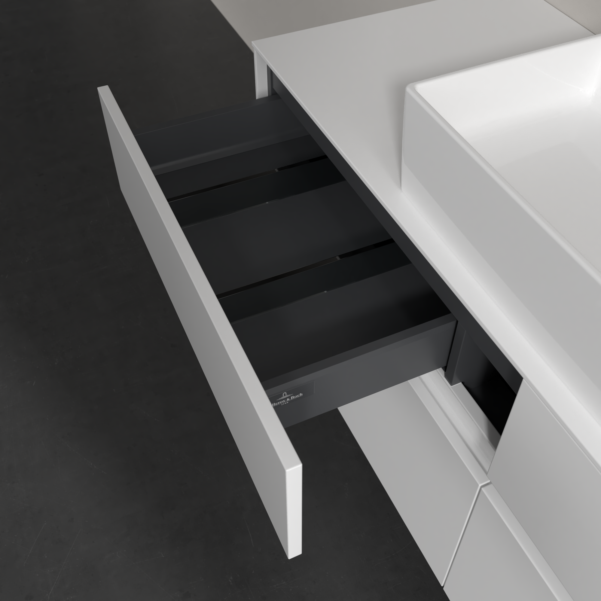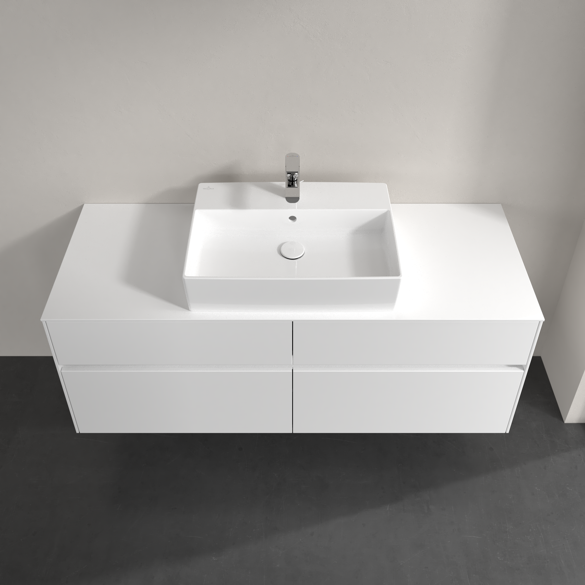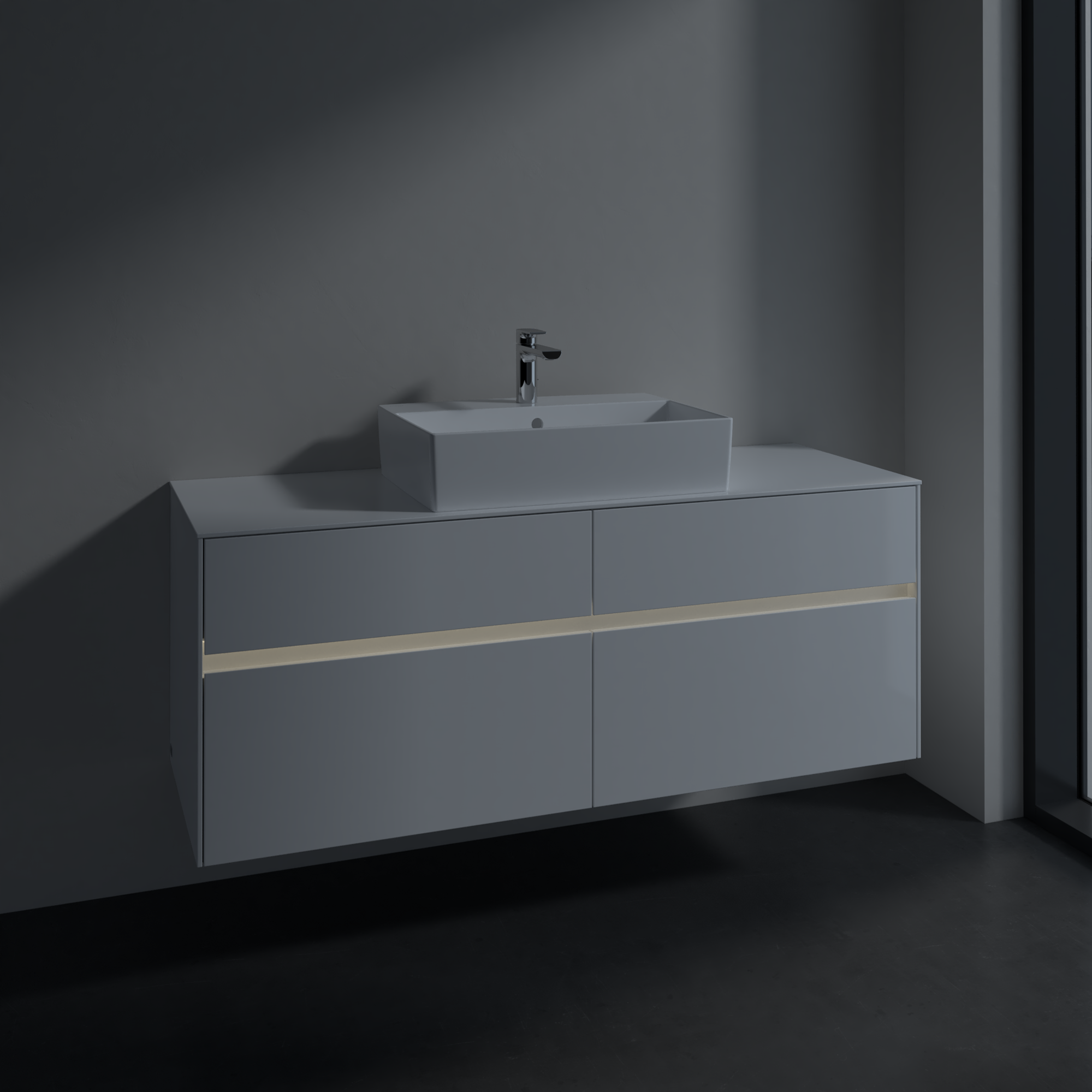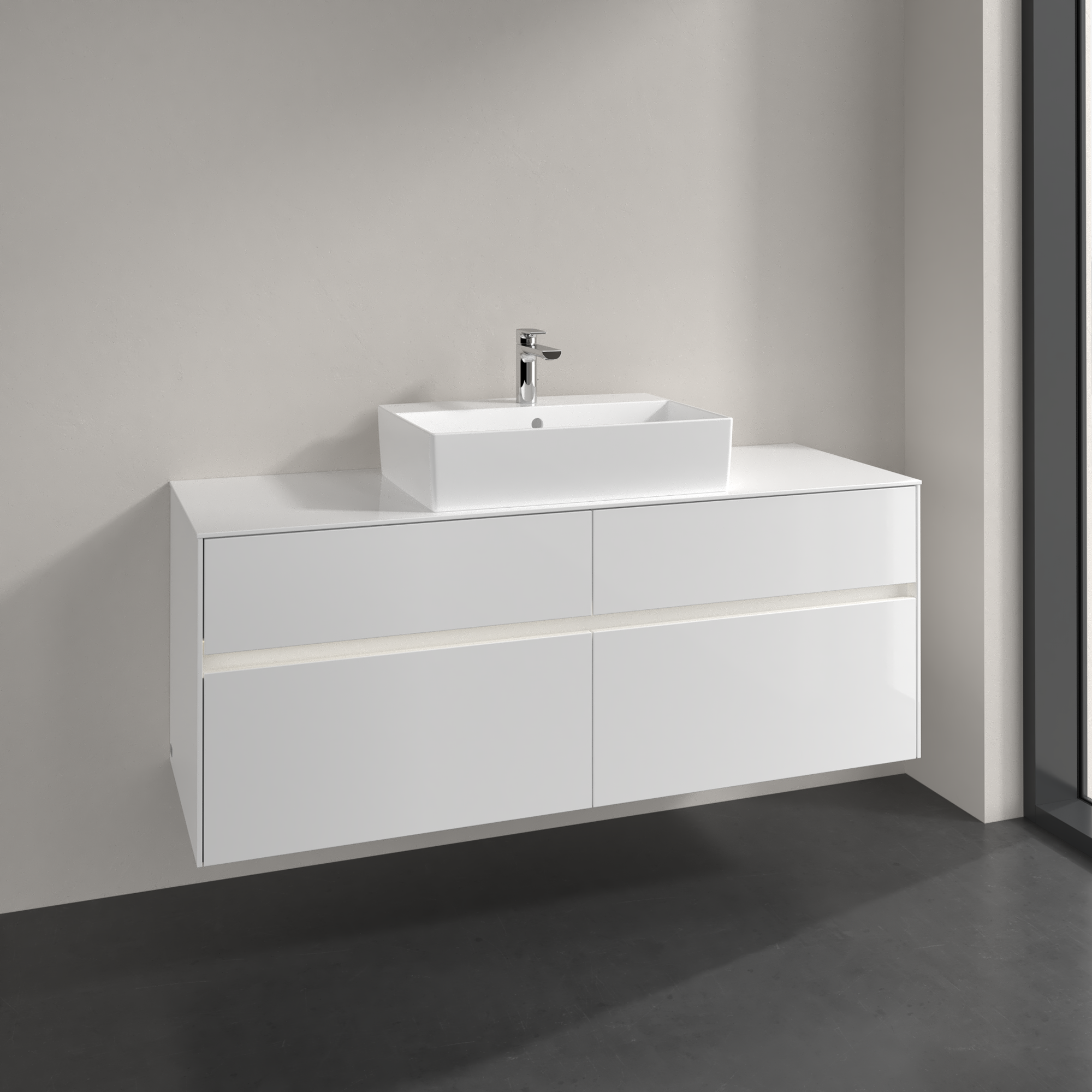 Collaro Waschbeckenunterschrank, mit Beleuchtung, 4 Auszüge, 1400x548x500mm, Korpus: Glossy White, Front: Glossy White