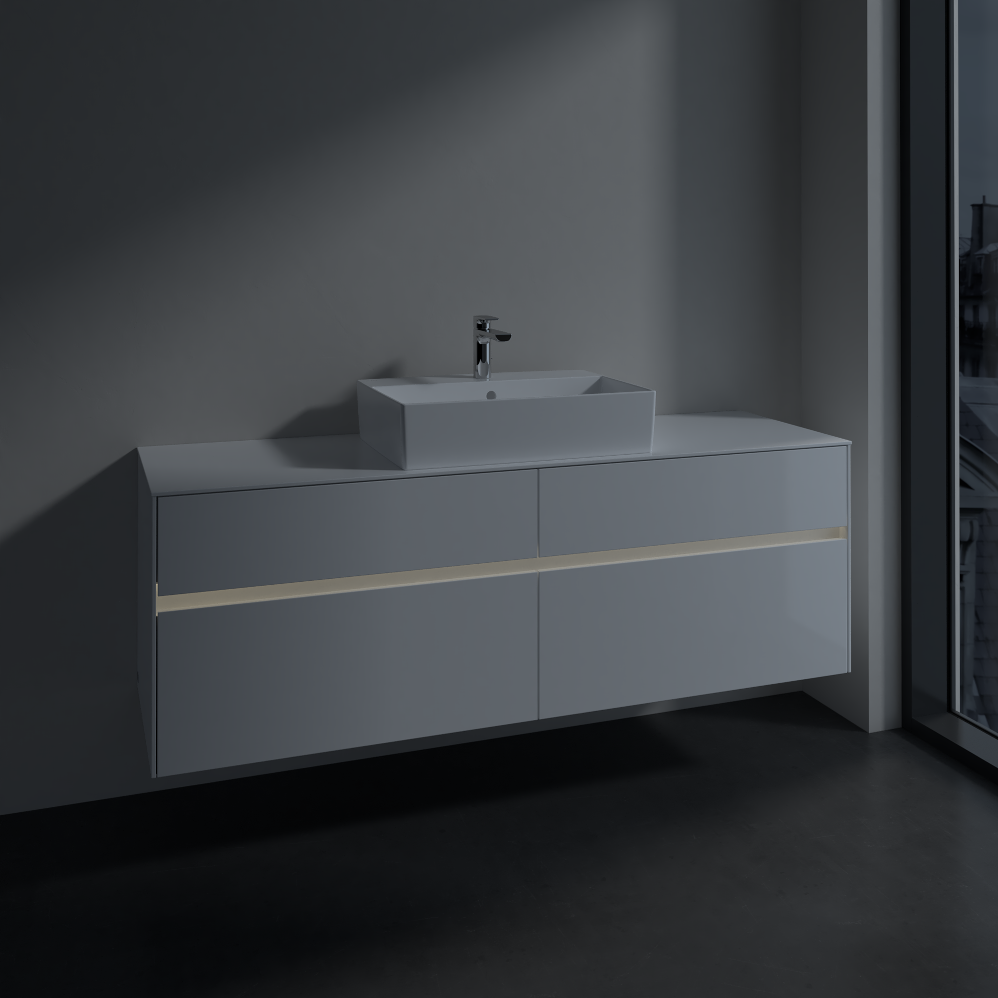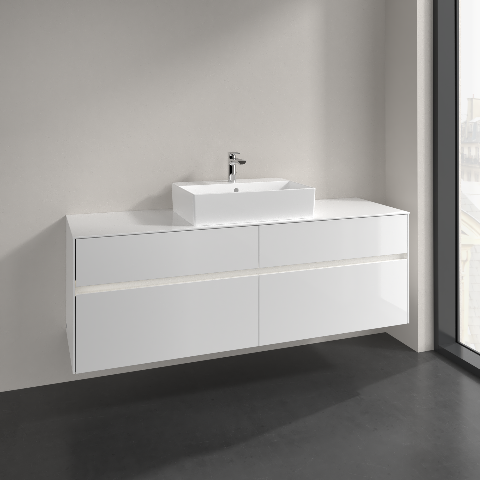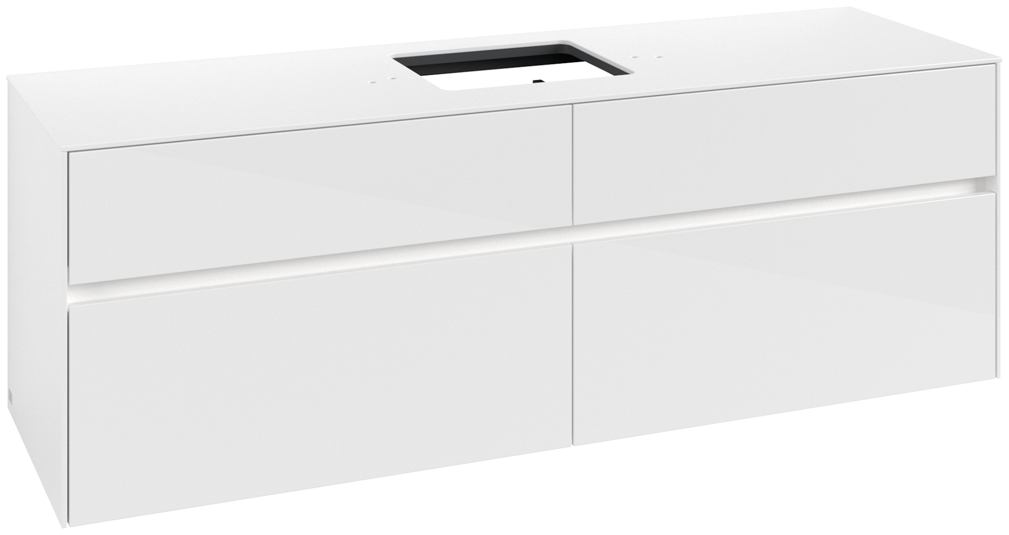 Collaro Waschbeckenunterschrank, mit Beleuchtung, 4 Auszüge, 1600x548x500mm, Korpus: Glossy White, Front: Glossy White