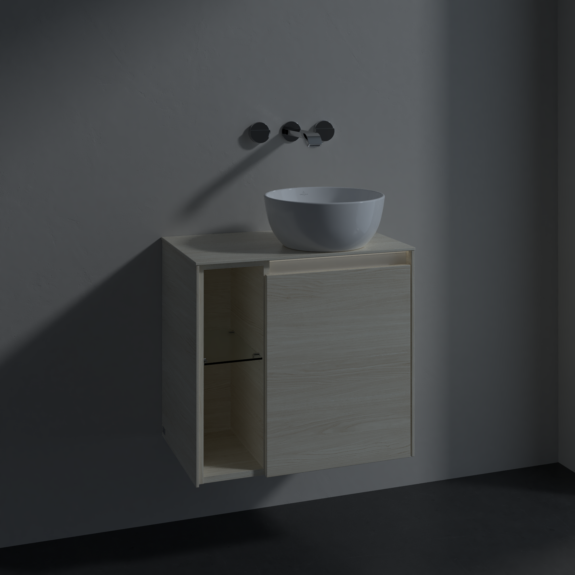 Collaro Waschbeckenunterschrank, mit Beleuchtung, 1 Tür, 600x548x380mm, Korpus: White Oak, Front: White Oak