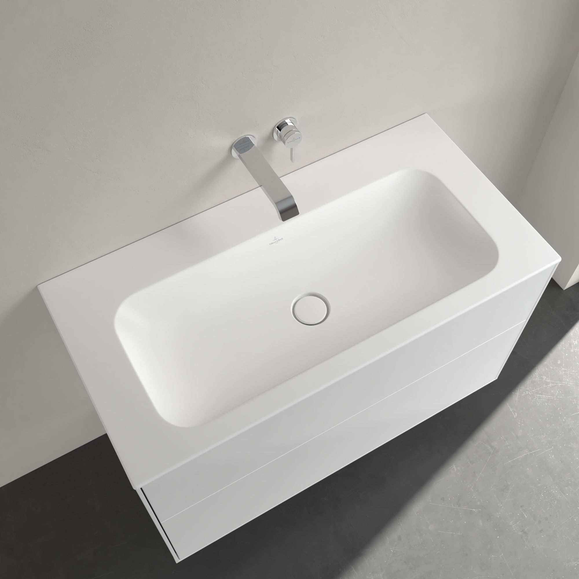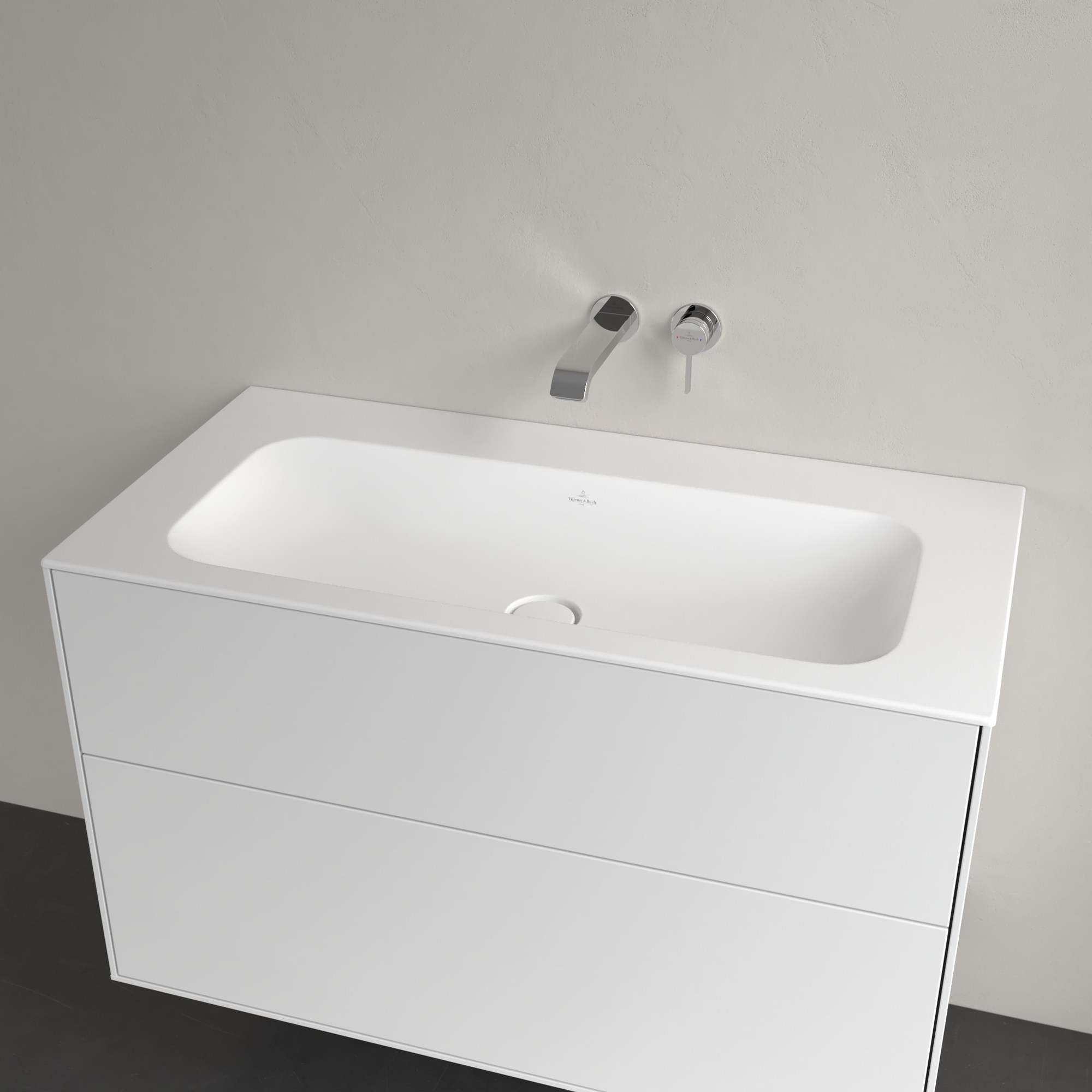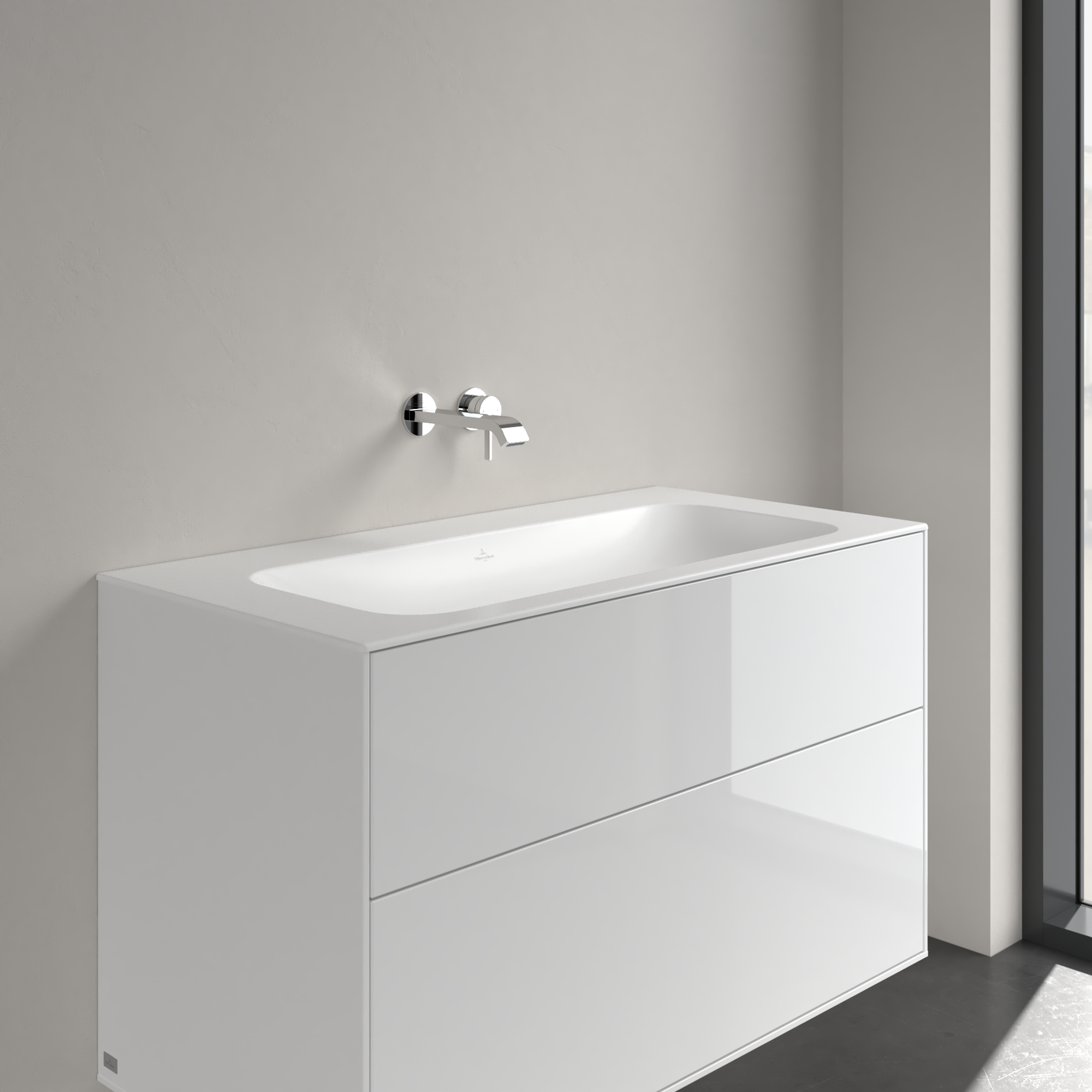 Villeroy & Boch Finion Waschbeckenunterschrank, 2 Auszüge, 996x591x498mm, Korpus: Glossy White Lacquer, Front: Glossy White Lacquer