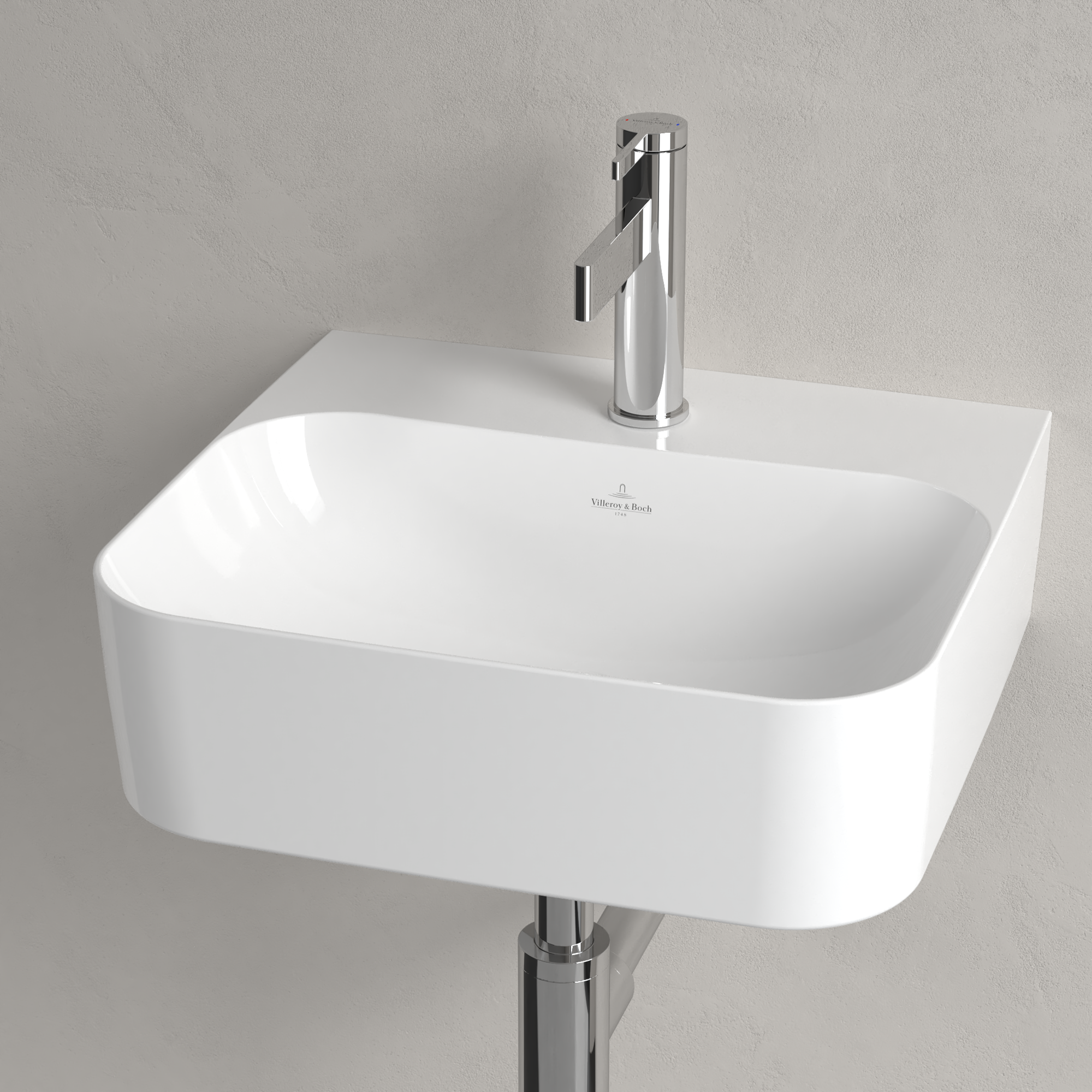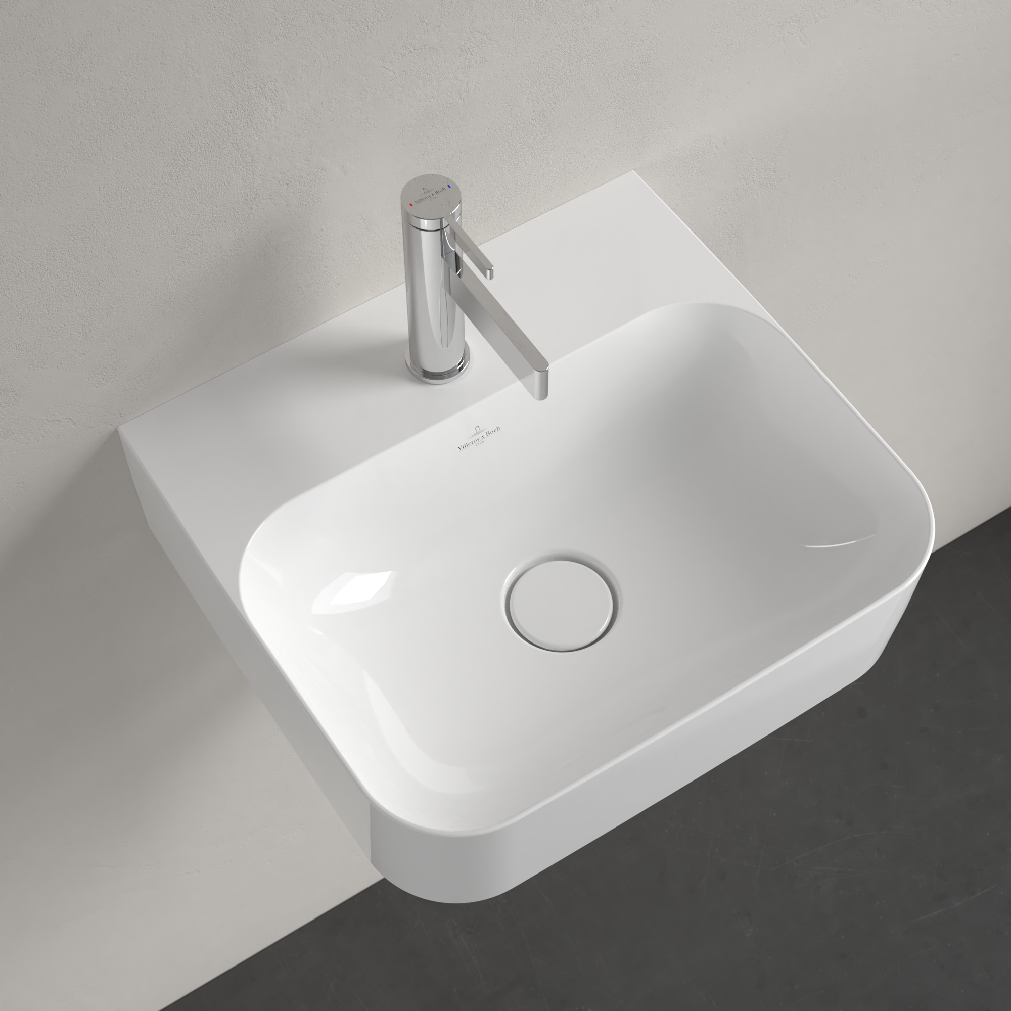 Finion Handwaschbecken, 430x390x140mm, mit verdecktem Überlauf, Weiß Alpin CeramicPlus