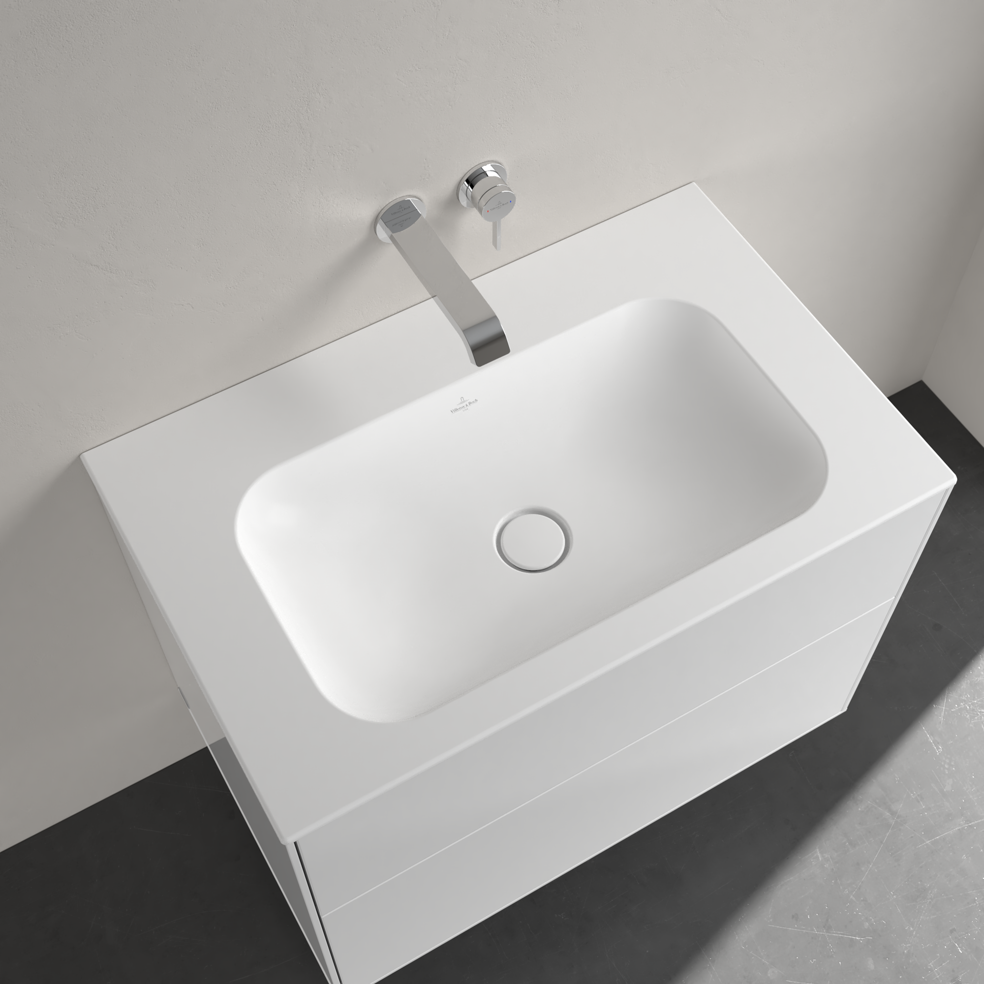 Finion Schrankwaschtisch, 800x500x160mm, ohne Überlauf, Stone White CeramicPlus