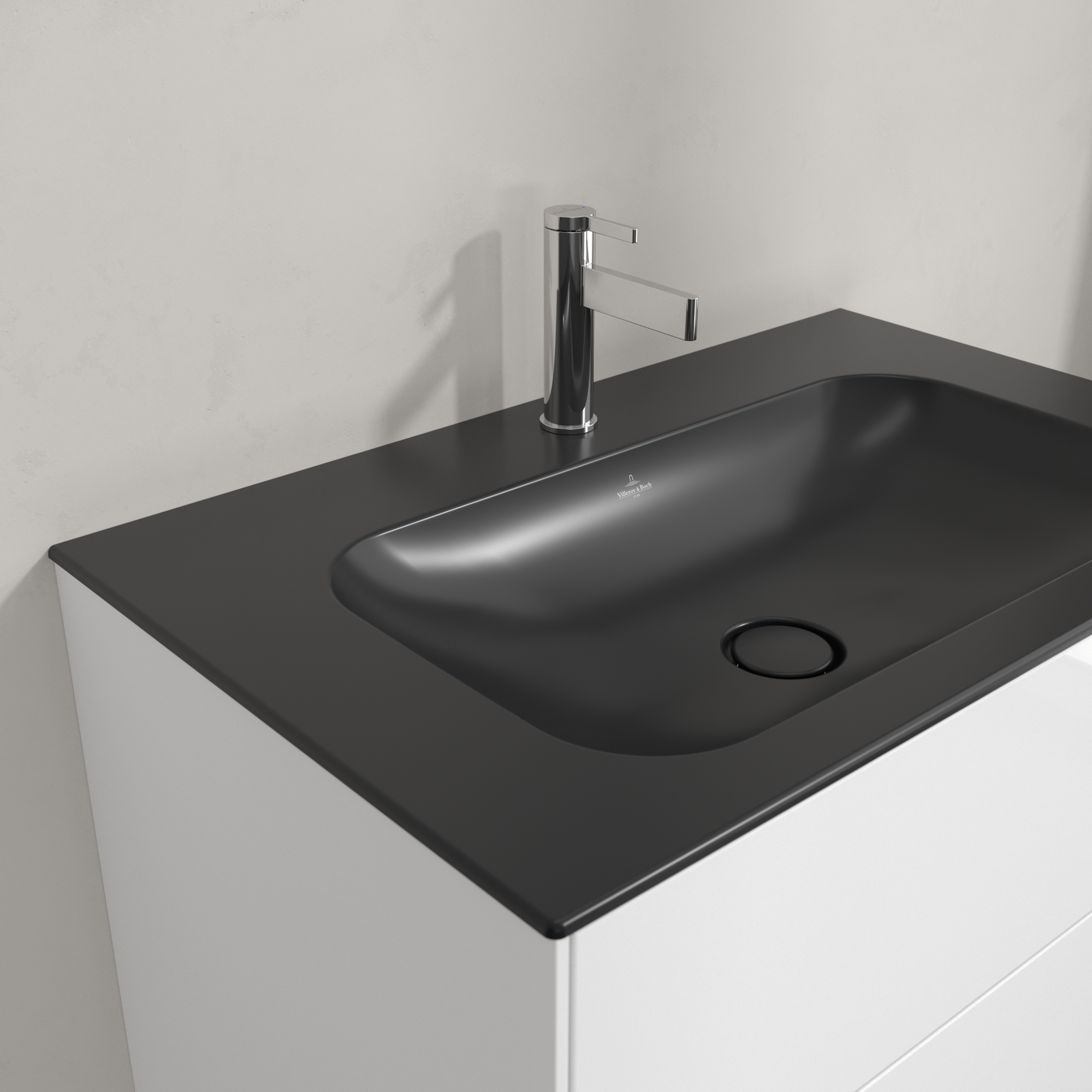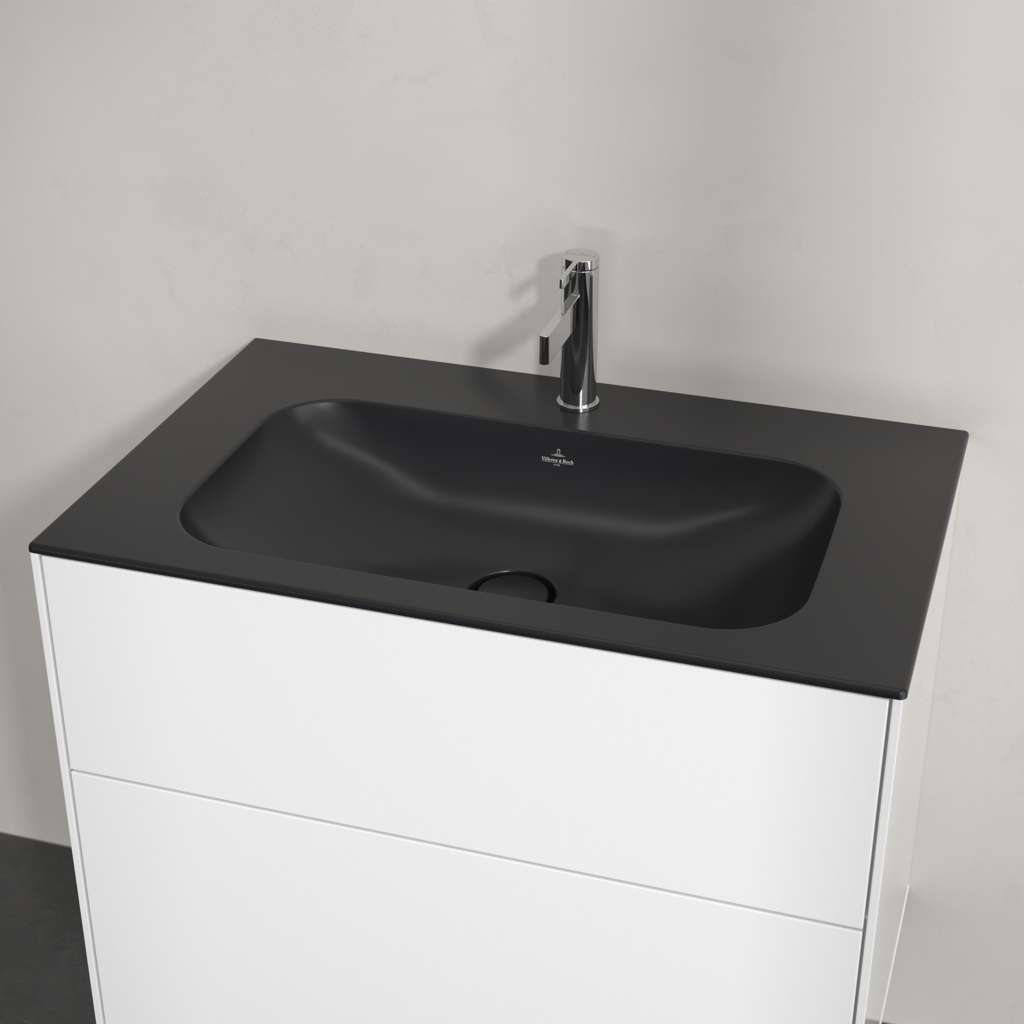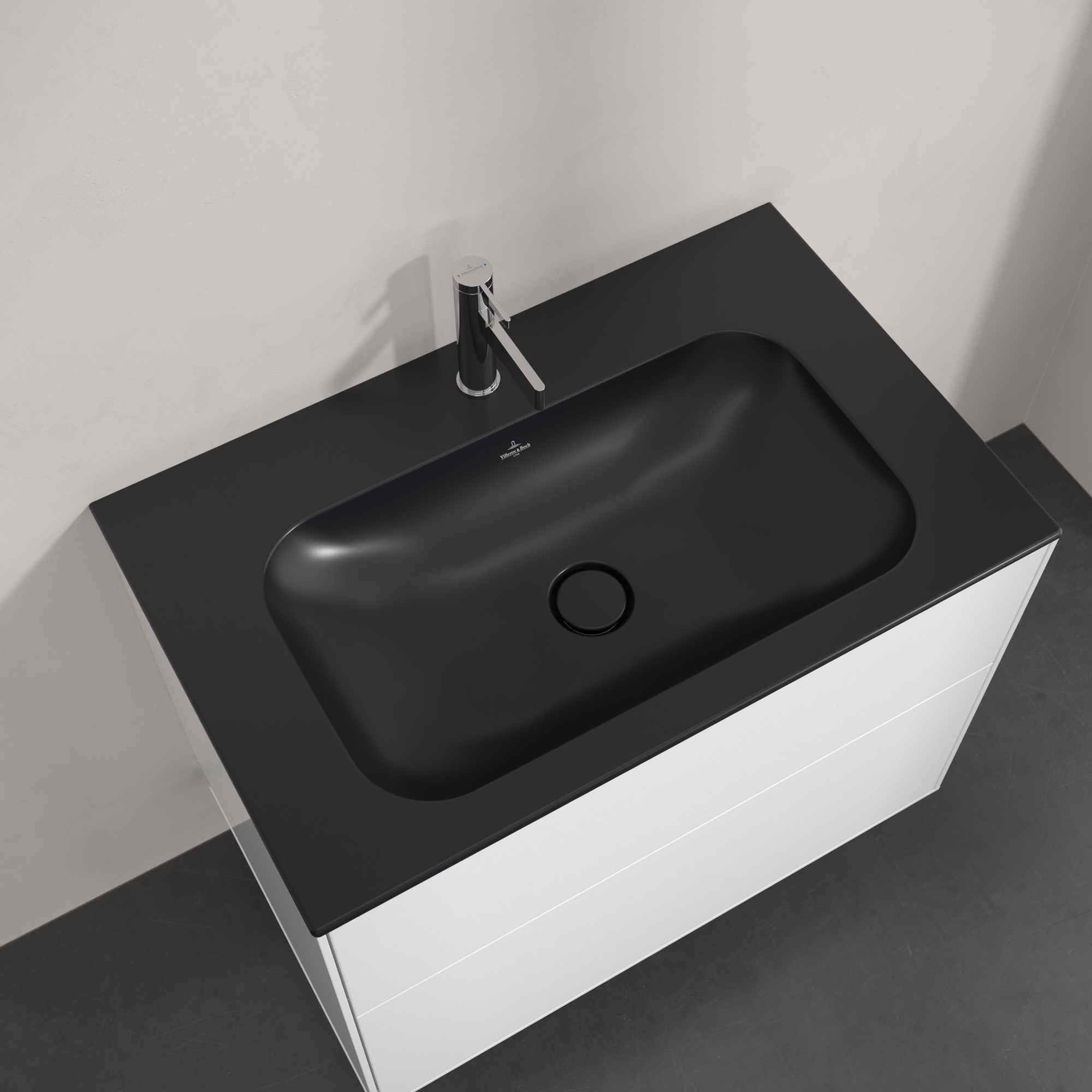 Finion Schrankwaschtisch, 800x500x160mm, mit verdecktem Überlauf, Pure Black CeramicPlus