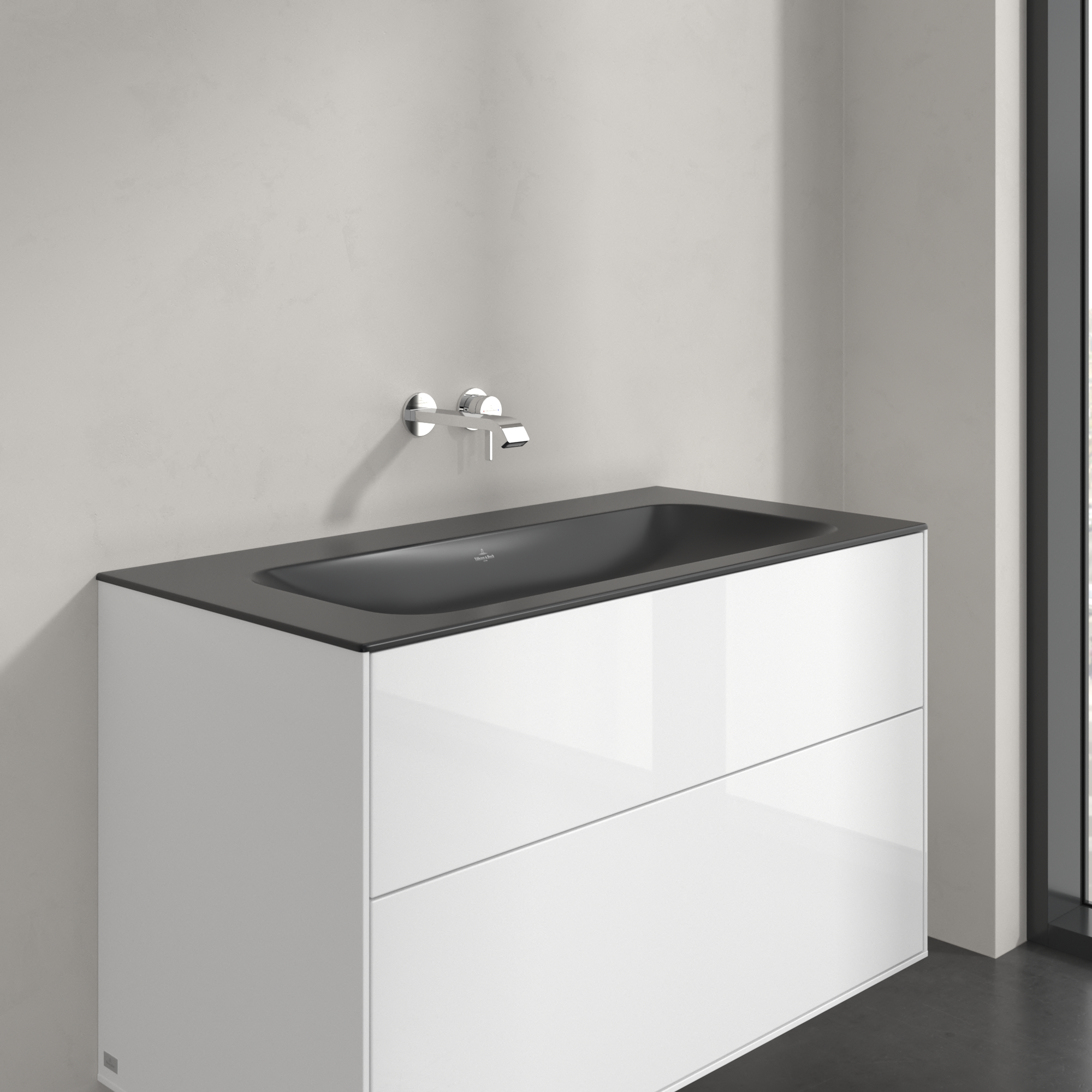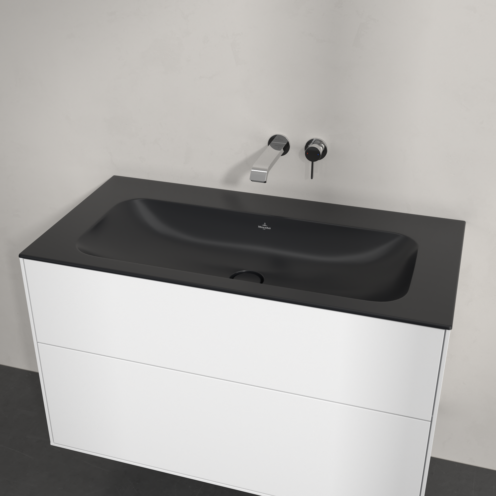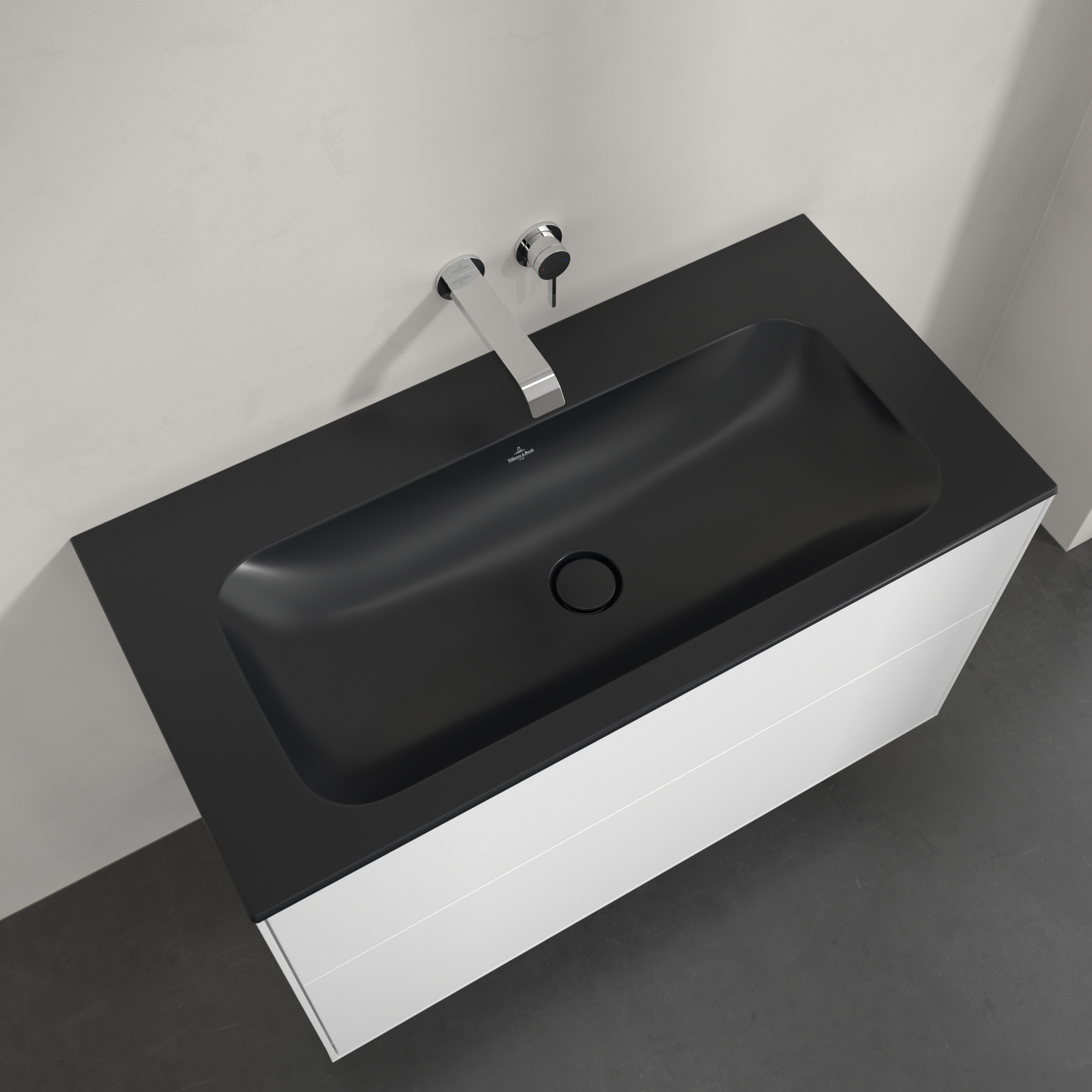 Finion Schrankwaschtisch, 1000x500x160mm, ohne Überlauf, Pure Black CeramicPlus