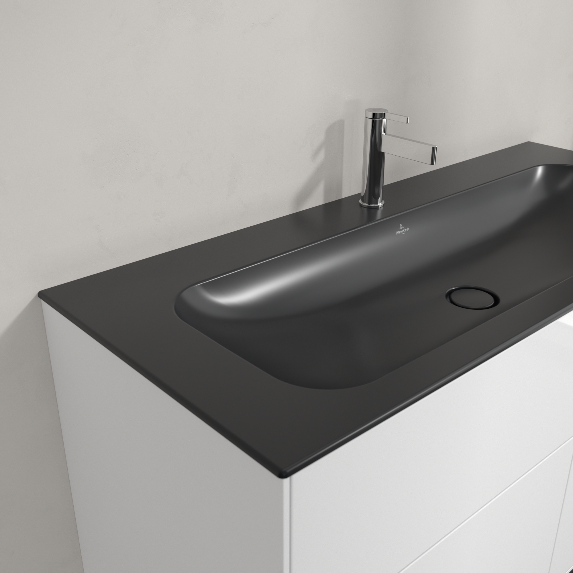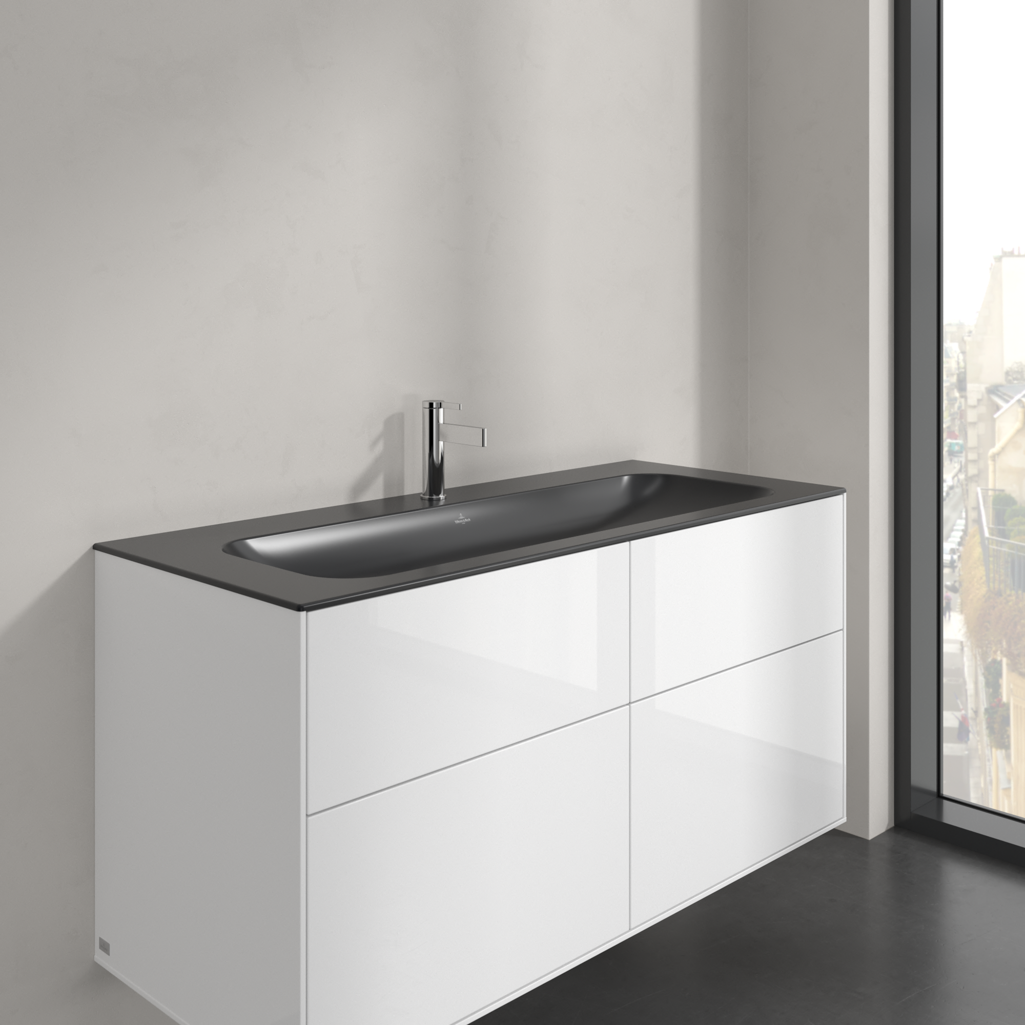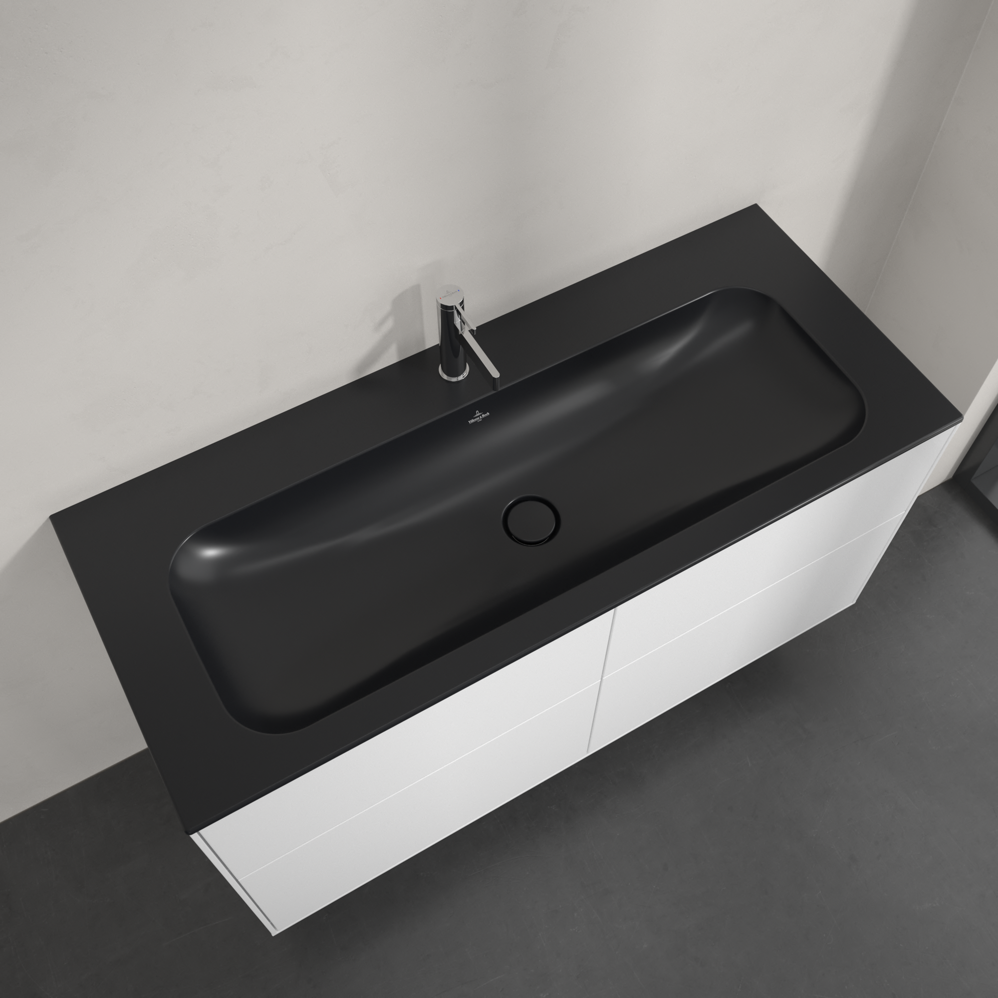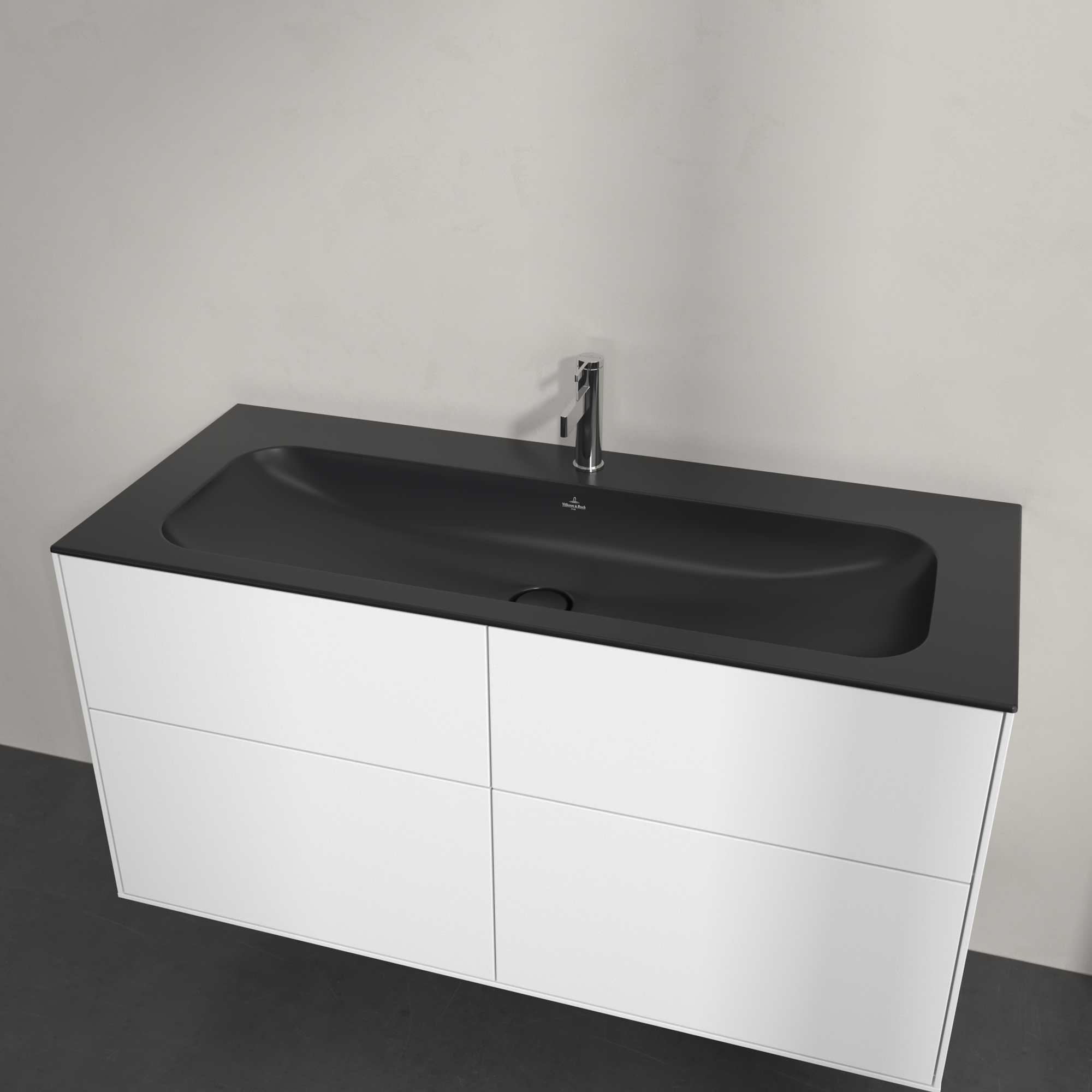 Finion Schrankwaschtisch, 1200x500x160mm, mit verdecktem Überlauf, Pure Black CeramicPlus
