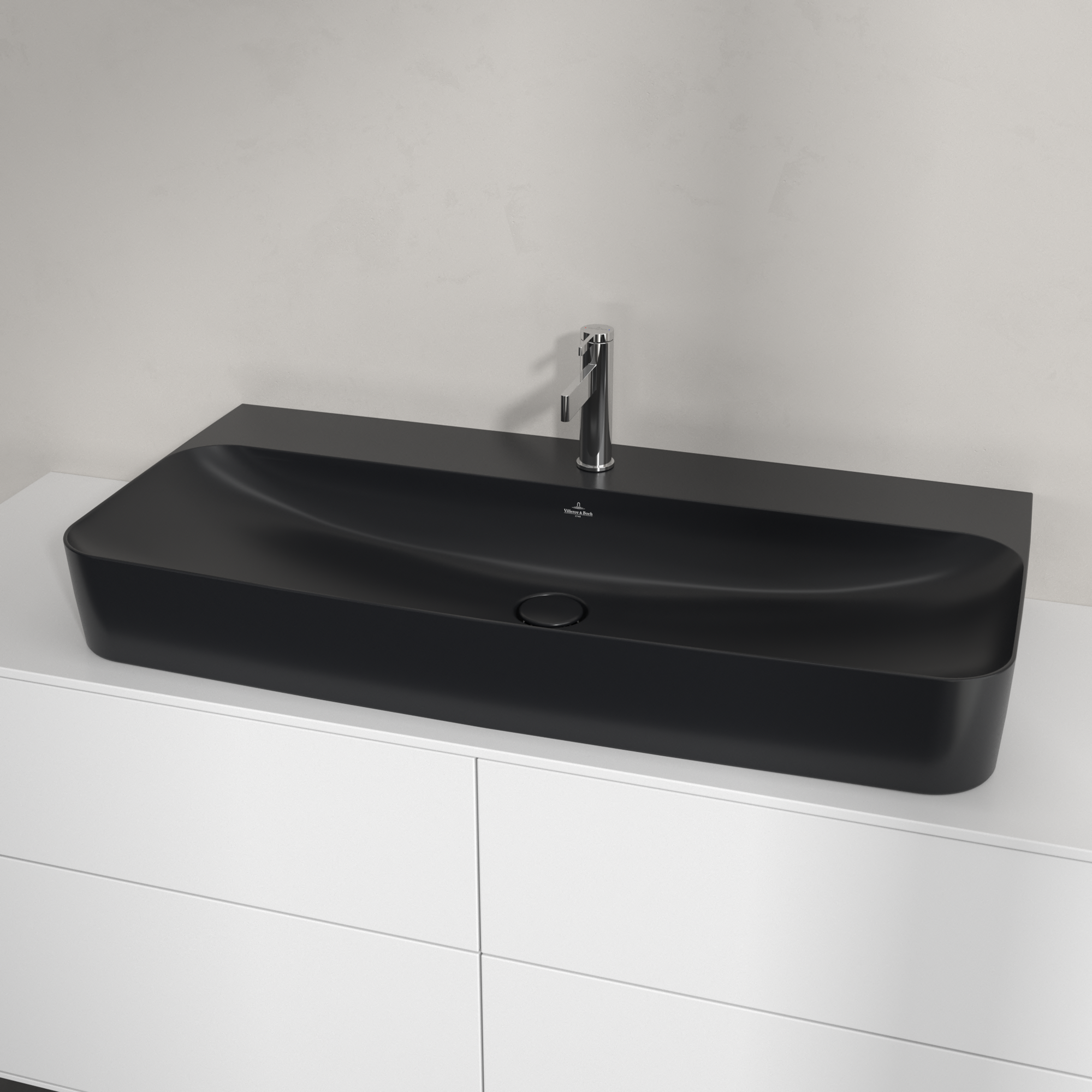 Finion Waschbecken, 1000x470x165mm, ohne Überlauf, Pure Black CeramicPlus