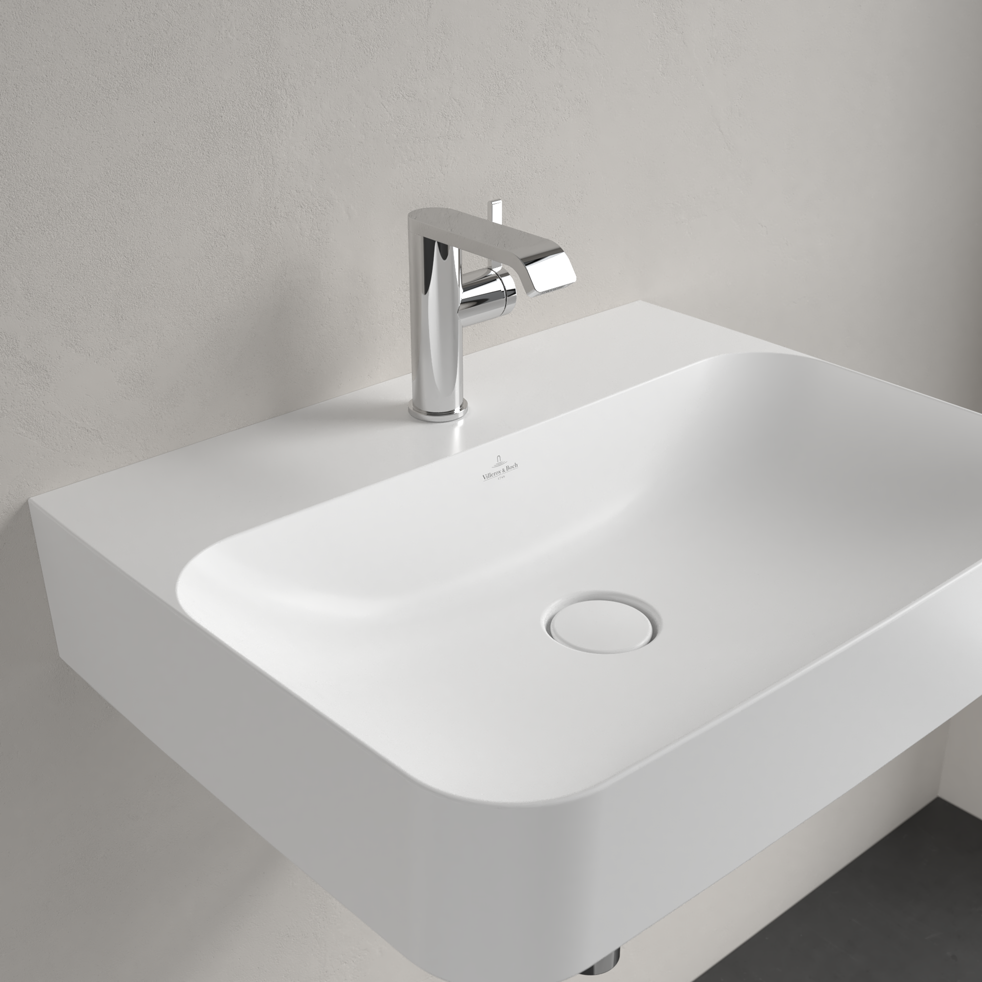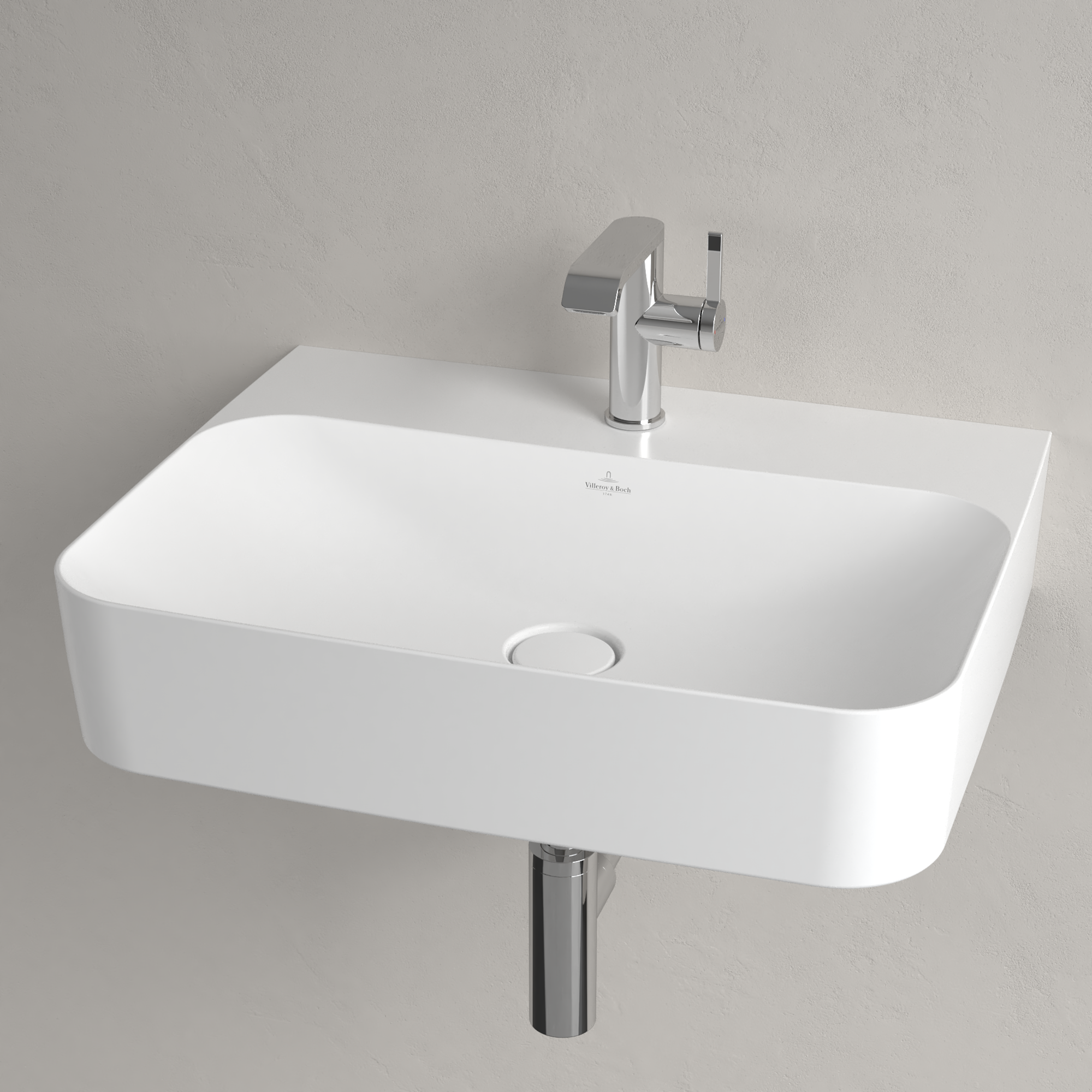 Finion Waschbecken, 600x470x164mm, mit verdecktem Überlauf, Stone White CeramicPlus